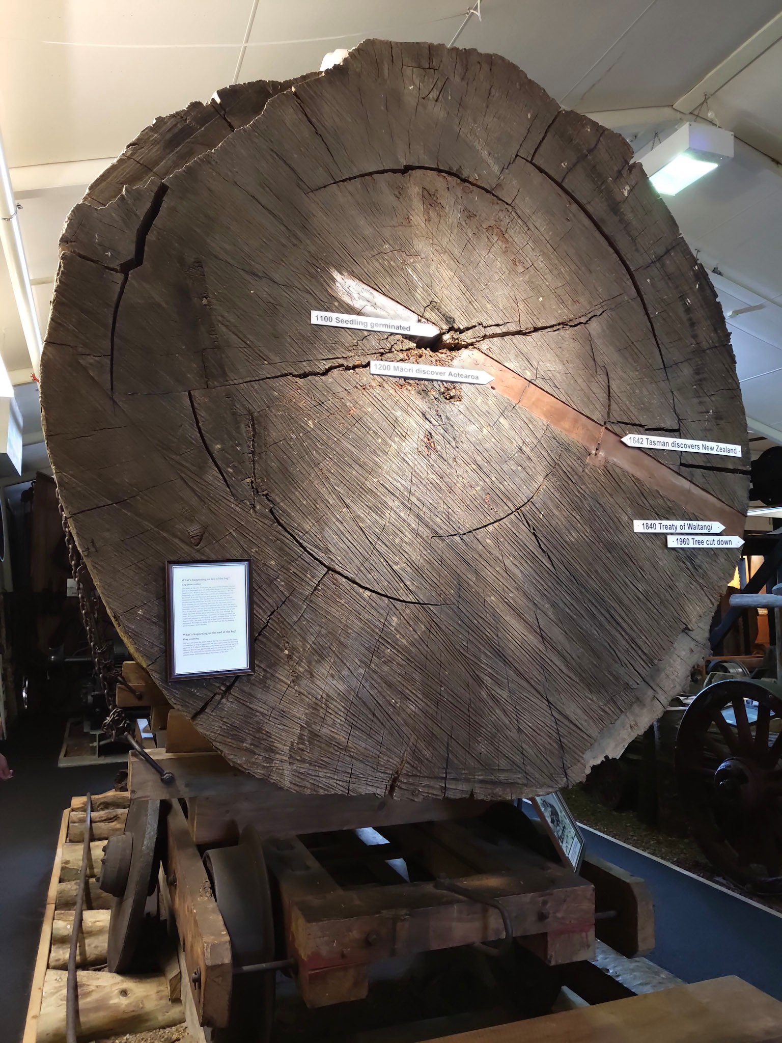 Aber doch bitte kein Museum, dachte ich zuerst! Das Kauri-Museum befindet sich in Matakohe, südlich des Waipoua Waldes. Es besitzt über 4000m² gedeckte Ausstellungsfläche, darunter die grösste Sammlung von Kauri-Gums der Welt sowie die grösste Sammlung von Kauri-Möbeln. Es enthält ein komplettes 1:1 Modell eines Kauri-Hauses der 1900er Jahre mit Möbeln und Modellen von Kleider der frühen Siedlerjahre und eine umfangreiche Sammlung von Fotografien und Pioniermemorabilia. In den Ausstellungshallen sind komplette Baumscheiben der riesigen Bäume zu bewundern, darunter auch einer mit 8.5m Durchmesser, welcher sogar grösser ist als Tāne Mahuta, dem Lord des Kauri Waldes. Im Museum befindet sich auch eine komplette Sägerei; die Maschinen werden alle effektvoll bewegt.