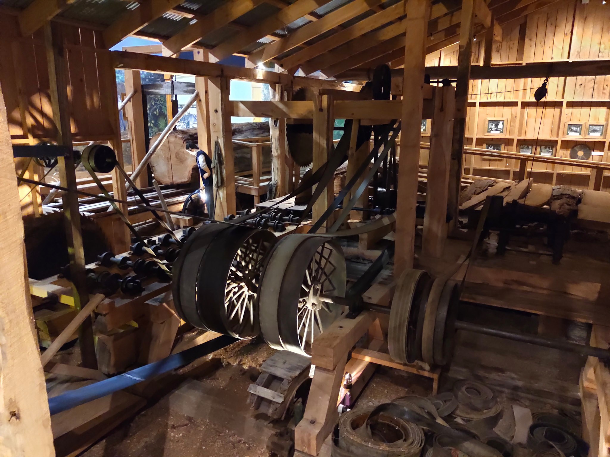 Aber doch bitte kein Museum, dachte ich zuerst! Das Kauri-Museum befindet sich in Matakohe, südlich des Waipoua Waldes. Es besitzt über 4000m² gedeckte Ausstellungsfläche, darunter die grösste Sammlung von Kauri-Gums der Welt sowie die grösste Sammlung von Kauri-Möbeln. Es enthält ein komplettes 1:1 Modell eines Kauri-Hauses der 1900er Jahre mit Möbeln und Modellen von Kleider der frühen Siedlerjahre und eine umfangreiche Sammlung von Fotografien und Pioniermemorabilia. In den Ausstellungshallen sind komplette Baumscheiben der riesigen Bäume zu bewundern, darunter auch einer mit 8.5m Durchmesser, welcher sogar grösser ist als Tāne Mahuta, dem Lord des Kauri Waldes. Im Museum befindet sich auch eine komplette Sägerei; die Maschinen werden alle effektvoll bewegt.