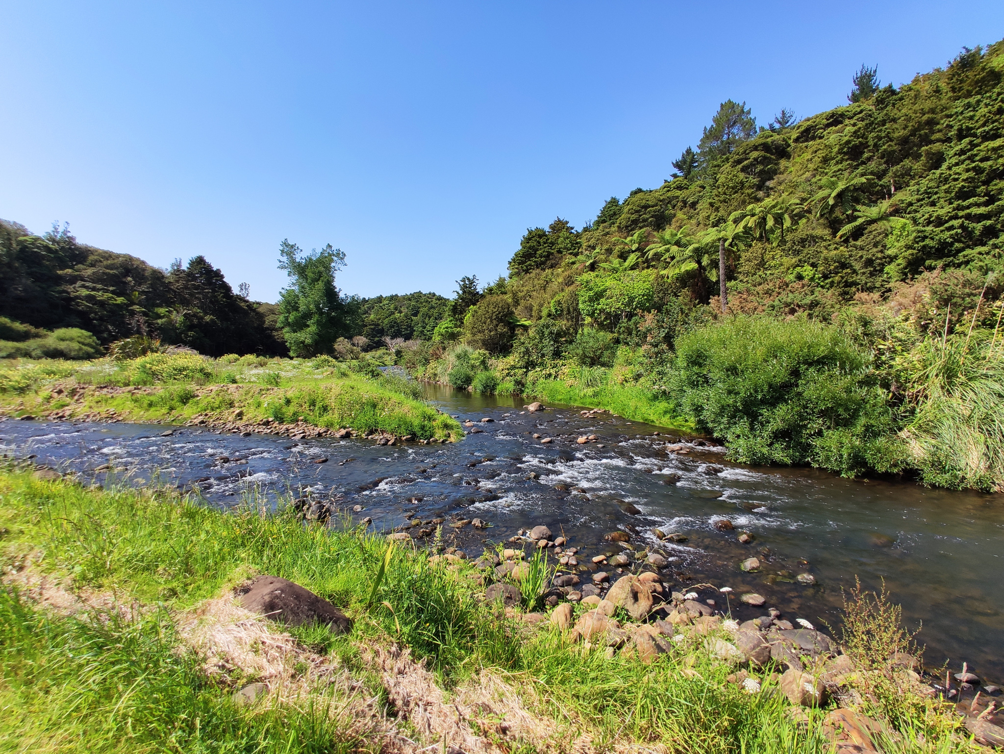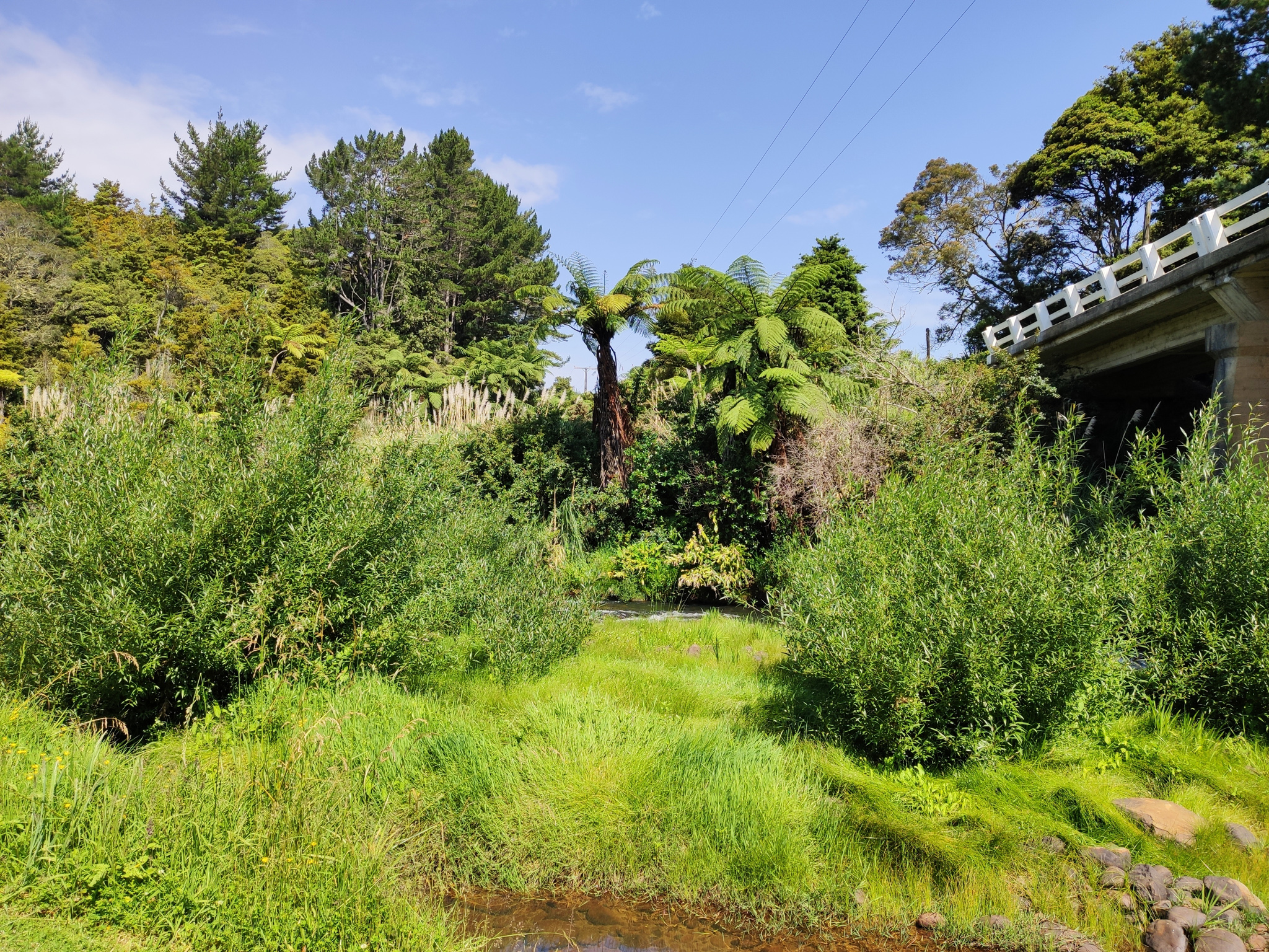Ich machte dann im Kauri Coast Top 10 Holiday Park einen Übernachtungshalt. Der Caravan Park ist sehr idyllisch an zwei sich vereinenden Flüssen gelegen. Ein Pfad (mit ausführlicher Beschreibung vieler Pflanzen) führt durch den Park. Ein Exponat ist übrigens der Silberfarn, der ikonische Nationalfarn der Neuseeländer. Spannend sind auch die Neophyten, welche auf den Bäumen wuchern und die riesigen Liliengewächse (irrtümlicherweise Flachs genannt), deren Blätter zum Flechten benutzt wurden. Nachts kann man unter der Brücke Glühwürmchen bestaunen (ich habe keine gesehen) oder neuseeländische Aale im Fluss beobachten. Ein tolles und sehr gepflegtes Idyll. Der Holiday Park steht übrigens altershalber zum Verkauf.