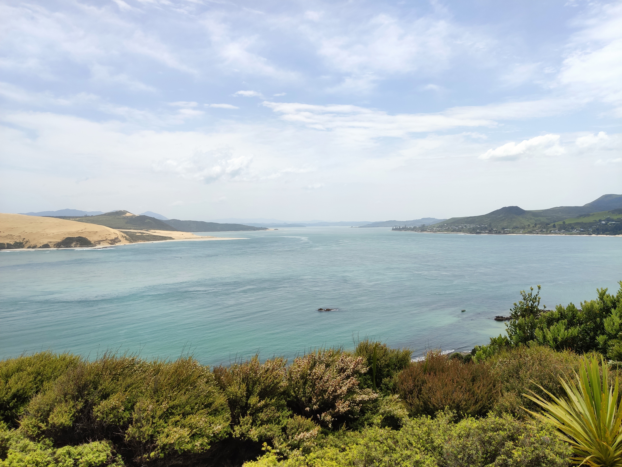 Aber als erstes beeindruckt der Ausblick in den natürlichen Hafen und die Sanddünen auf der gegenüberliegenden Seite.