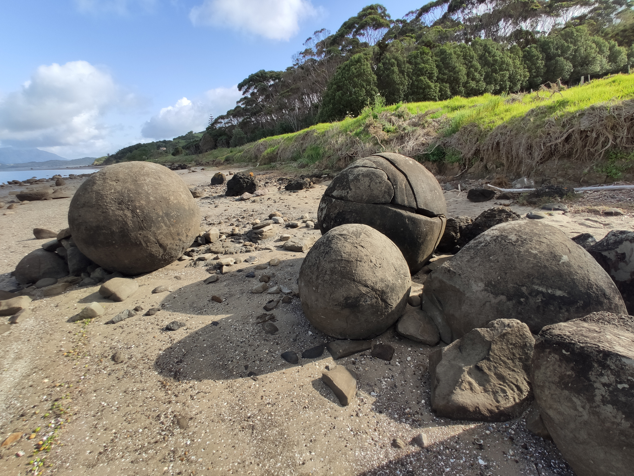 Auf dem Strand zwischen Koutu und Kauwhare (am Südufer des Hokianga Harbour) könnte man meinen, dass ein paar Riesen ihre Bocciakugeln (mit bis zu 3m Durchmesser) vergessen haben. Diese Kugeln sind ein recht gut verstecktes Geheimnis.