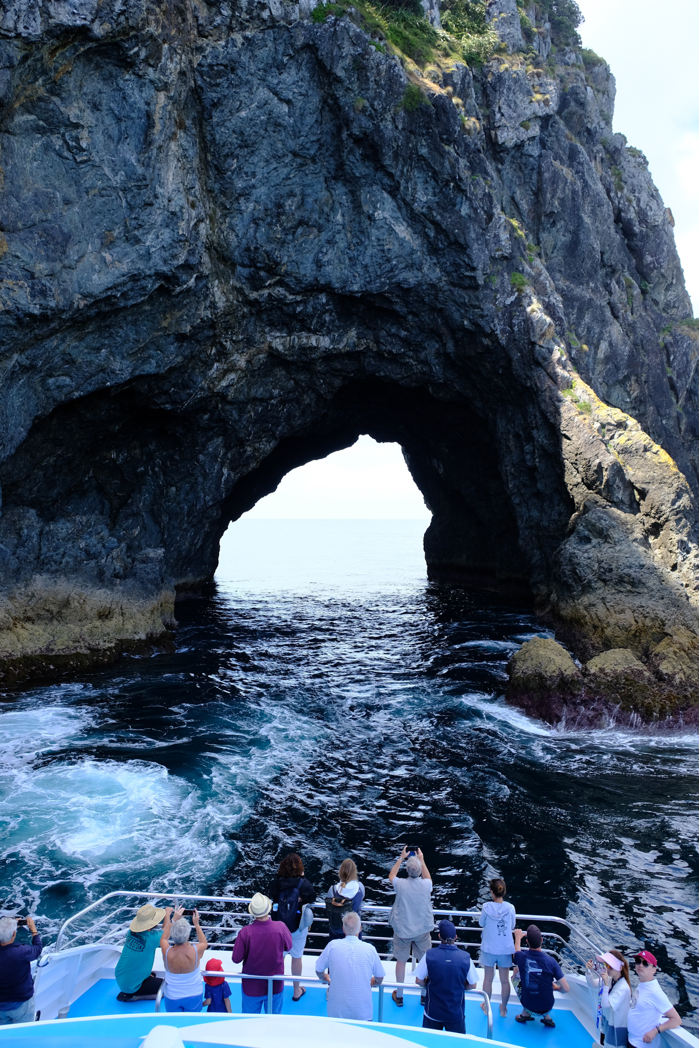 Wir sind dann tatsächlich durch das atemberaubende Loch im Fels auf Motukokako Island gefahren! Ich kann mir nicht vorstellen, wie sich das anfühlt, wenn der Wellengang höher ist! Schon bei stiller See ist das ein cooles Erlebnis.