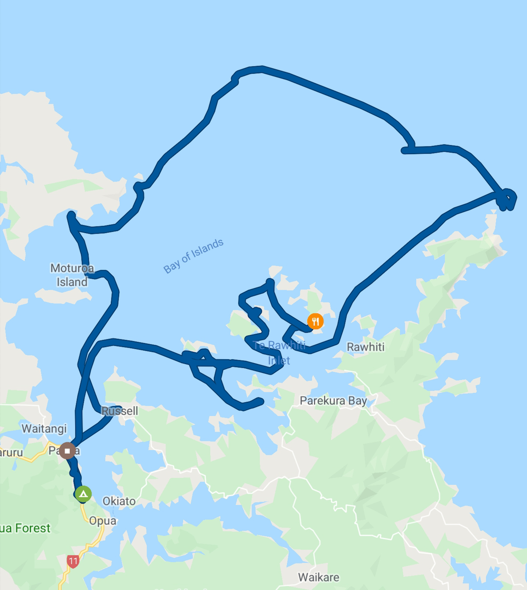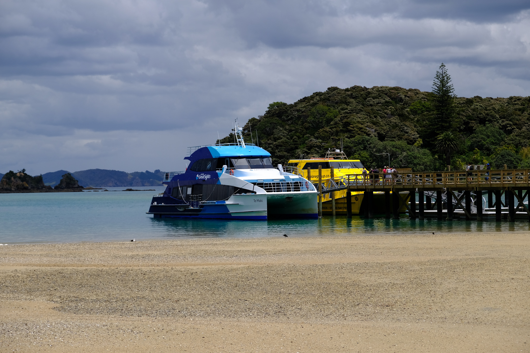 Für eine Mittagspause haben wir in der Otehei-Bucht (Nr 10) auf der paradiesischen Insel Urupukapuka (Nr 11) am Steg angemacht. Fünfviertel Stunden standen uns zur Verfügung: Man kann sich am Strand entspannen (Wassertemperatur 22°), oder über die vielen Wanderwegen einen atemberaubenden Ausblick von den Aussichtspunkten geniessen oder einfach im Café der Insel verweilen. Es hat auch ein paar Picknicktischen für Selbstversorger.