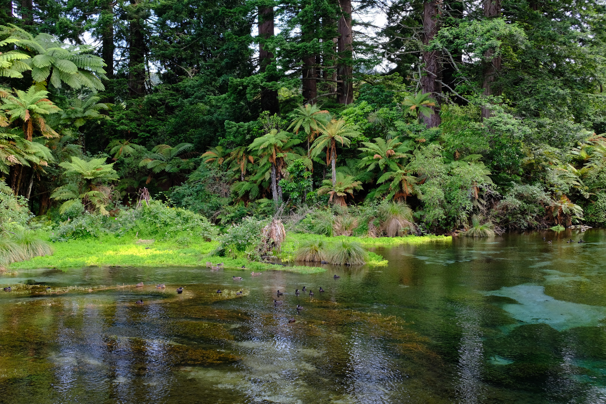 Nachdem man dem freundlichen Māori am Kassenhäuschen den (in dieser Gegend üblichen) nicht unerheblichen Eintrittspreis bezahlt hat, tritt man in ein kleines Paradies ein. Das Quellwasser ist extrem klar und erlaubt faszinierende Blicke unter Wasser. Die vielen Wasservögel, die riesigen Redwoods (aus Nordkaliforniern) sowie die unzähligen Wasservögel vervollständigen die Idylle. Ich kann sehr gut verstehen, dass Maori hier über Jahrhunderte gut und gerne gelebt haben.