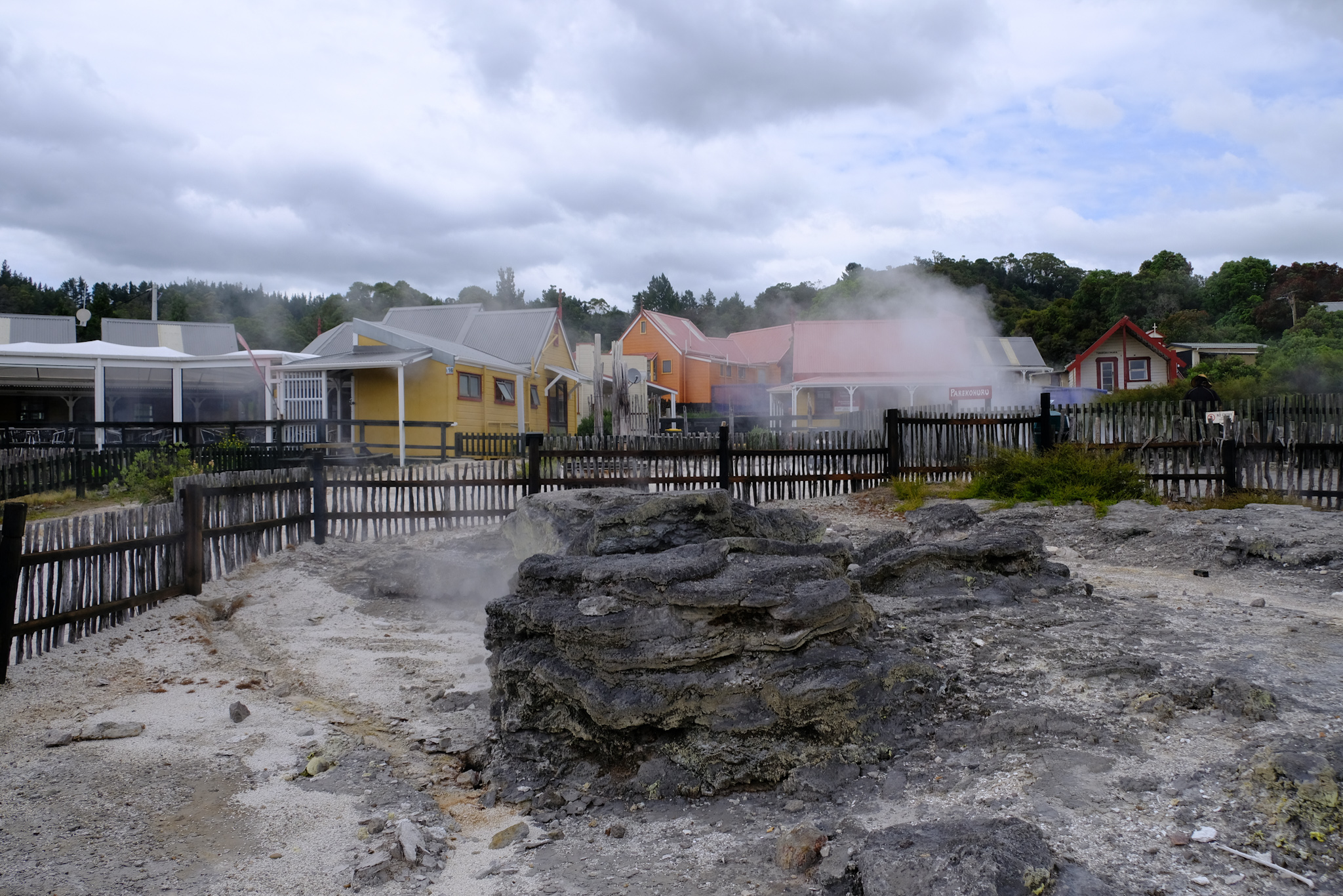 Das auch heute noch real belebte Māori Dorf Whakarewarewa bei Rotorua sitzt mehr oder weniger auf einem riesigen Dampfkessel und kann (natürlich gegen entsprechendes Entgelt) mit einer stündlichen Führung und zwei bis drei täglichen Darbietungen besucht werden. Die natürlichen geothermischen Eigenschaften dieses Dorfes sind das Ergebnis einer hohen geothermischen Aktivität, die als Rotorua Thermal Field bekannt ist. Dieses Feld ist verantwortlich für den aufsteigenden Dampf, die interessanten Gerüche und das farbige Wasser, welche beim Besuch des Dorfes sofort auffallen.