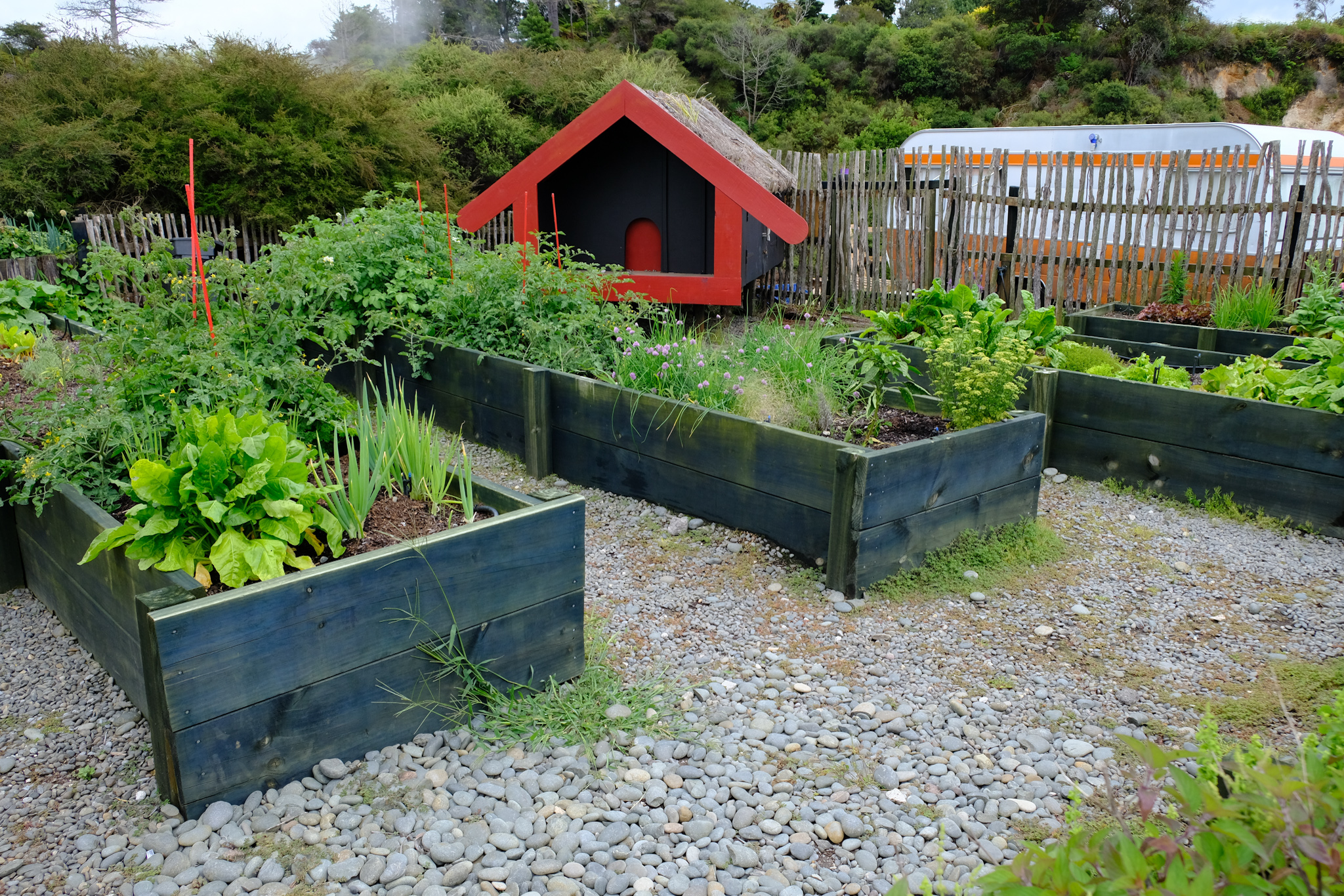 Es ist schon speziell, ein authentisch lebendes Māori-Dorf zu besuchen, in dem rund 70 Menschen täglich leben und die natürlichen geothermischen Ressourcen nutzen. Seit Jahrhunderten nutzen sie die natürliche Energie um zu kochen, zu baden und und zu heizen. Die ganze Infrastruktur ist kommunal und wird von allen Bewohnern gemeinsam genutzt und gepflegt. Dazu gehören das Bad mit mehreren Badewannen, die Hangi Kochstellen, der grosse Wasserkochtopf, in dem Gemüse gegart wird sowie neuerdings ein gemeinsam genutzter Garten mit Hochbeeten, indem viele verschiedene Früchte und Gemüse für alle angebaut werden.