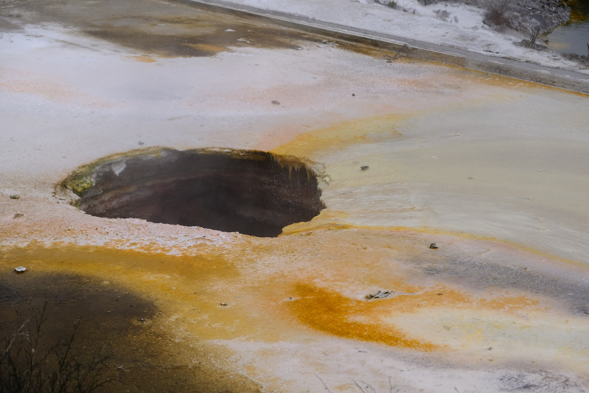 Die klaren, heissen Pools des Dorfes können zwischen 70° und 100° Celsius erreichen und sind in der Regel neutral oder alkalisch in der PH. Sie werden durch das tiefe, primär geothermische Reservoir gebildet, das durch Verwerfungen an die Oberfläche steigt. Diese Wasserquelle ist mit natürlichem Siliziumdioxid gesättigt, und hellgrauer Siliziumdioxidsinter bildet sich typischerweise in geschichteten oder schuppigen Schürzen entlang der Kante dieser Becken.
