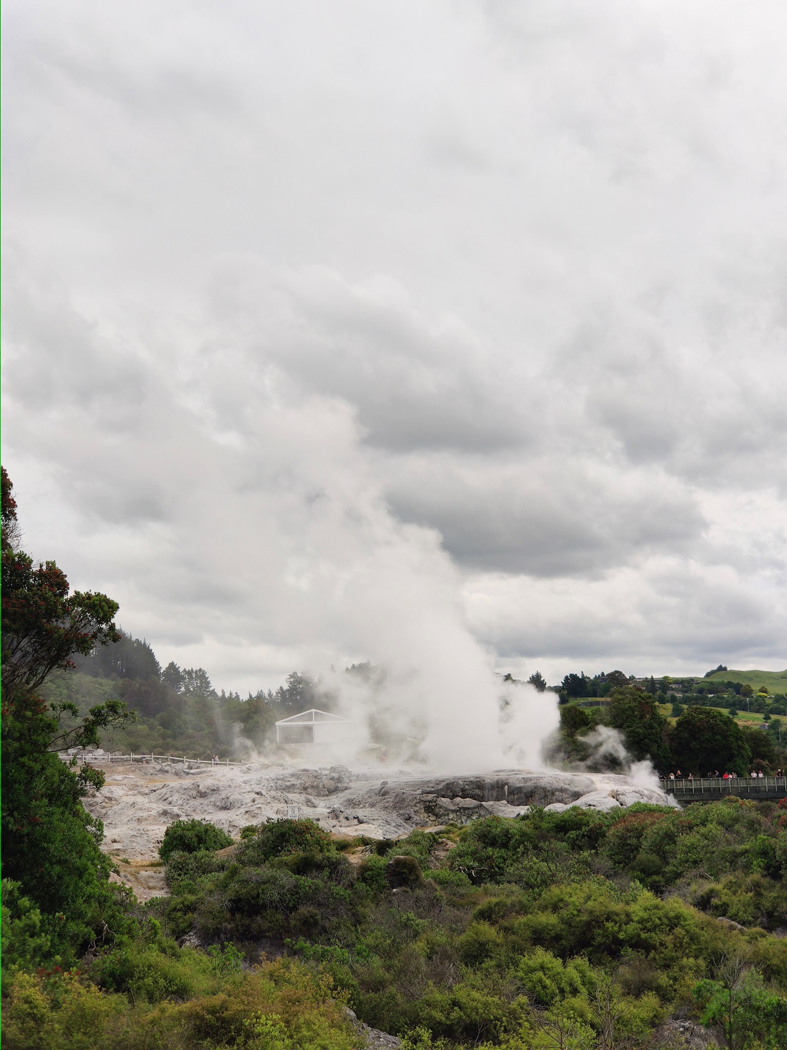 Ich gönnte mir am Schluss noch einen weiteren Blick auf einen zweiten Ausbruch des Pōhutu-Geysirs. Es waren wohl schon wieder die ein bis zwei Mal 45-60 Minuten seit dem letzten Ausbruch vergangen!