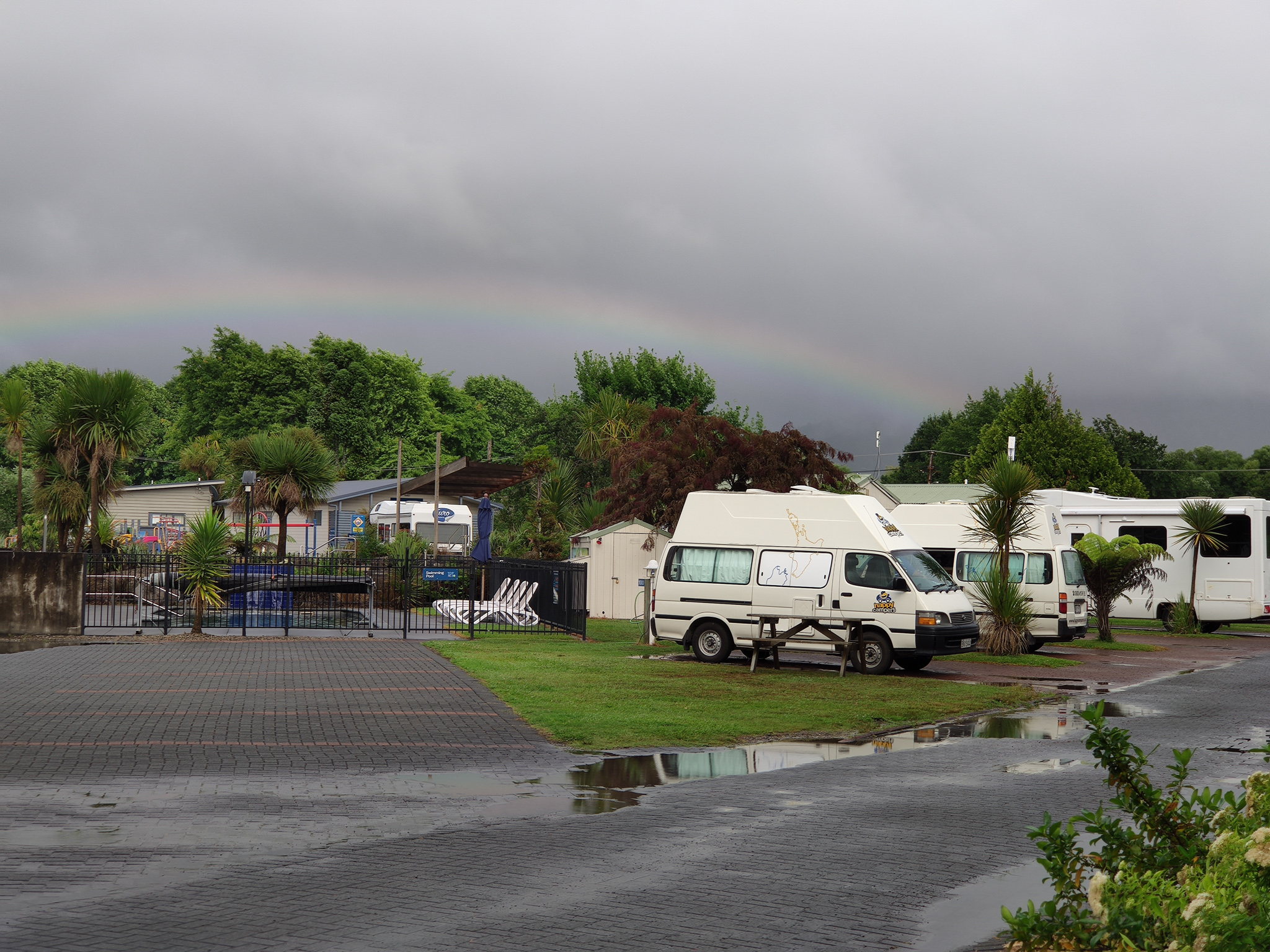 Da macht es natürlich wenig Sinn, die farbenfrohen geothermischen Täler zwischen Rotorua und Taupo zu besuchen. Und der Holiday Park in Rotorua ist mir zu teuer.