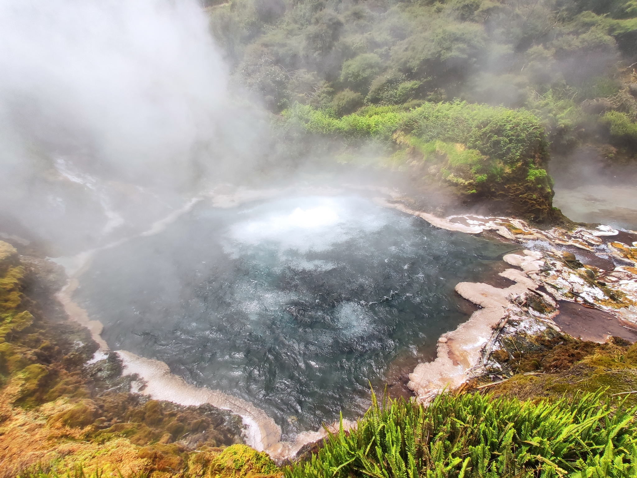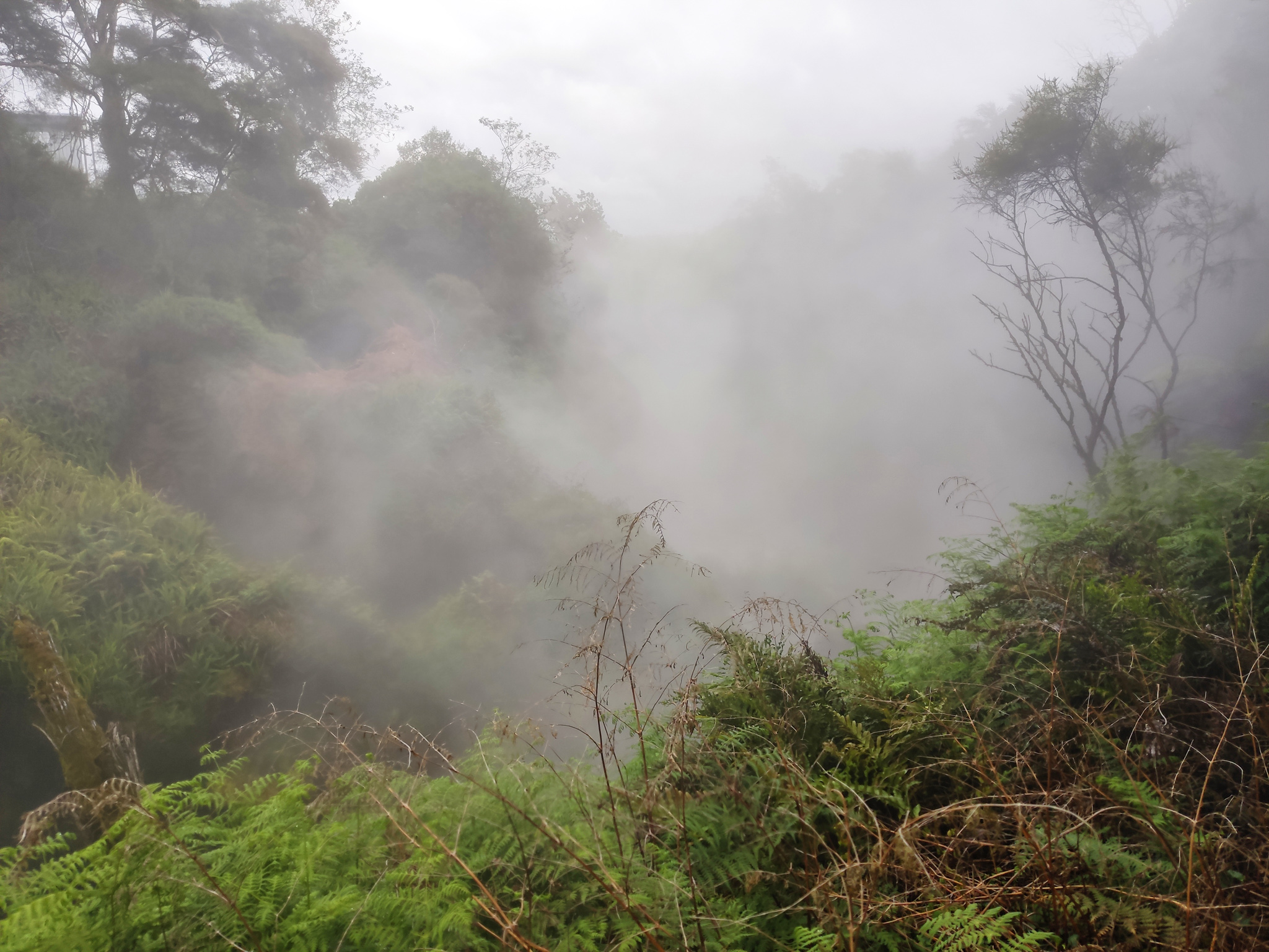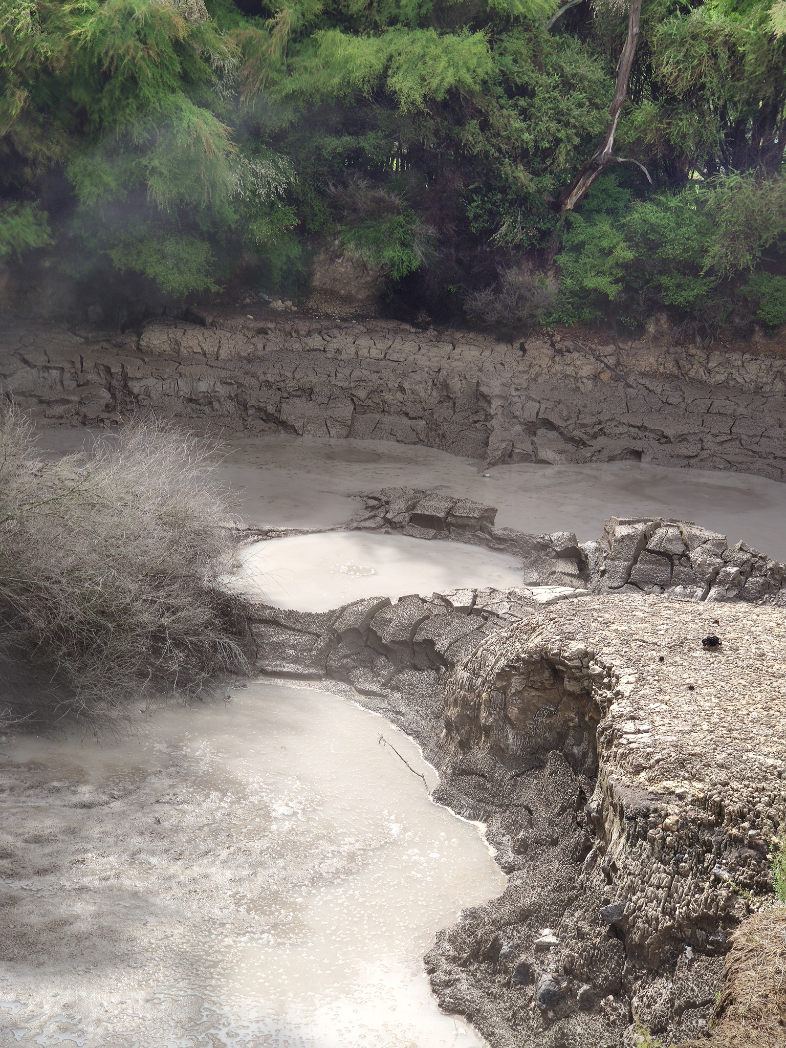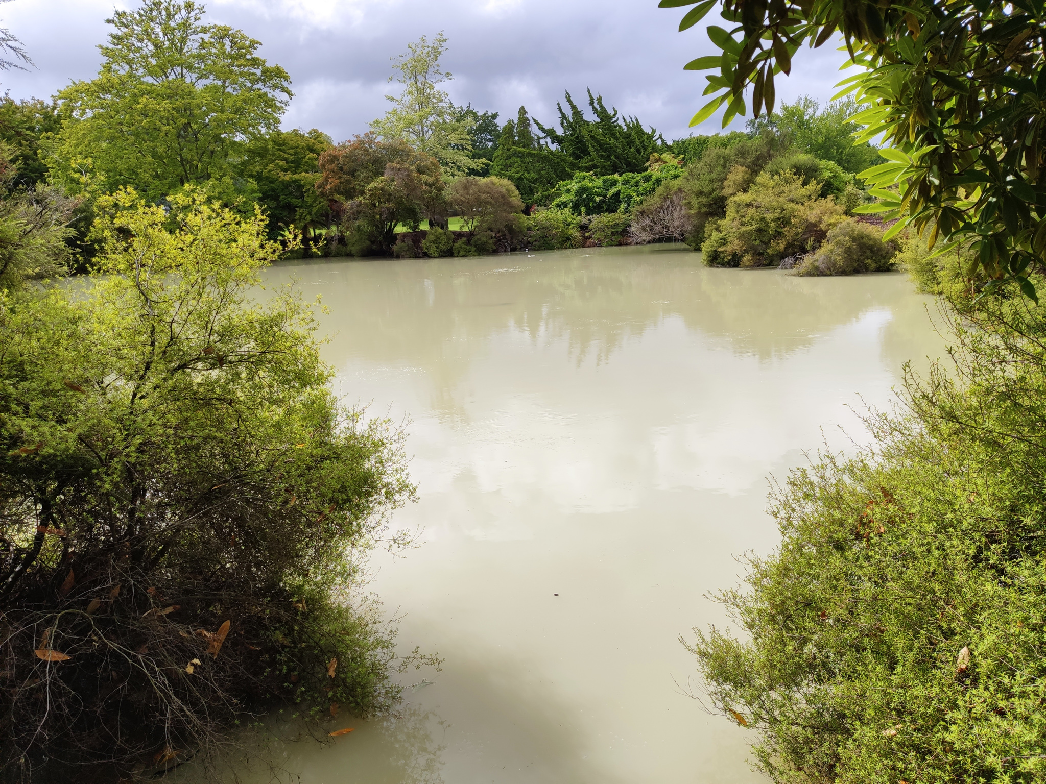 Zuerst habe ich aber noch das thermische Feld mitten in Rotorua besucht. Im Kuirau Park kann man an mehreren Orten Wasser Gasbläschen und blubbernden Schlamm beobachten. Auch hier ist der Schwefelgeruch nicht zu verfehlen.