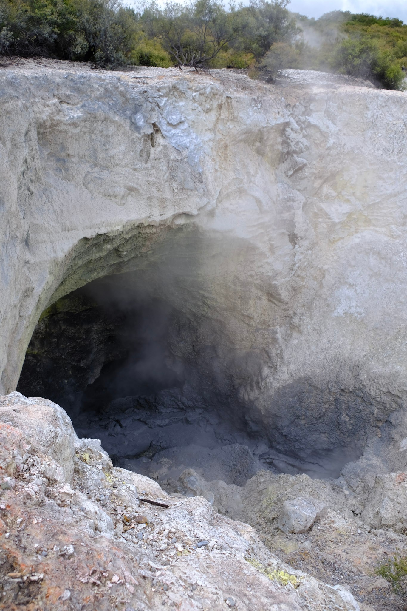 Geysire sind äusserst seltene Phänomene, daher ist ein Ort, an dem man sie so leicht sehen kann, eigentlich etwas Besonderes. Die meisten Geysire kommen weltweit nur in fünf Ländern vor, und Neuseeland gehört dazu. Der Grund, warum sie so selten sind, ist, dass sie sehr spezielle Anforderungen an ihre Formation haben – sie benötigen heisse unterirdische Gesteine, eine grosse Wasserquelle, ein unterirdisches Wasserreservoir und Risse in der Erde, damit das kochende Wasser durchkommt. Das überhitzte, kochend heisse Wasser sprengt sich an die Oberfläche, wodurch riesige Dampfwolken und Heisswasser in die Luft geschossen werden. Lady Knox Geyser ist leider nur noch sehr unregelmässig aktiv, daher wird jeden Tag um 10:15 etwas nachgeholfen.