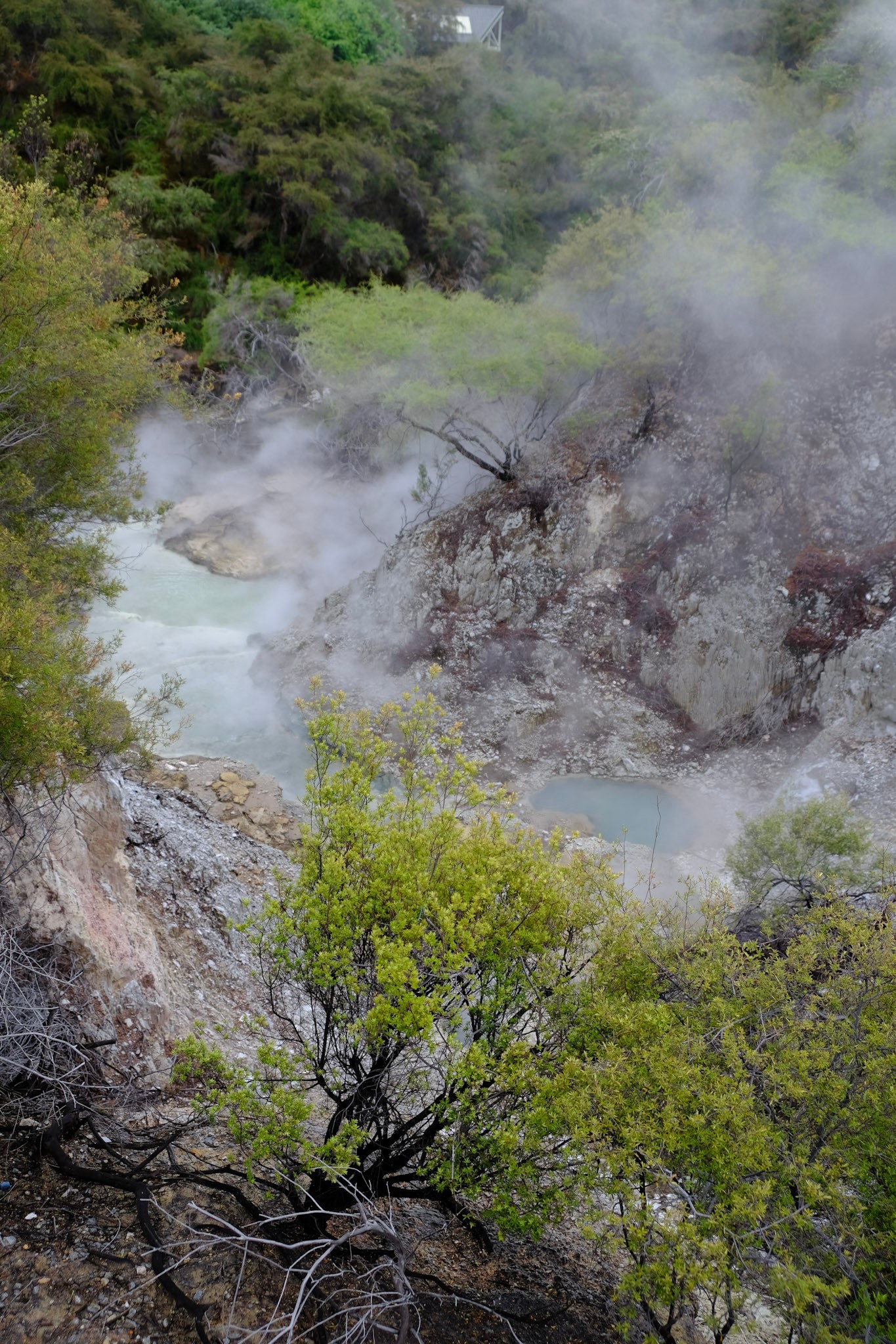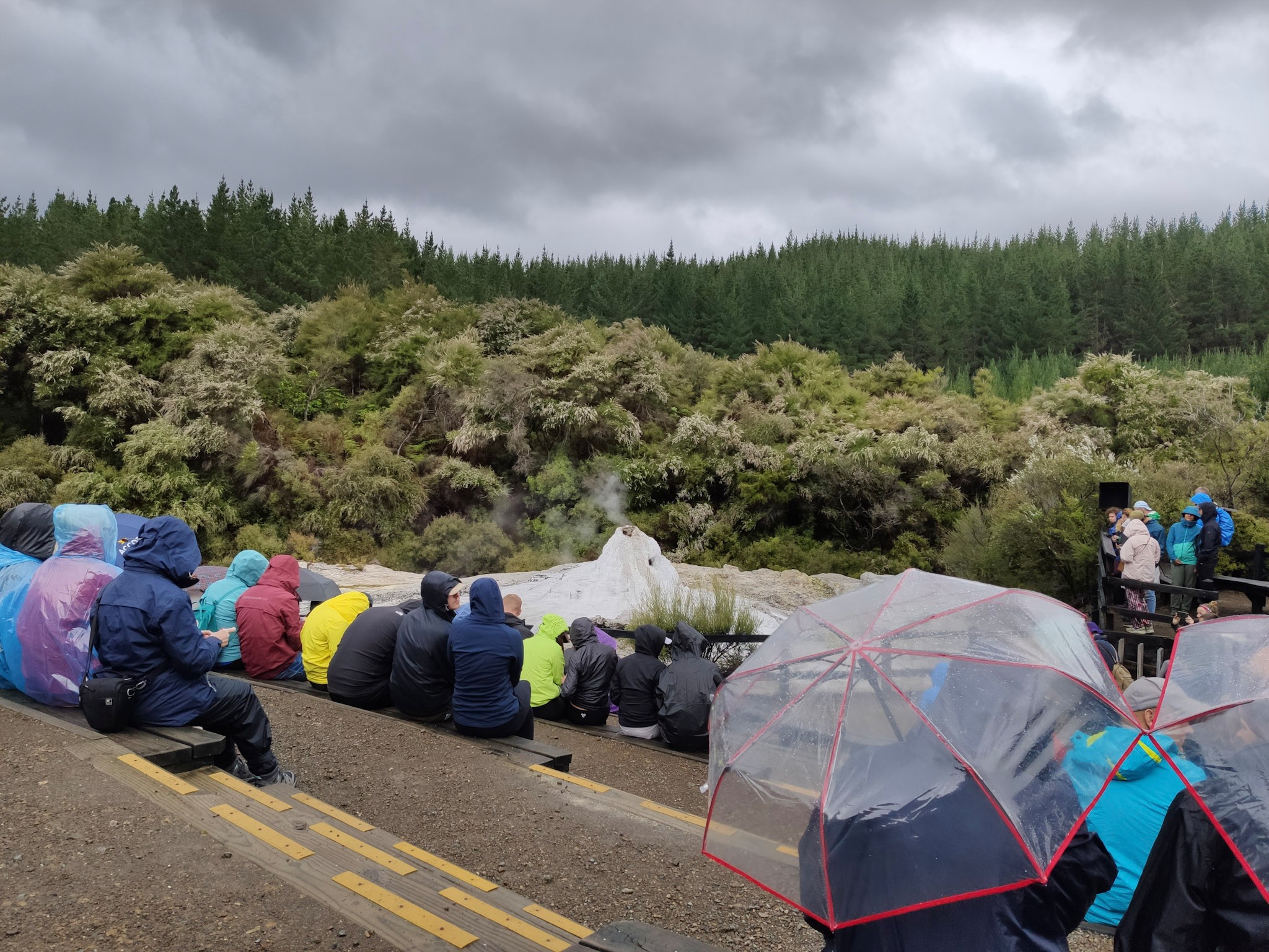 Geysire sind äusserst seltene Phänomene, daher ist ein Ort, an dem man sie so leicht sehen kann, eigentlich etwas Besonderes. Die meisten Geysire kommen weltweit nur in fünf Ländern vor, und Neuseeland gehört dazu. Der Grund, warum sie so selten sind, ist, dass sie sehr spezielle Anforderungen an ihre Formation haben – sie benötigen heisse unterirdische Gesteine, eine grosse Wasserquelle, ein unterirdisches Wasserreservoir und Risse in der Erde, damit das kochende Wasser durchkommt. Das überhitzte, kochend heisse Wasser sprengt sich an die Oberfläche, wodurch riesige Dampfwolken und Heisswasser in die Luft geschossen werden. Lady Knox Geyser ist leider nur noch sehr unregelmässig aktiv, daher wird jeden Tag um 10:15 etwas nachgeholfen.