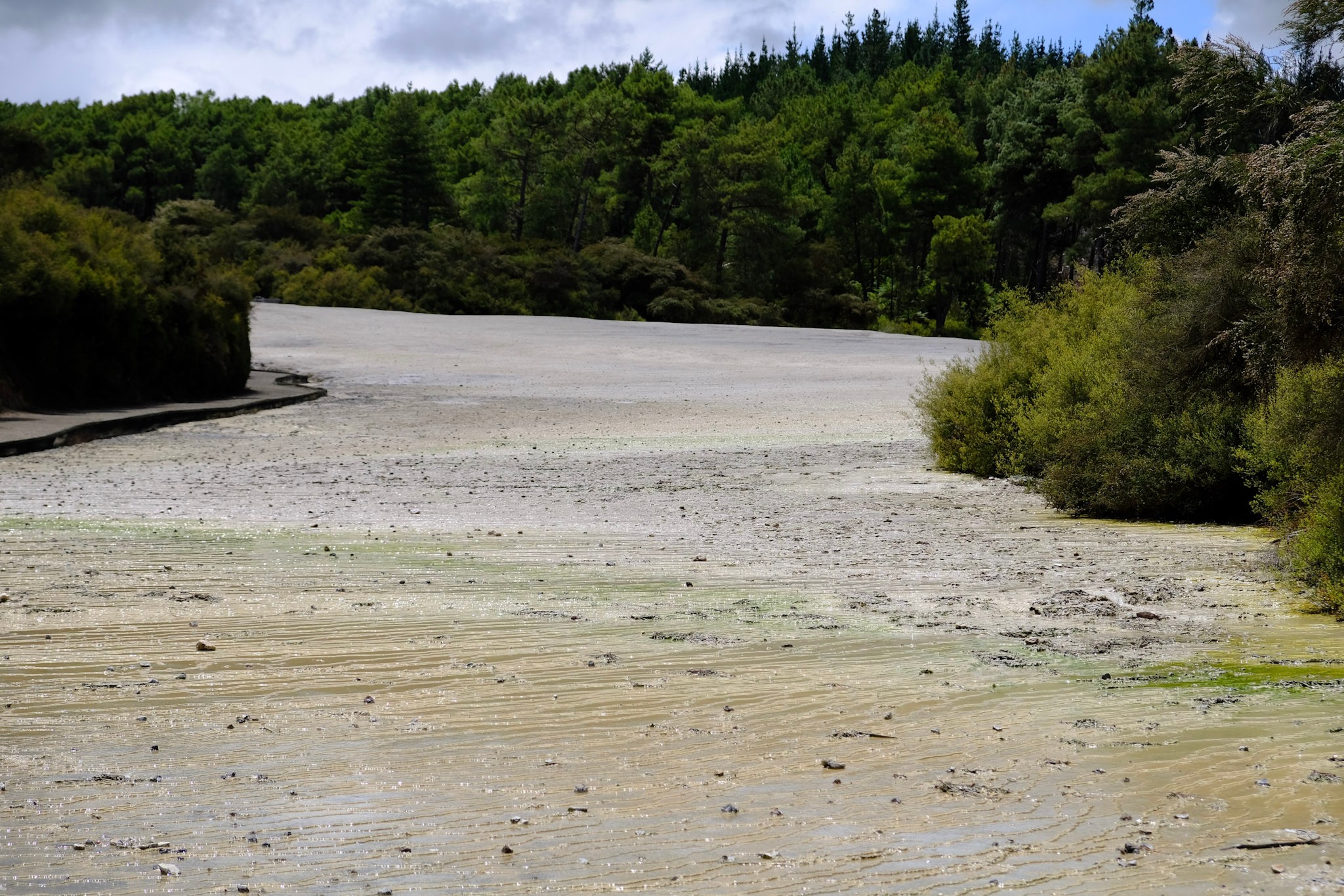 Als erstes mache ich bei den Mud-Pools einen Halt. Die Waiotapu-Schlammbecken erschienen an der Oberfläche, als die Seite eines alten Schlammvulkans wegerodiert war. Sie zeigen einen kontinuierlichen Zustand langsamer, sanfter Eruption eines aktiven Vulkans. Gase und Dampf aus dem Untergrund sprudeln ständig an die Oberfläche und bilden sich verändernde Blasenmuster. Wenn man einen garantierten Blick auf eine geothermische Reaktion ergattern möchte, dann sind die Schlammbecken ein guter Stopp. Diese Eruption findet kontinuierlich statt. Das Blubbern ist echt magisch!