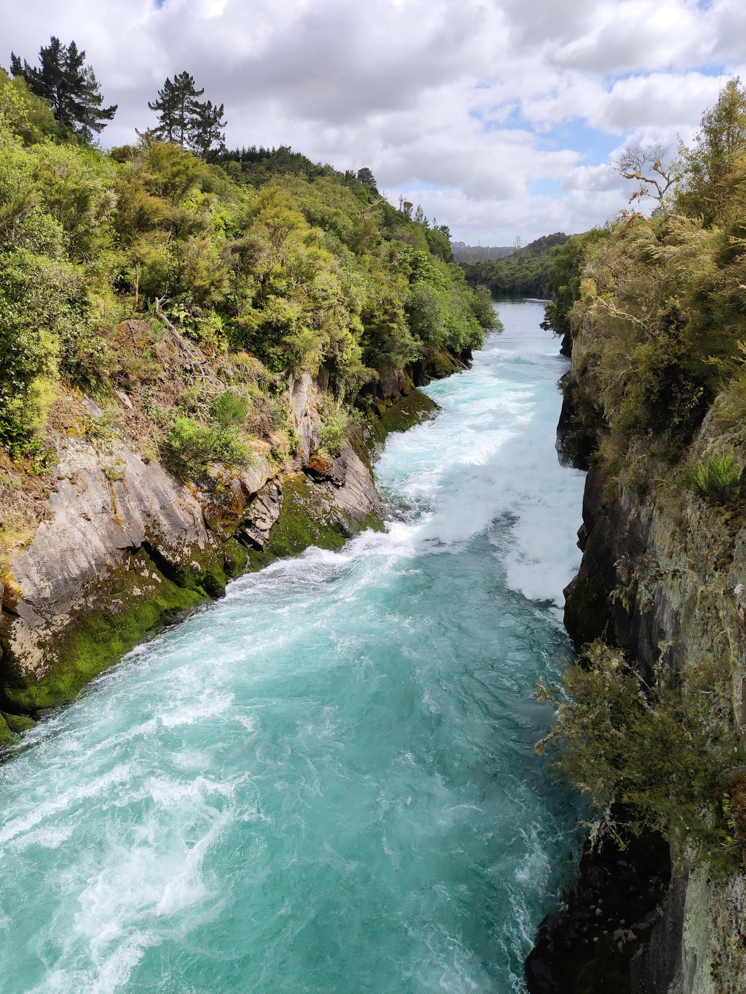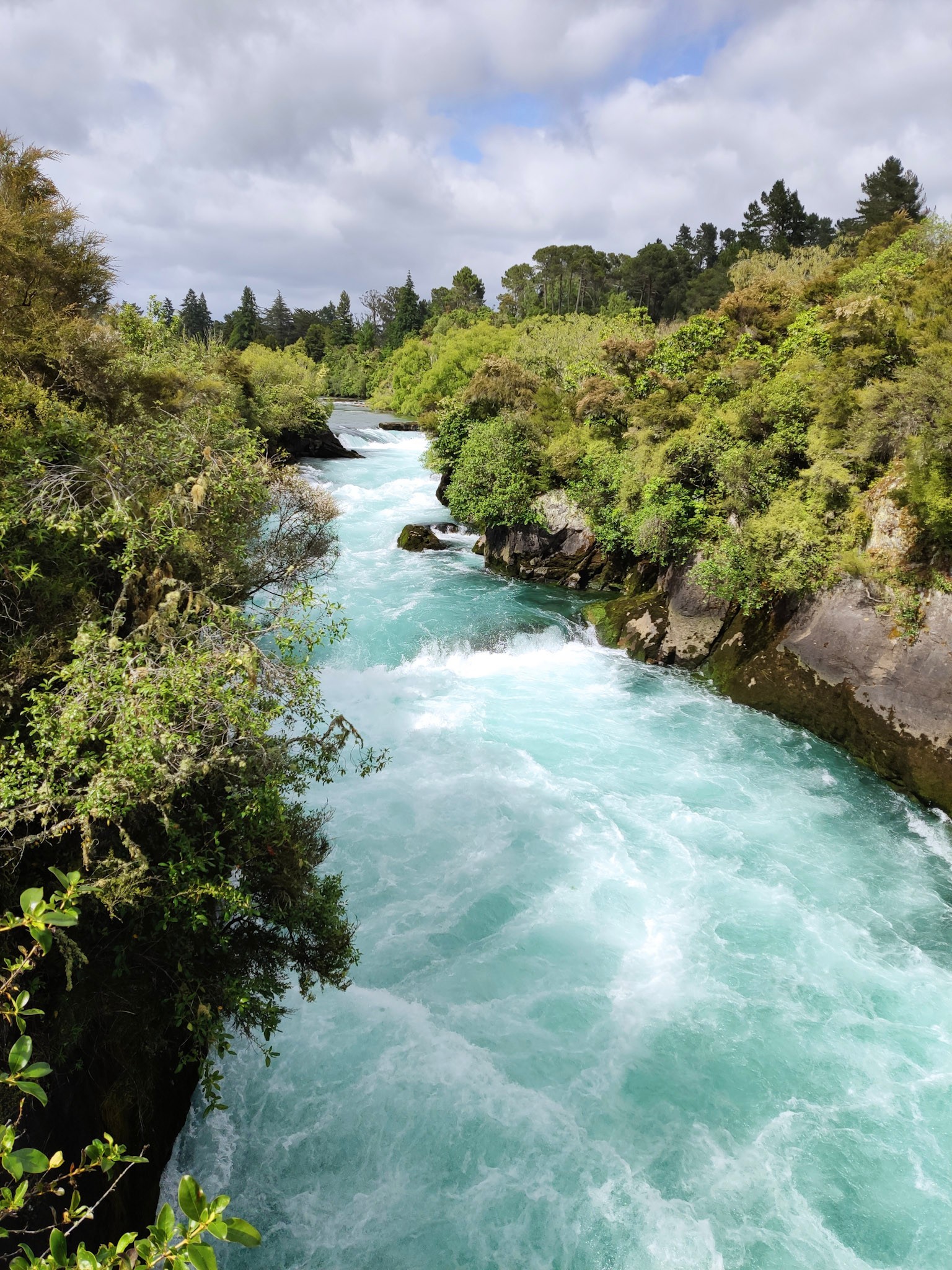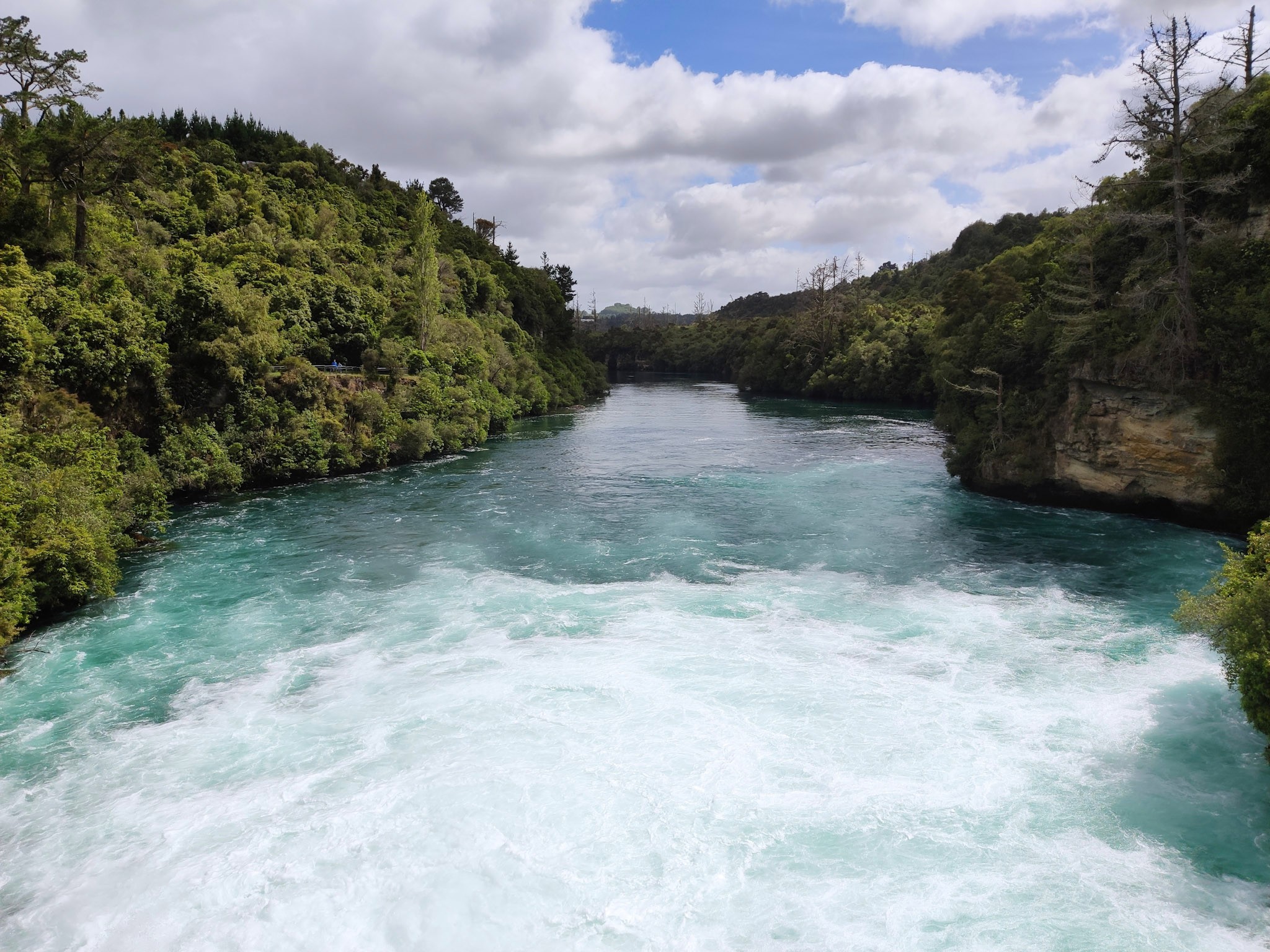 Weiter geht es dann sehr idyllisch am Fluss zu den mächtigen Huka Wasserfällen.