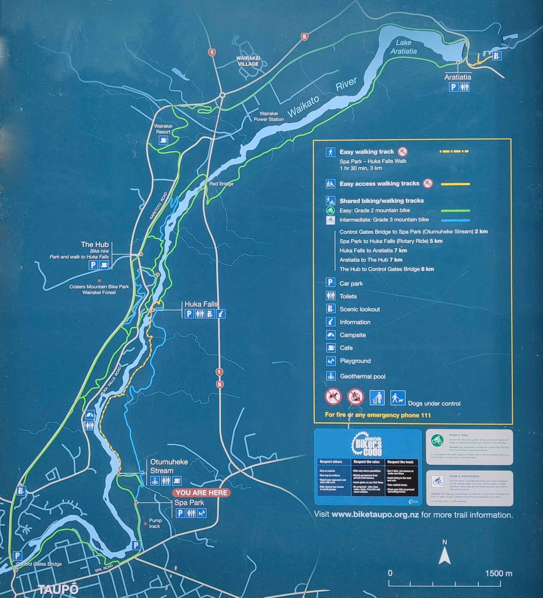 Entlang des Flusses stehen mehrere Wasserkraftwerke und ganz in der Nähe noch ein grosses geothermisches Kraftwerk: So generiert dieses Gebiet ökologisch 25% der elektrischen Energie Neuseelands! Im „Abwasser“ des geothermischen Kraftwerks werden Garnelen gezüchtet, welche man selber fangen und kochen kann.