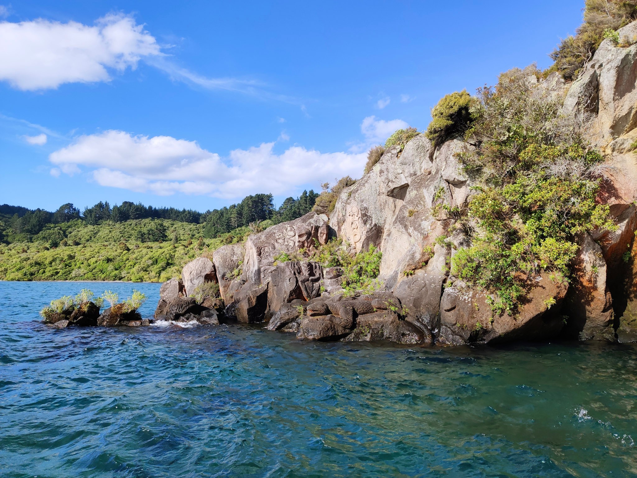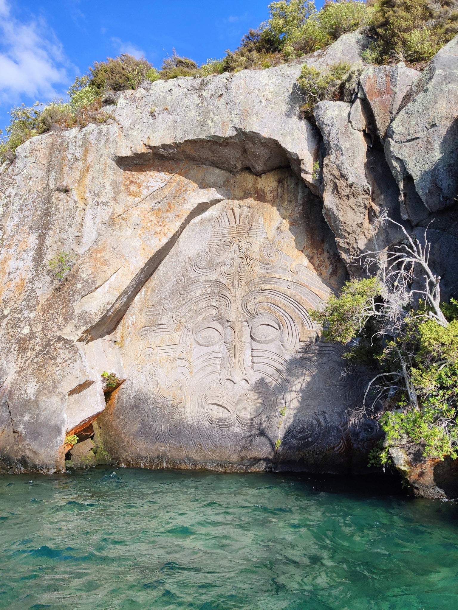 Der Besuch der Maori-Felszeichnungen ist nur vom Wasser aus zu sehen und ein beliebter Bootsausflug von Taupo aus. Man kann jedoch auch mit dem Kajak dorthin fahren und dabei die Figuren aus nächster Nähe betrachten.