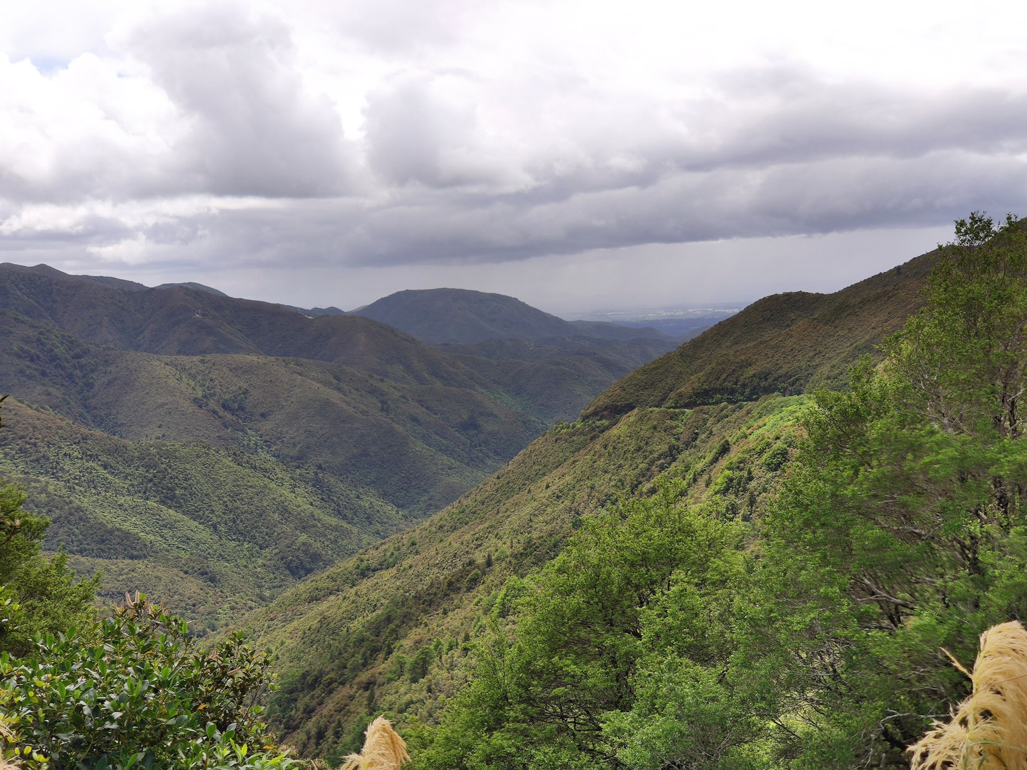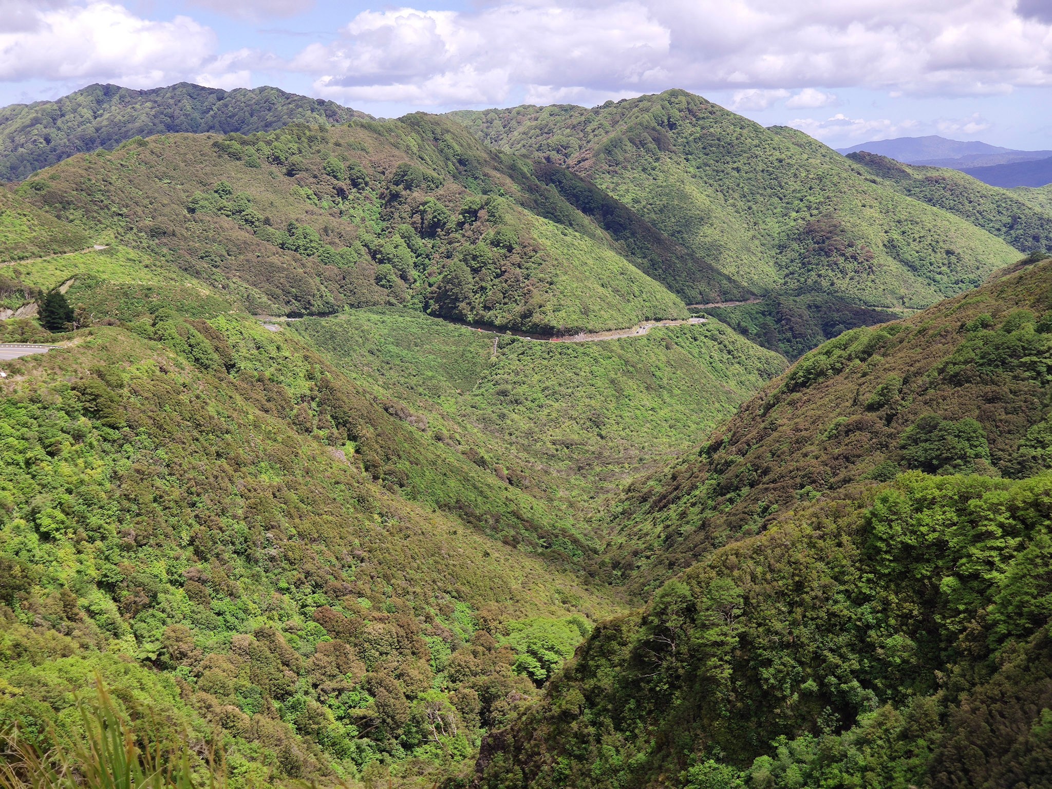 Aber ich hatte mal wieder total die Berge vernachlässigt. Nach einem Stopp am Strand (viel zu wild und windig, daher als Lunchstopp nicht geeignet) schickte mich das Navi auf möglichst direkten Weg Richtung Osten. Das stellte sich dann als eine 25km lange, sehr kurvenreiche und steile und sehr schmale Bergstrecke durch die Täler und Hügel des Akatarawa Forests zur Hauptstrasse heraus. Ich war sehr froh, dass es auf dem bergigen und schmalen Teil nur sehr wenig Gegenverkehr gab. Das macht zwar Spass, ist aber auch anstrengend, da man auf Steinbrocken sowie Äste auf der Strasse, möglichen Gegenverkehr und Schlaglöcher achten muss. Vor lauter Kurvenfahrerei und wegen dem engen Strässchen konnte ich nicht einmal einen Stopp einlegen und diese Passfahrt fotografisch dokumentieren.