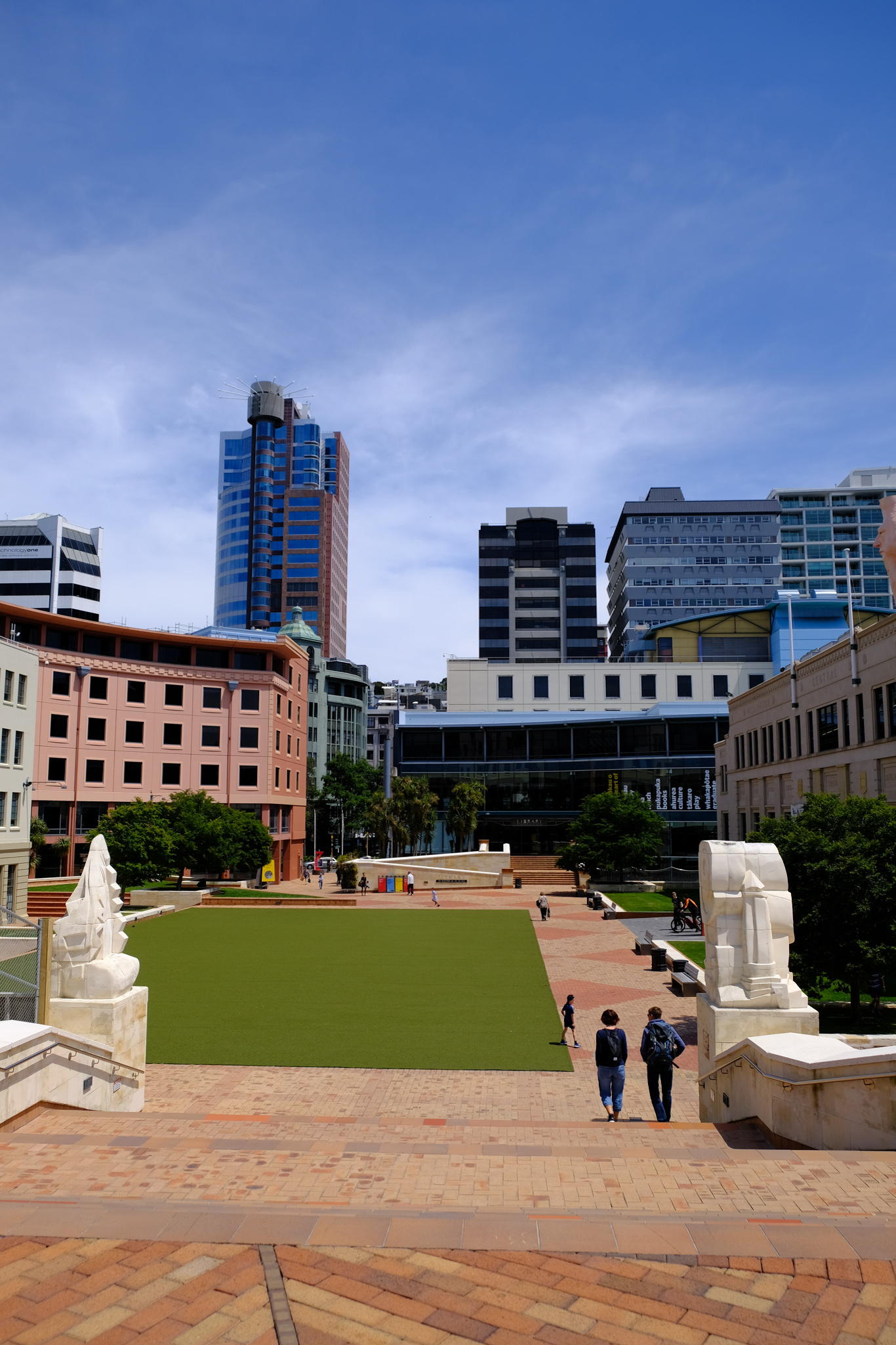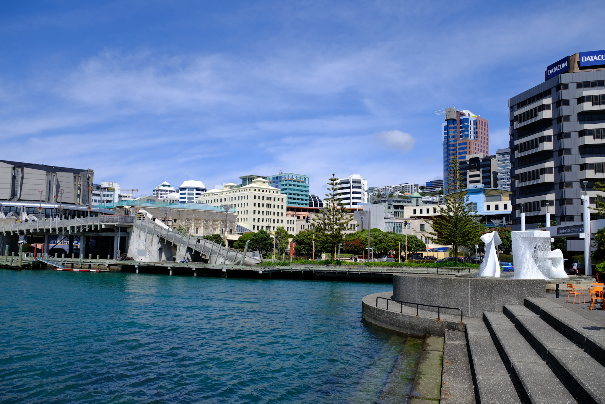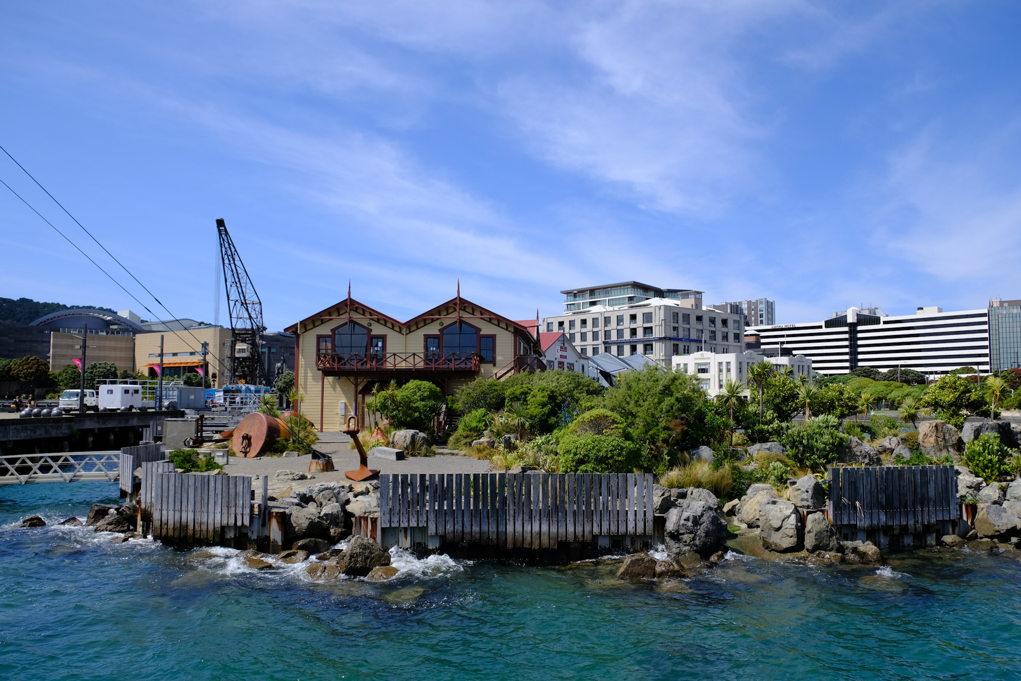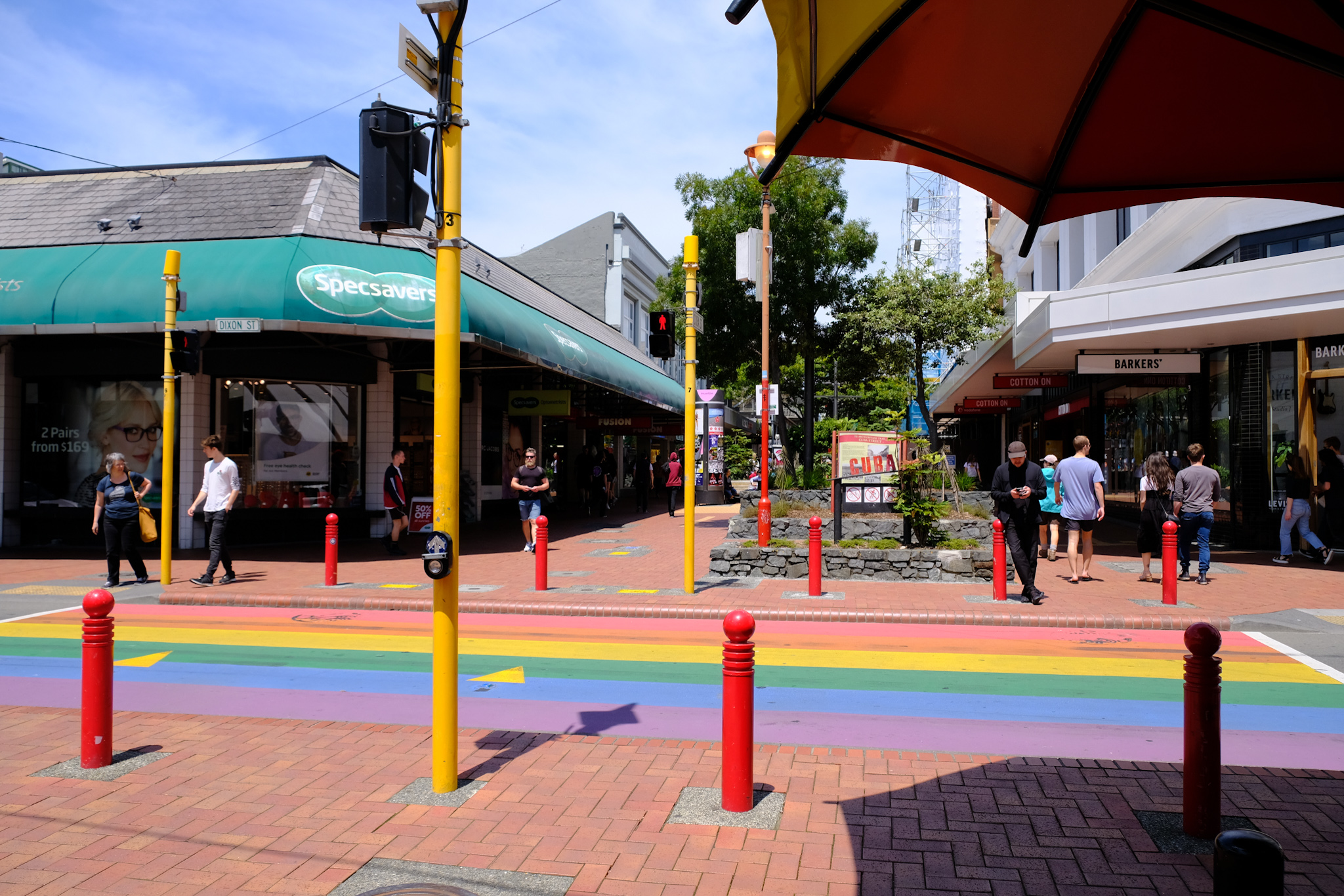 Im Windschatten geniessen die Einheimischen und Touristen die warmen Sonnenstrahlen in den Cafés. Danach schlendere ich durch das sehr moderne Civic Center wieder in das Geschäftsviertel, gucke mir die Cuba Street (die einzige, kleine Fussgängerzone) mit dem einzigen, regenbogenfarbigen Fussgängerstreifen (in Neuseeland gibt es keine Fussgängerstreifen) an und entdecke die paar historischen Häuser.
