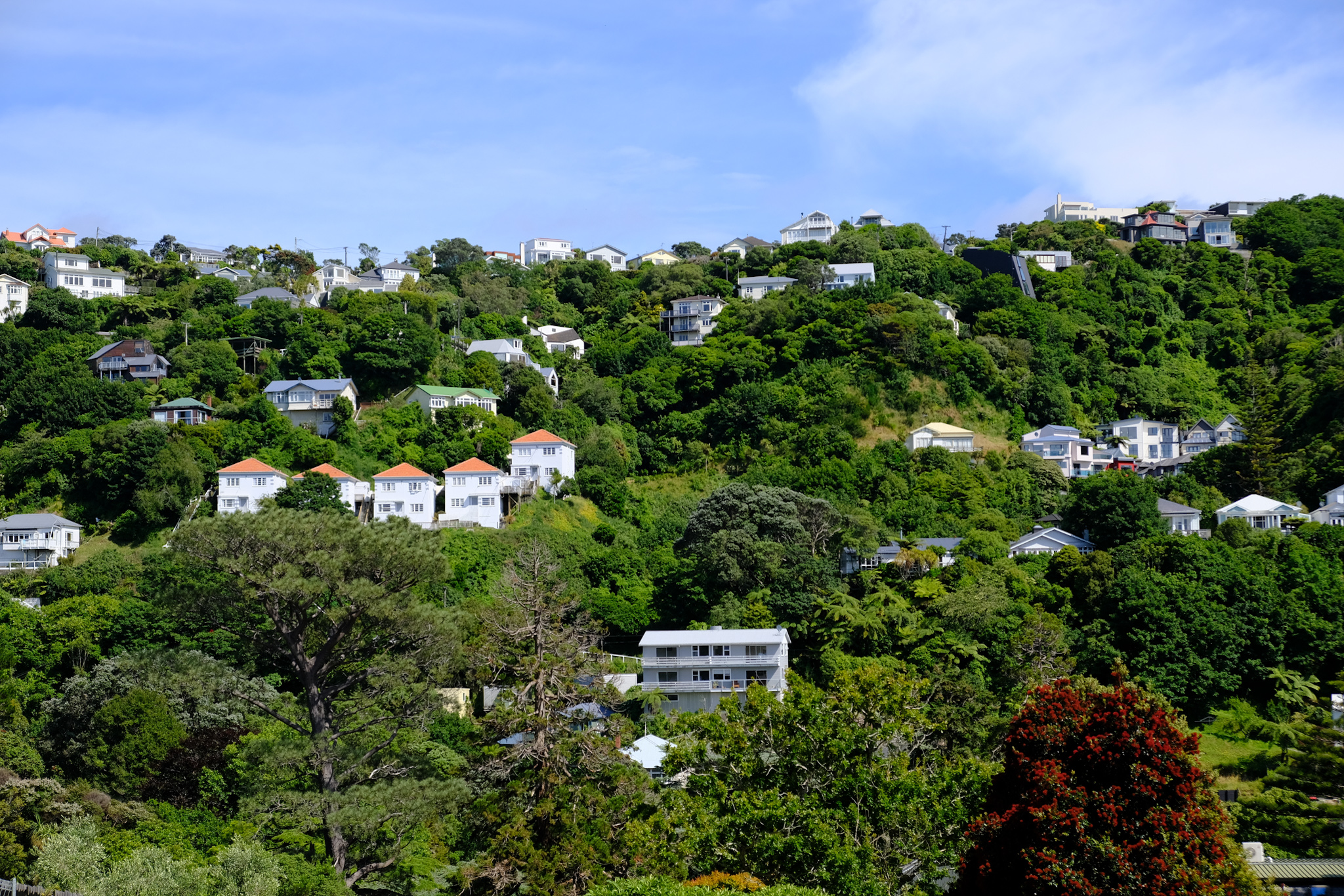 Daher ging es nochmals über die Rimutaka Range in das Hutt Valley zurück. Ich habe mir ausgedacht, dass ich beim botanischen Garten parke und von dort aus die Stadt zu Fuss erkunde. Der Grossraum Wellington beherbergt 190’000 Einwohner und befindet sich in einer sehr hügeligen Landschaft. Fast jedes Quartier ist auf einem eigenen Hügel oder im eigenen Tal. Fast jedes Haus hat Hanglage. Man fährt also, fast wie in San Francisco, sehr viele kurvige und steile Strassen in der Stadt. Nur das überschaubare CBD liegt einigermassen auf einer Fläche, welche sich (noch vor der geplanten Aufschüttung) durch ein gigantisches Erdbeben im vorletzten Jahrhundert, wie gewünscht, natürlich gebildet hatte. Allerdings mit katastrophalen Nebenwirkungen. Obwohl die Stadt in einem sehr geschützten Hafen liegt, bläst der kalte Wind fast dauernd in die Stadt, welche damit den Übernahmen Windy City gut verdient hat.