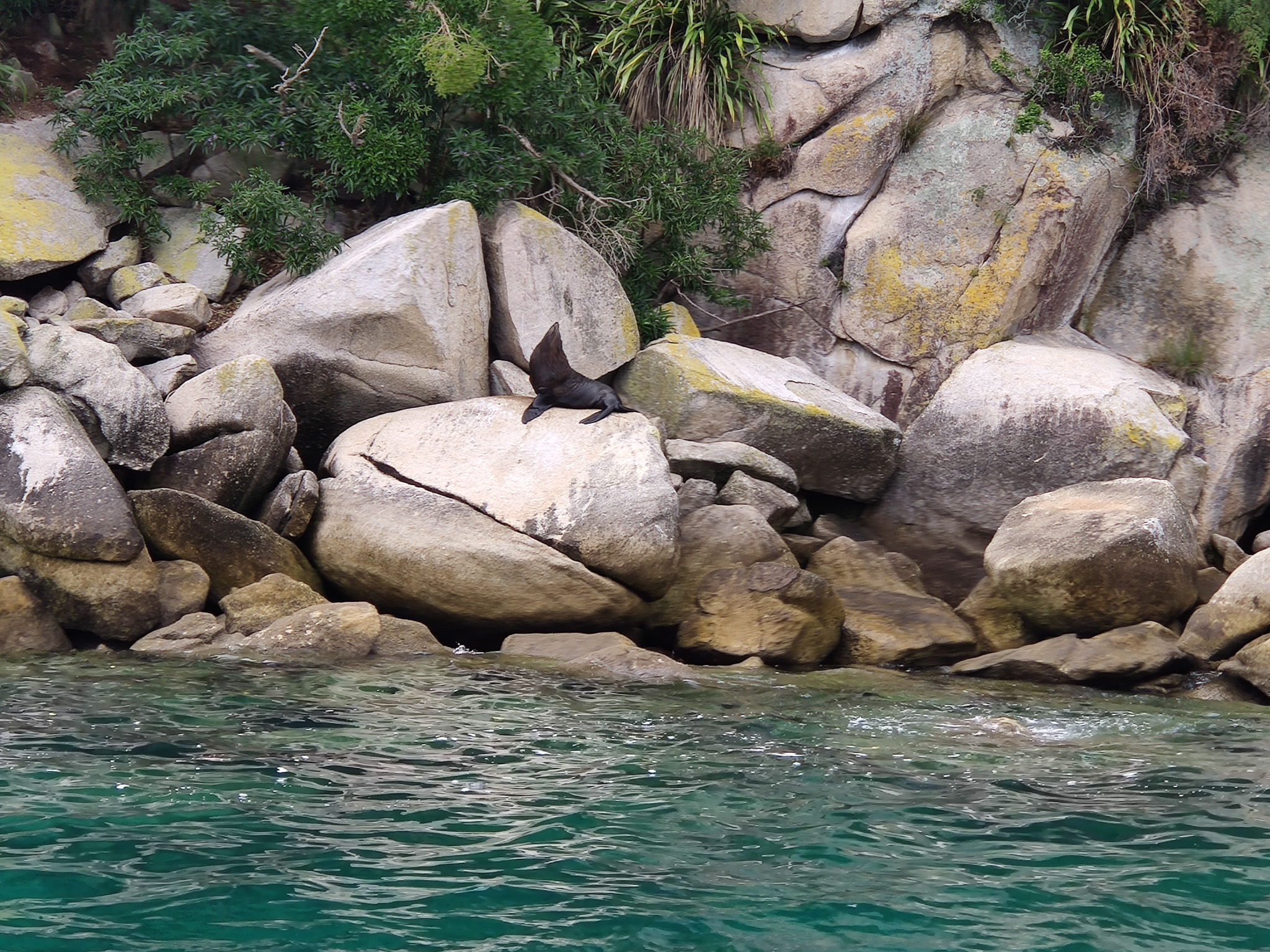 Eine zweite Seehund-Kolonie können wir auf den Felsen von Tonga Island aus der Nähe beobachten.