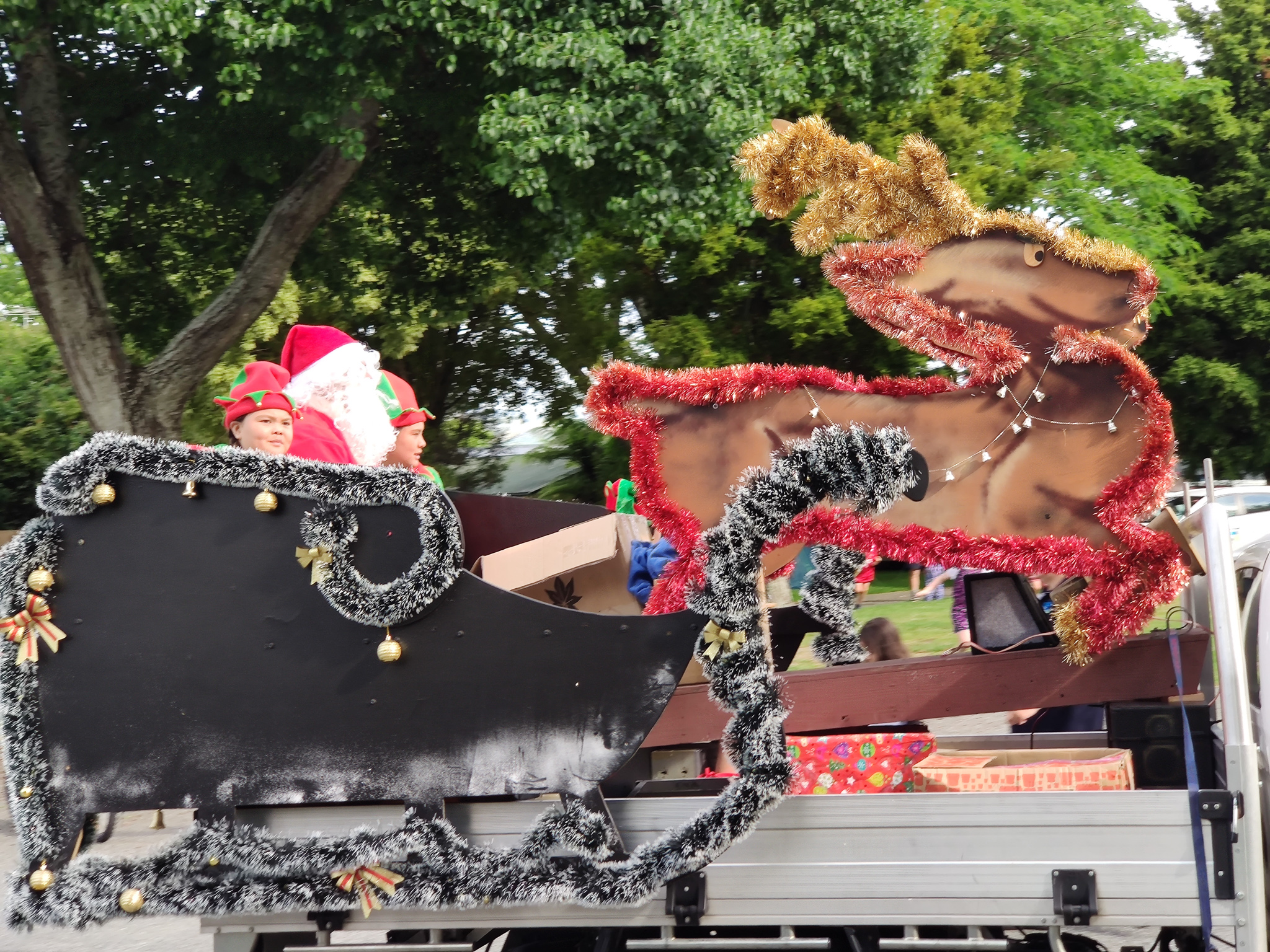 Nach etwa 15 Minuten erreichte ich meinen Holiday Park in Motueka, wo ich auf einem grosszügigen Platz den Weihnachtstag mit Nichtstun (und Blogschreiben) verbringen werde. Eigentlich wollte ich diesen Ausflug morgen unternehmen. Aber am 25.12. ist hier (zu Recht) alles geschlossen: Denn Santa 🎅 is in Town und bringt, begleitet von lauter Weihnachtsmusik, den Kindern Bonbons und Schokoriegel aus seinem von Hilux Dieselpower durch den Holiday Park gezogenen Schlitten.