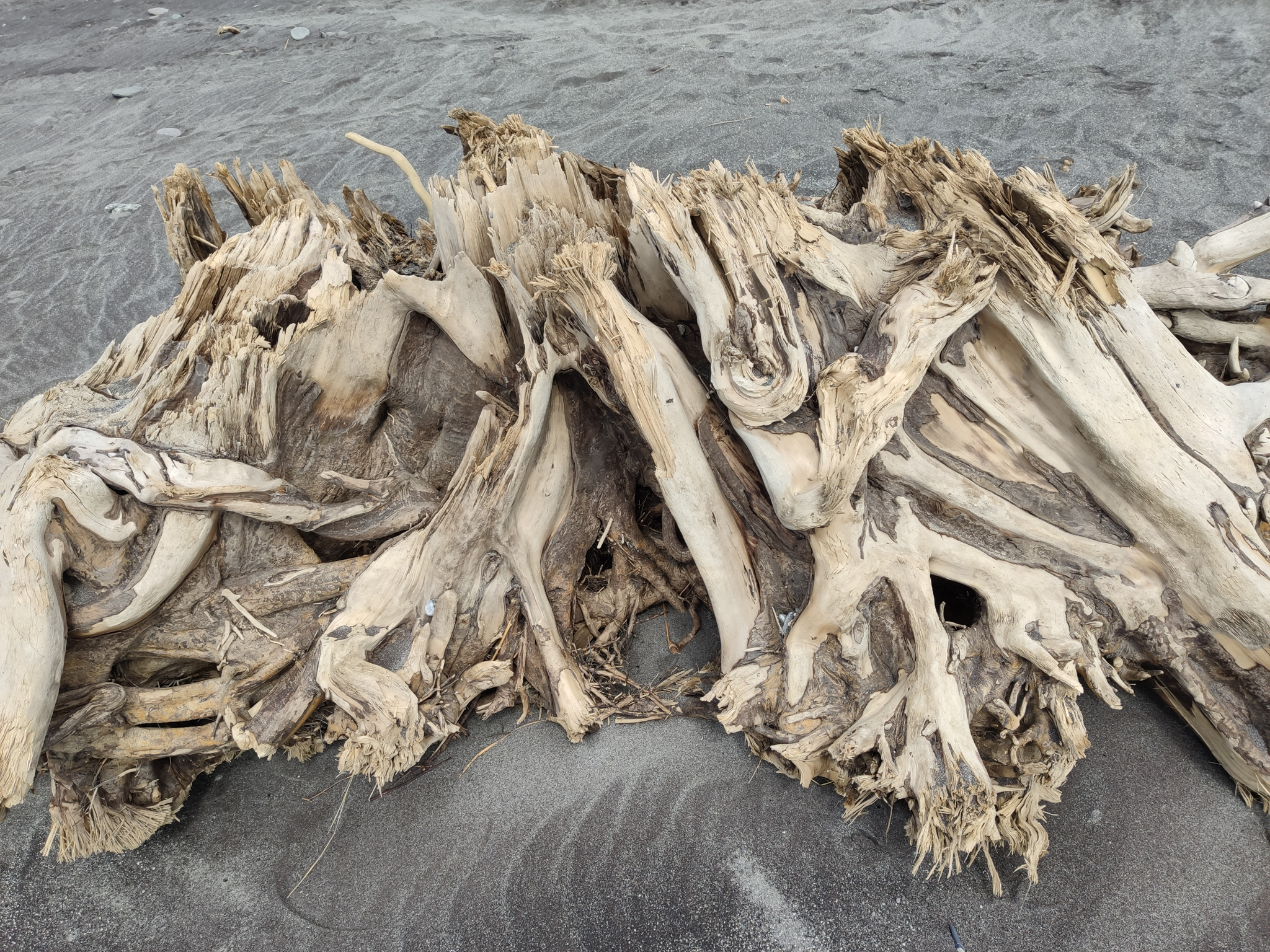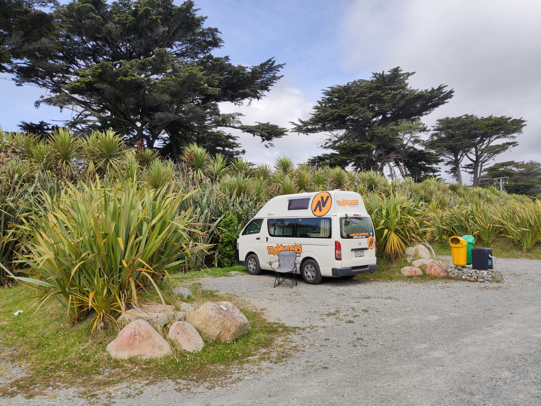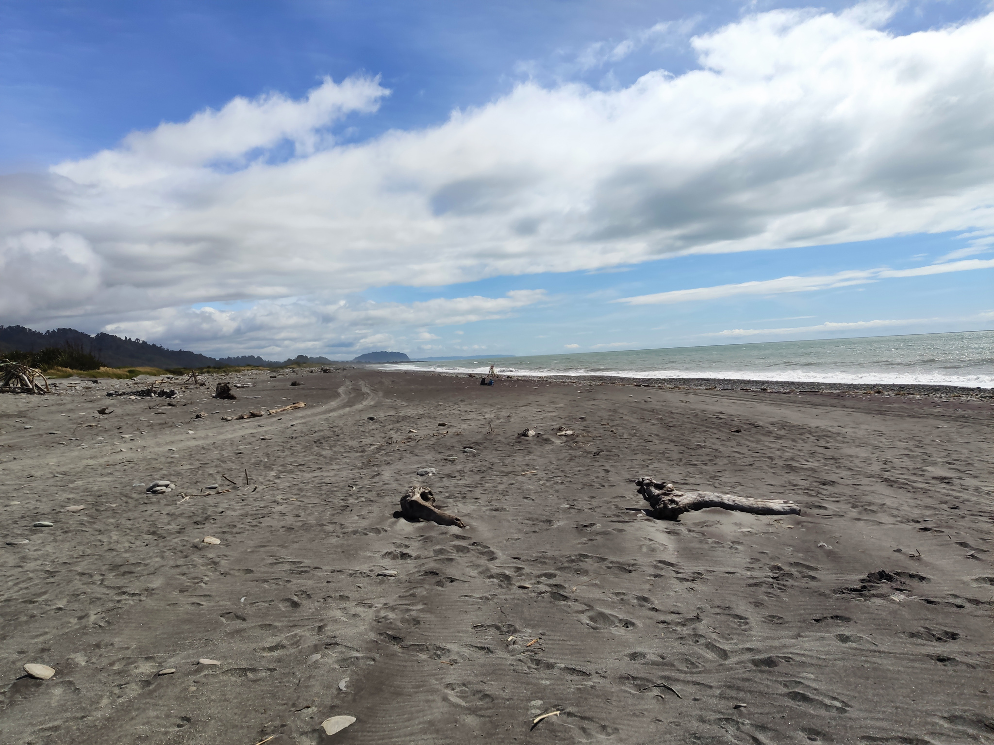 Der Strand von Ross Beach beeindruckt durch seine Wildheit und das viele rumliegende Schwemmholz. Der dunkle Sand wurde durch die Sonneneinstrahlung richtig schön aufgewärmt, aber der Wind war natürlich recht kühl. Trotzdem habe ich einen kleinen Strandspaziergang gemacht, bis es mir zu kühl wurde. Aber im Windschatten des Flachs vor dem Camper habe ich die Sonne noch super geniessen können.