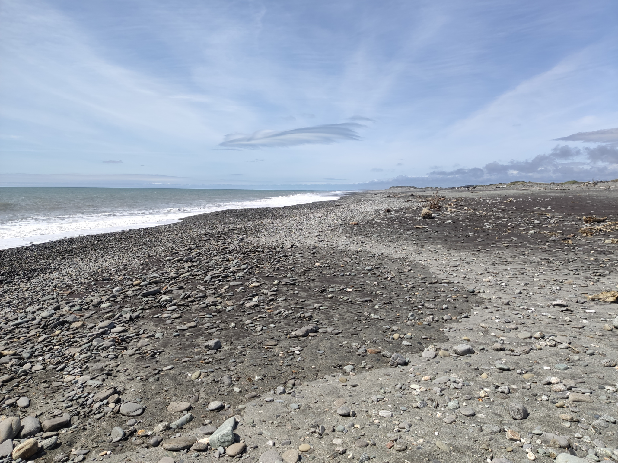 Der Strand von Ross Beach beeindruckt durch seine Wildheit und das viele rumliegende Schwemmholz. Der dunkle Sand wurde durch die Sonneneinstrahlung richtig schön aufgewärmt, aber der Wind war natürlich recht kühl. Trotzdem habe ich einen kleinen Strandspaziergang gemacht, bis es mir zu kühl wurde. Aber im Windschatten des Flachs vor dem Camper habe ich die Sonne noch super geniessen können.