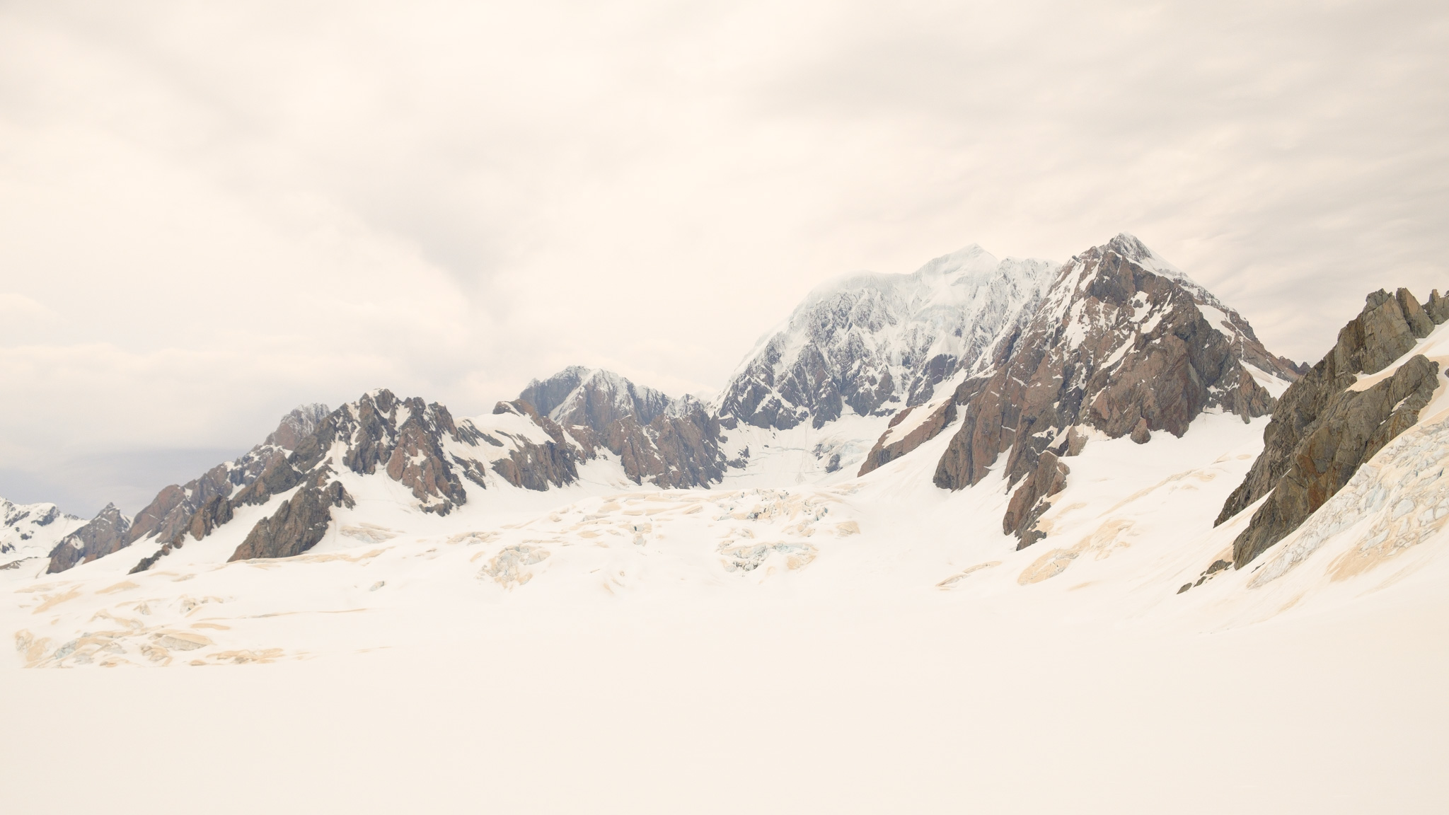 Wir durften heute für 8 Minuten auf dem Gletscher landen und (bei laufendem Rotor des Helikopters) aussteigen und die unbeschreibliche Szenerie der Berg Welt und der Sicht bis zum Meer zu geniessen. Unser Pilot erklärte mir, dass er Mt. Tasman seit sicher einem Monat nicht mehr so ohne Wolken gesehen hat. Meine Fotos haben also schon fast Seltenheitswert.