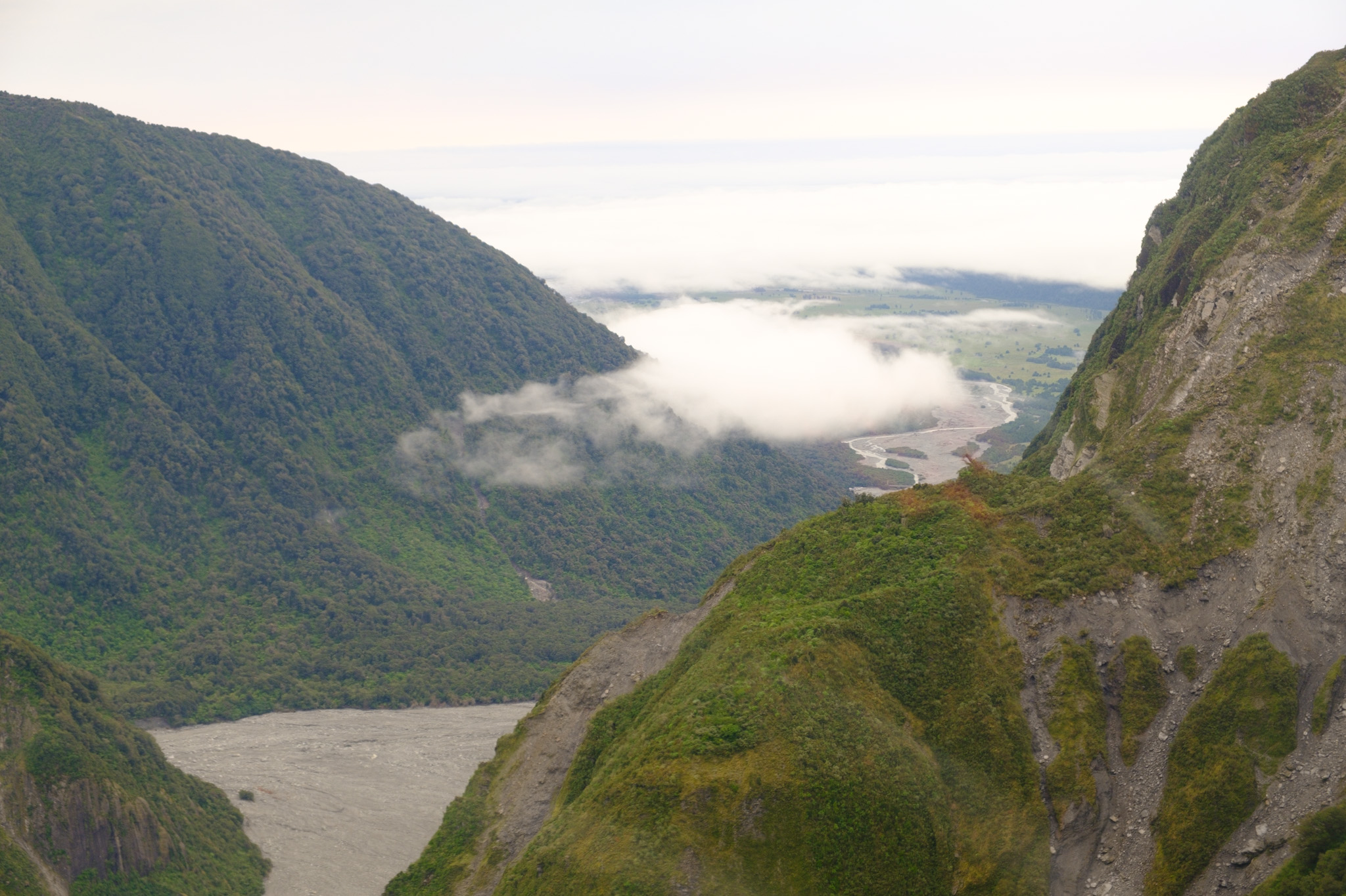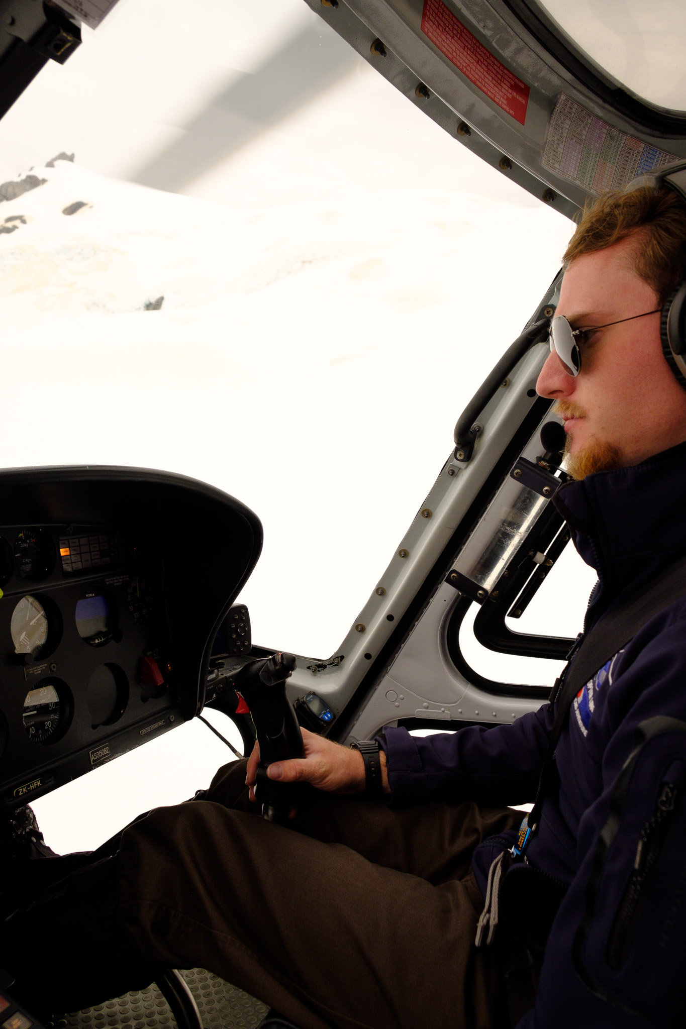 So ging ich ins Dorf, wo der Flug bestätigt wurde, allerdings nur ein 20-minütiger Flug auf den Fox Gletscher inklusive Gletscherlandung. Wir stiegen dann pünktlich zu fünft in den Helikopter; ich hatte natürlich geschaut, dass ich mindestens einen Fensterplatz auf der Hinterbank erhielt. Auf dem Hinflug durfte jemand anders neben dem Piloten sitzen, was schon beim Checkin bestimmt wurde.