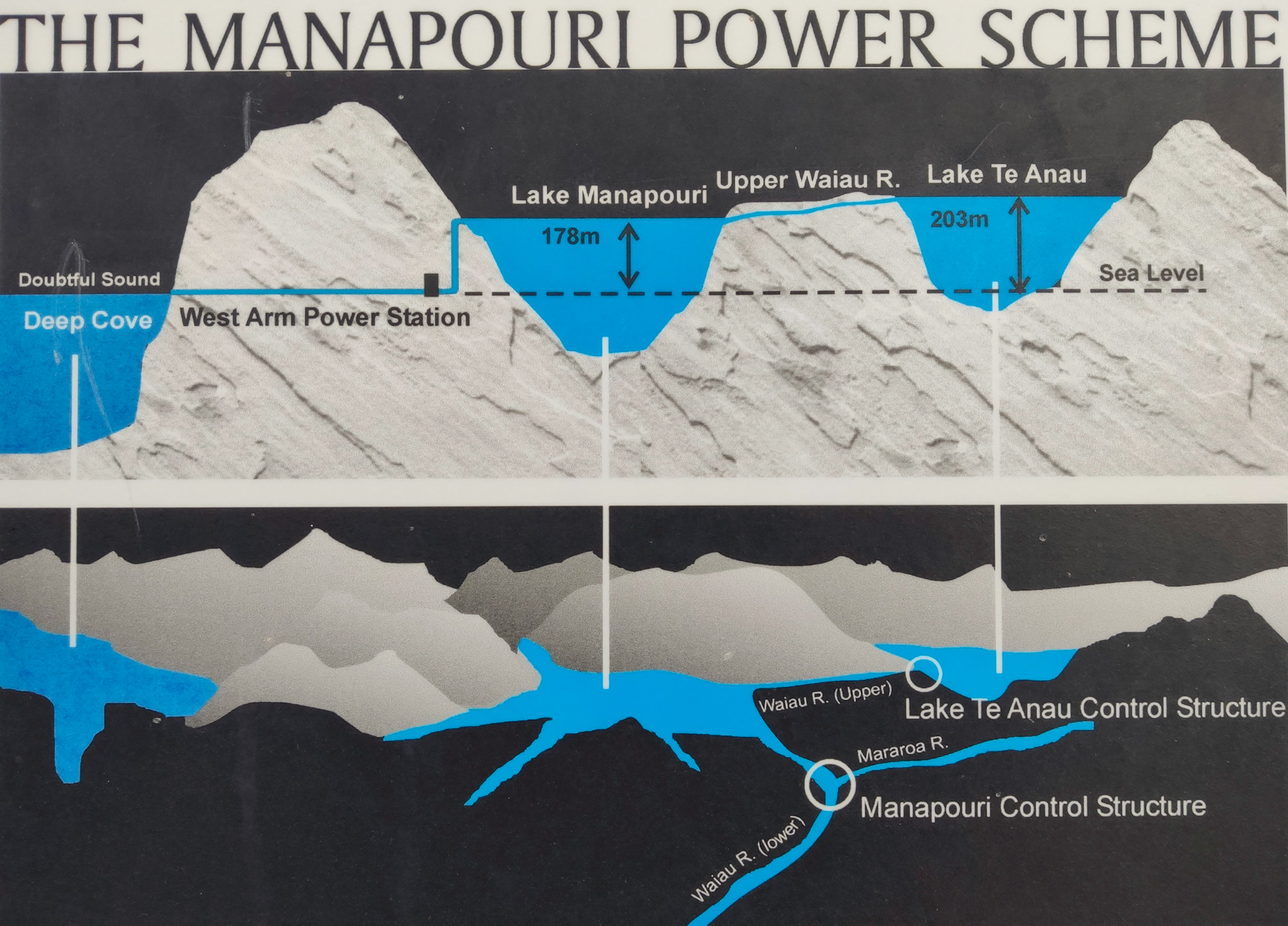 An einem ersten Aussichtspunkt sieht man die Auswirkungen des Manapouri Kraftwerks. Der Waiau River führt deswegen deutlich weniger Wasser. Um ein wichtiges Sumpfland nicht ganz austrocknen zu lassen, wurde deshalb ein Staudamm gebaut, welcher das wenige Wasser etwas aufhält und den Tieren und Pflanzen ein urspünglicheres Habitat ermöglicht.