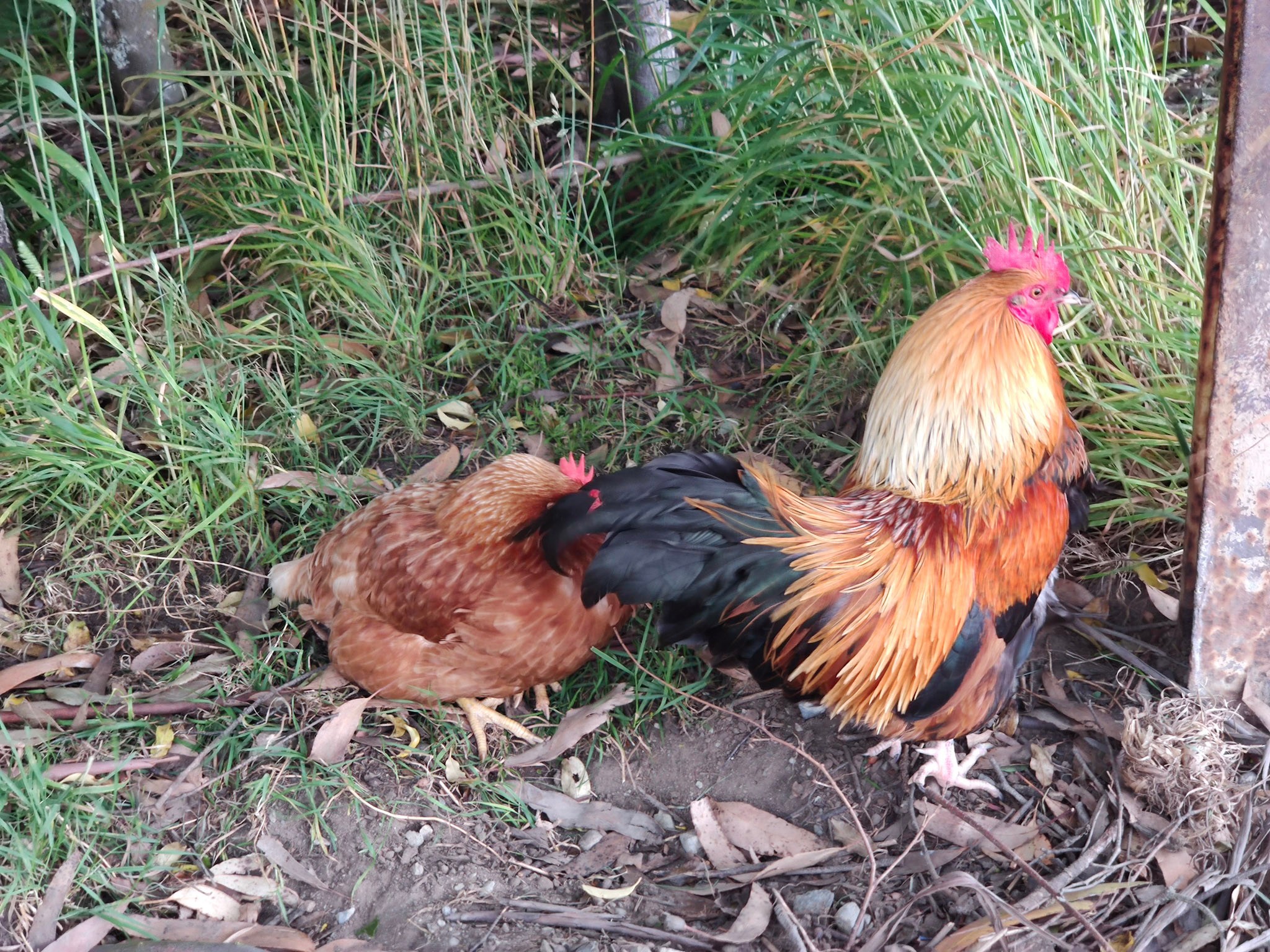 Inzwischen stürmte es sehr stark, die Böen sollen wohl 120-140km/h erreichen: Äste wurden von den Bäumen geweht und lagen auf dem Zufahrtsweg zum Parkplatz an der Brücke. Ich wurde fast weggeht, als ich ein paar Fotos machen wollte. Zwei Hühner suchten in der Nähe auch etwas Windschutz.