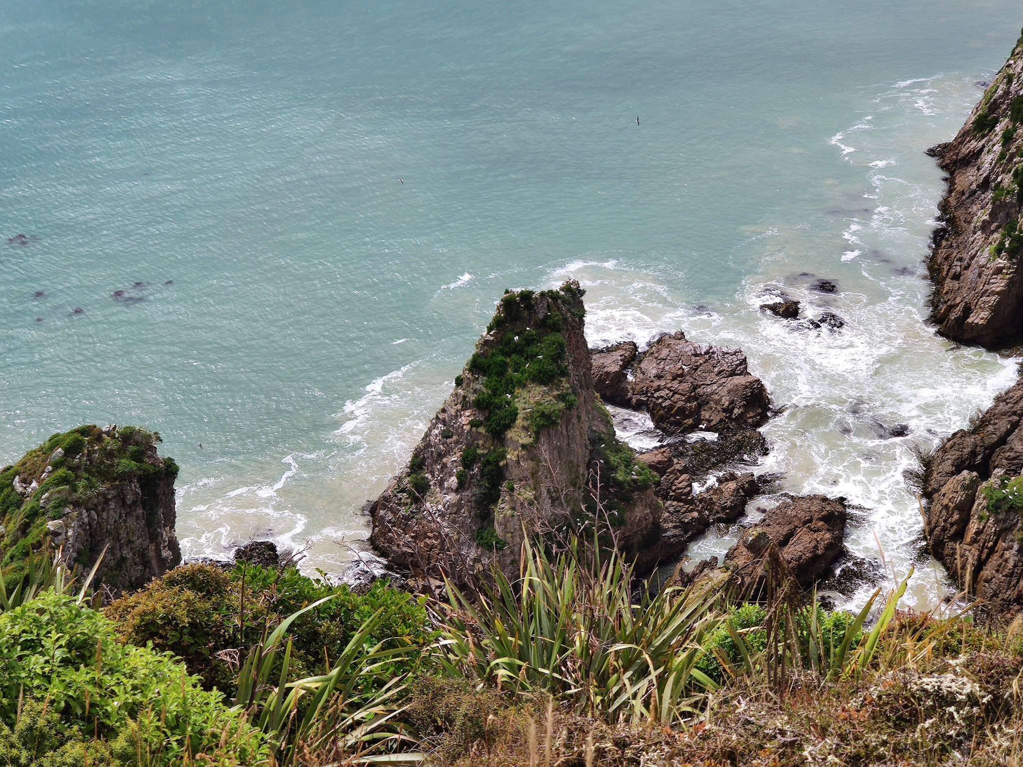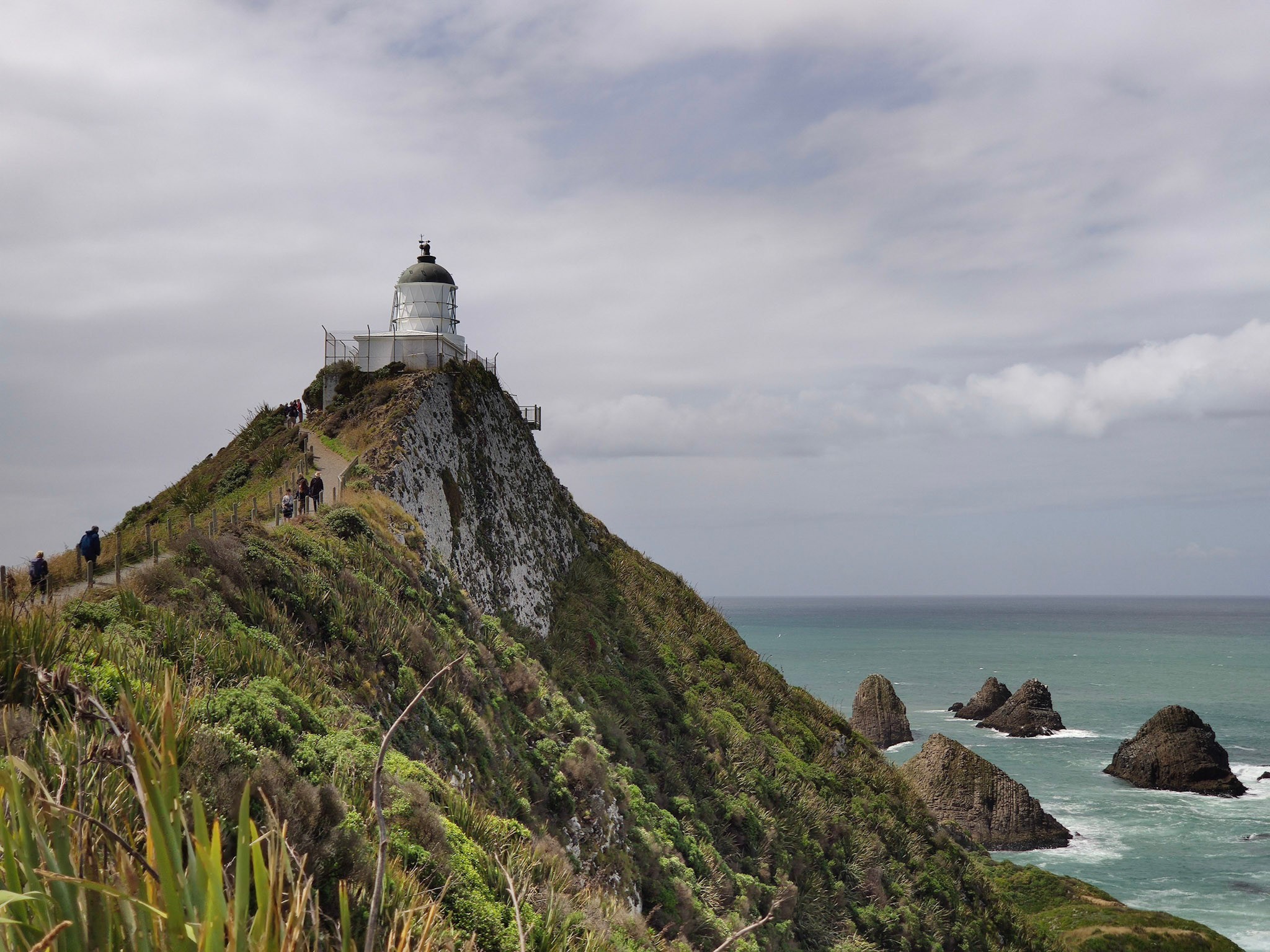 Das nächste, vielfotografierte Highlight ist der Leuchtturm von Nugget Point. Auf dem fast vollen Parkplatz konnte ich mir noch einen letzten Parkplatz ergattern. Der nächste durchziehende, heftige Regenschauer nutzte ich für einen kleinen Lunch im Campervan. Danach schien wieder die Sonne und ich machte mich auf den Weg zum Leuchtturm. Im Windschatten des Kliffs wurde es in der Sonne schön warm. So machte es umso mehr Spass, tief unten die zahlreichen Robben und die Seevögel zu beobachten. Der kleine Leuchtturm steht sehr malerisch fast am Ende des steilen Kliffs. Kein Wunder, wird der so viel fotografiert!