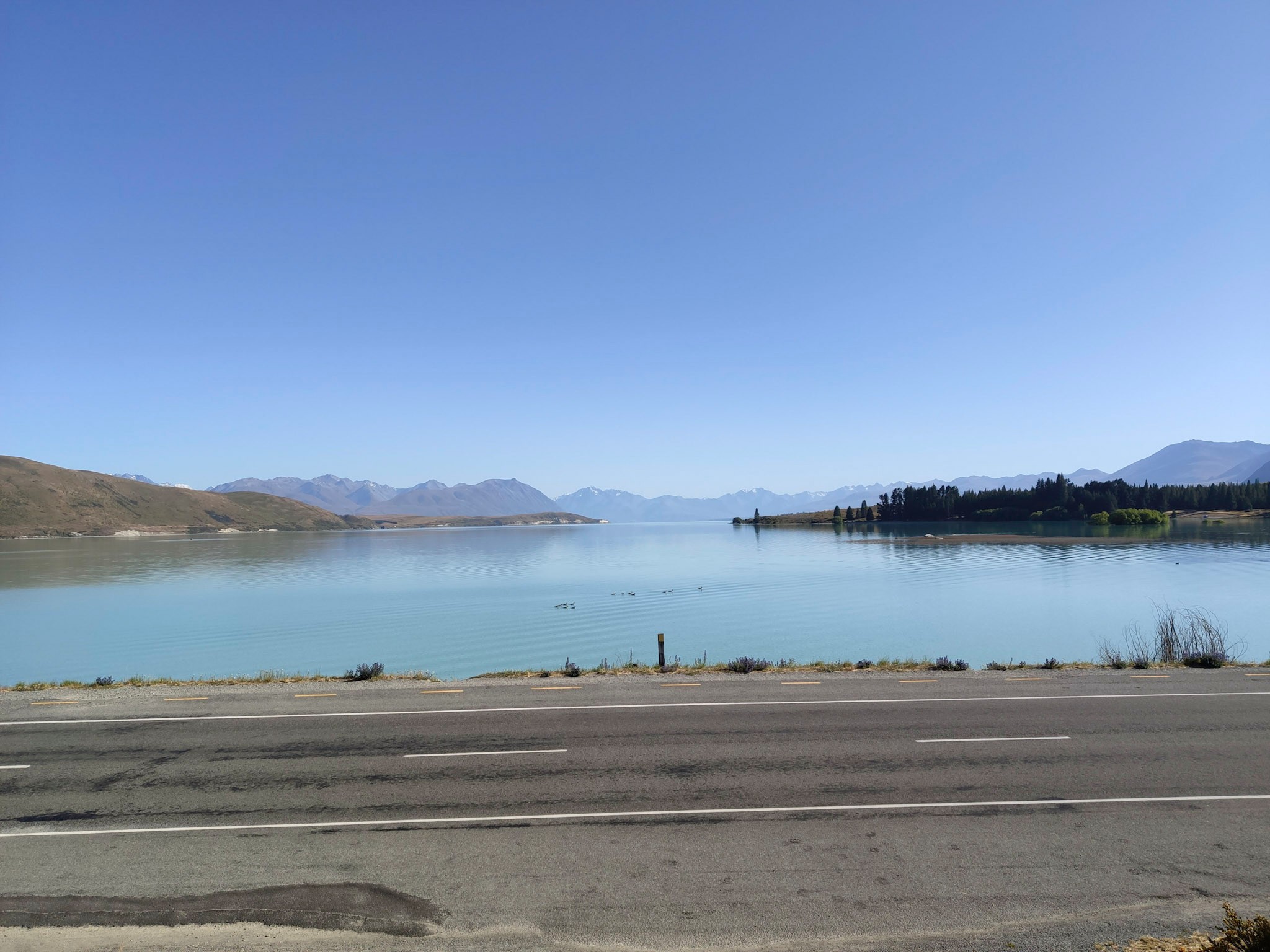 Der Lake Tekapo liegt inmitten des MacKenzie Basins und ist wohl das bekannteste Gewässer der Region, aber die türkisblau spiegelnde, weite Wasseroberfläche des Lake Pukaki beeindruckt schon am meisten.