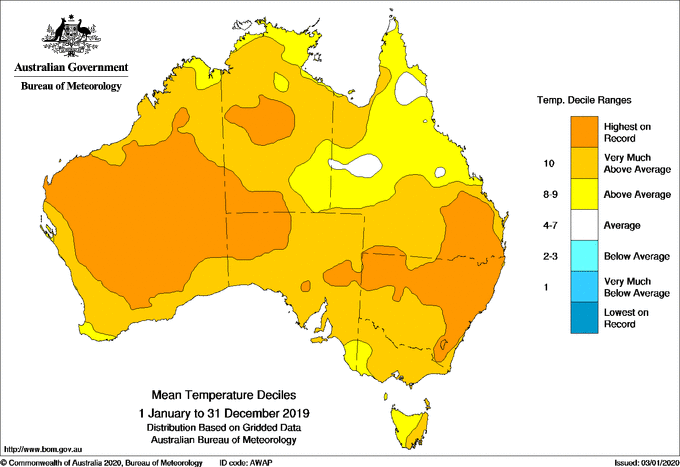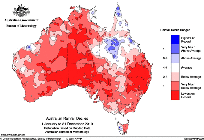 Allerdings war 2019 das heisseste und trockenste Jahr in Australien seit Aufzeichnungsbeginn vor 120 Jahren, wie die beiden Grafiken links aufzeigen. Die Regenzeit hat im Norden rund einen Monat später begonnen.
