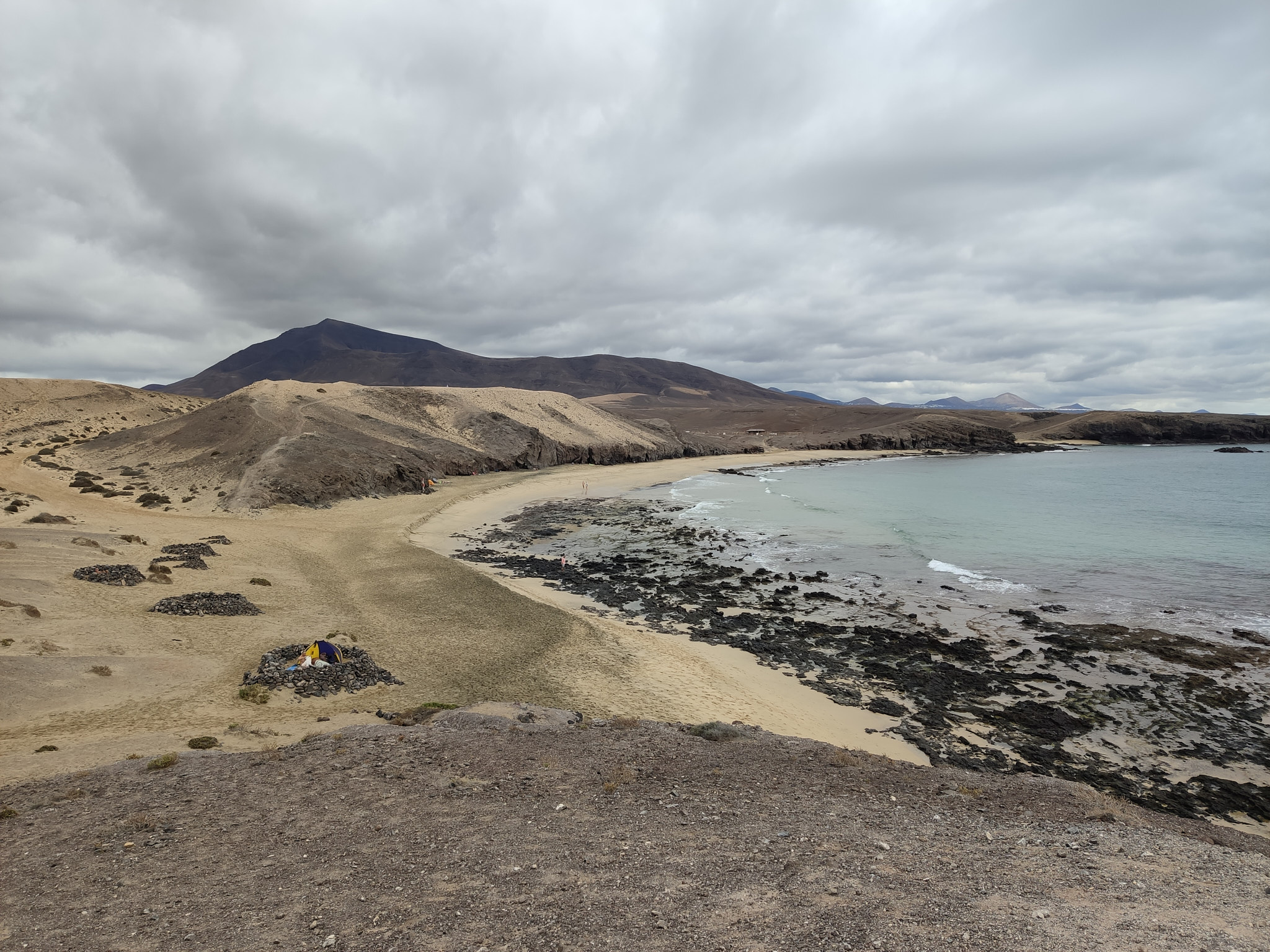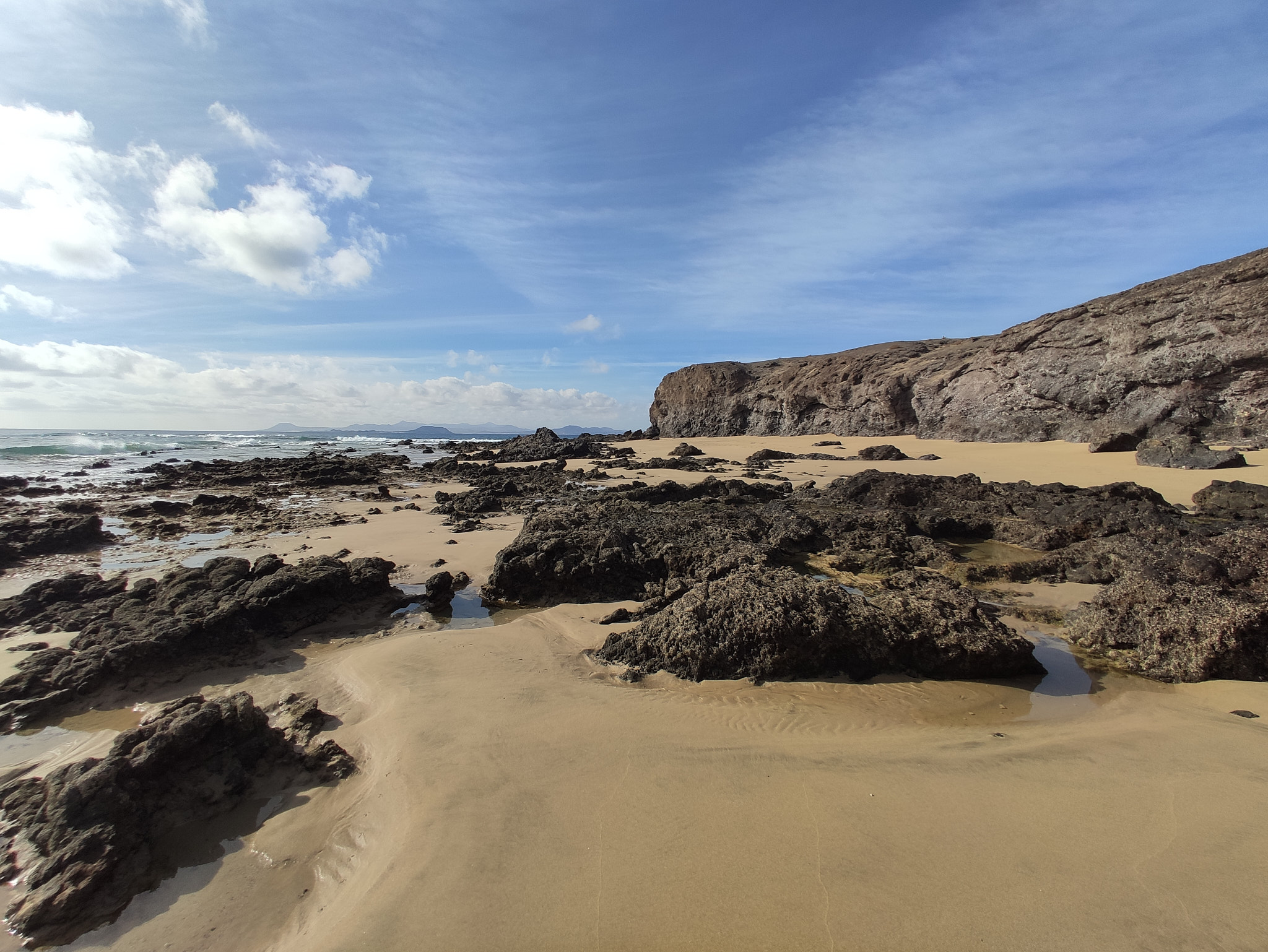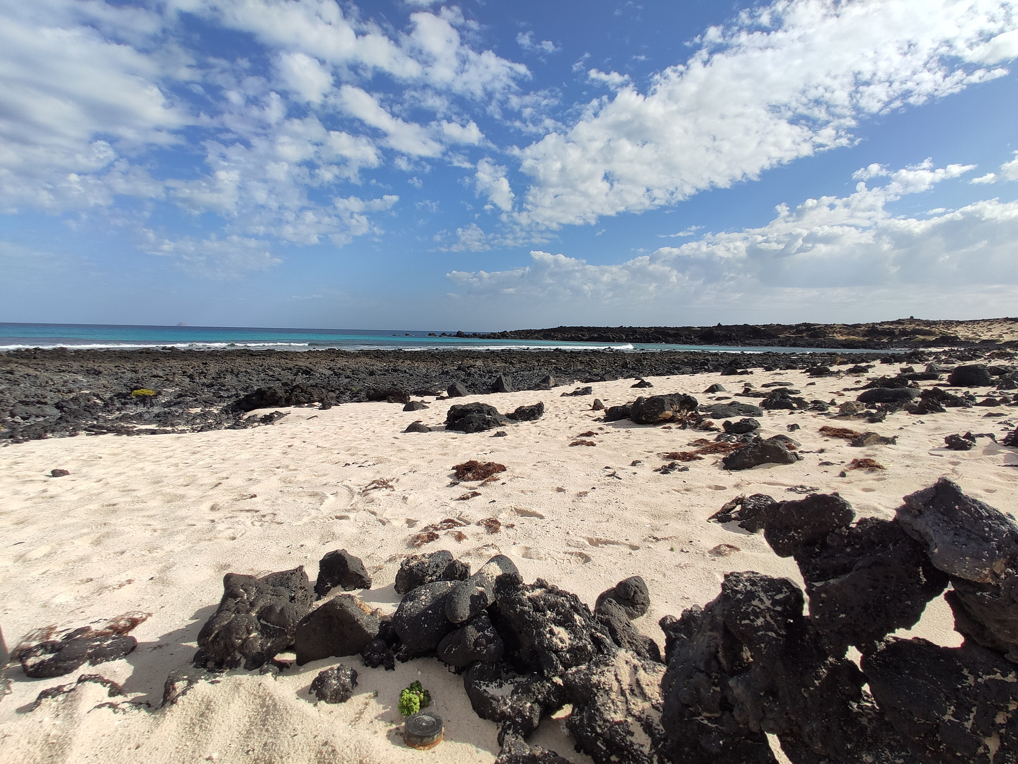 Am nächsten Tag bin ich mit dem Auto etwas weiter gefahren und habe mich im Windschatten einer Strandburg an der Caleta de Mojón Blanco gesonnt.