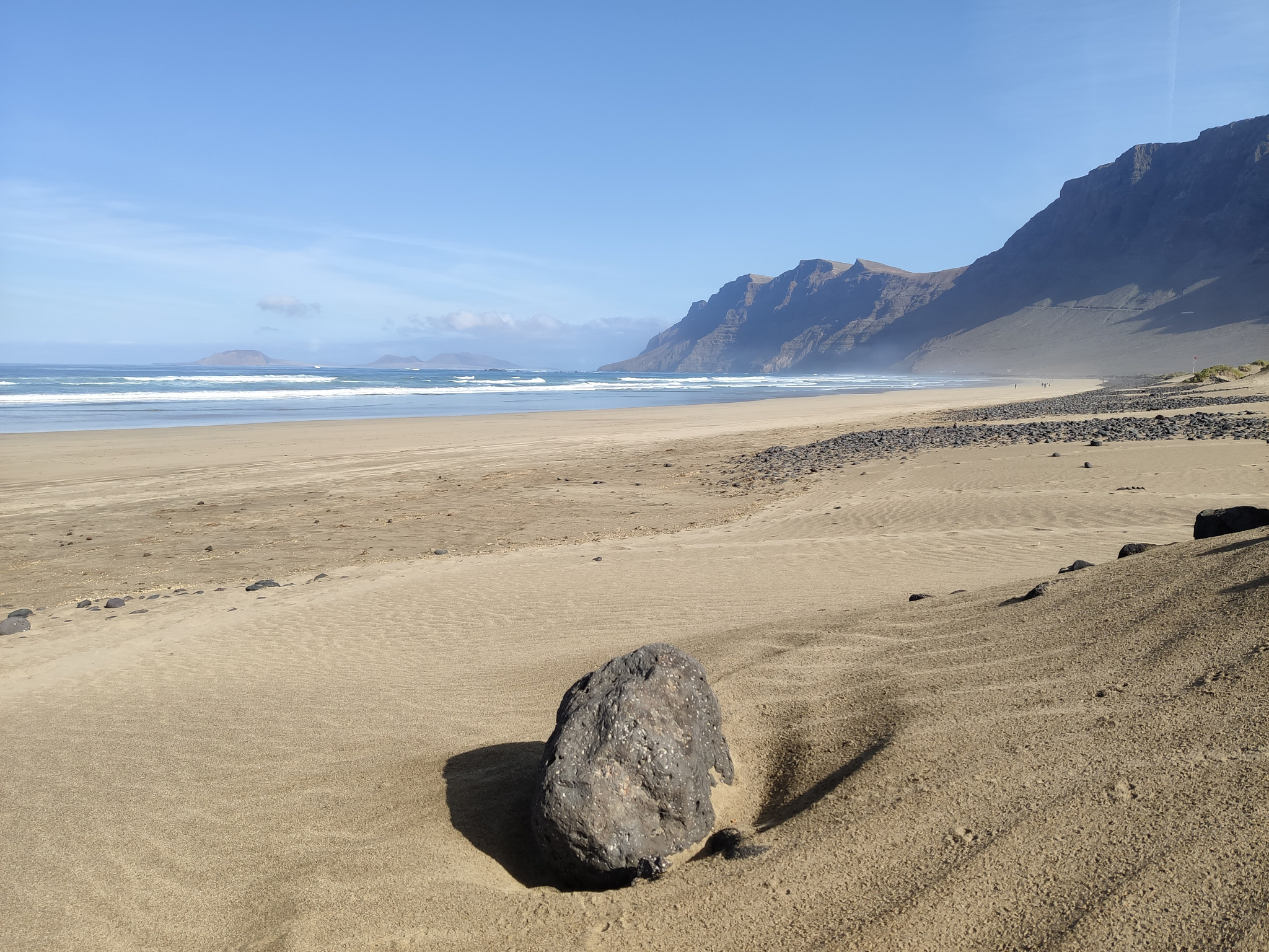 Am 28. Dezember dann nochmals ein Ausflug an die Playa de Famara gefahren. Nach der üblichen Strandwanderung habe ich mir eine windgeschützte Strandburg gesucht und die Ausblicke genossen.