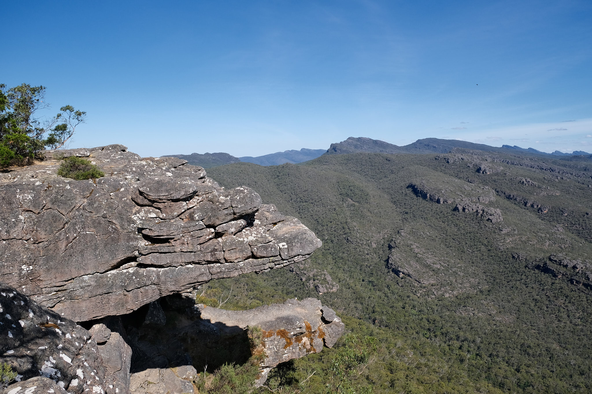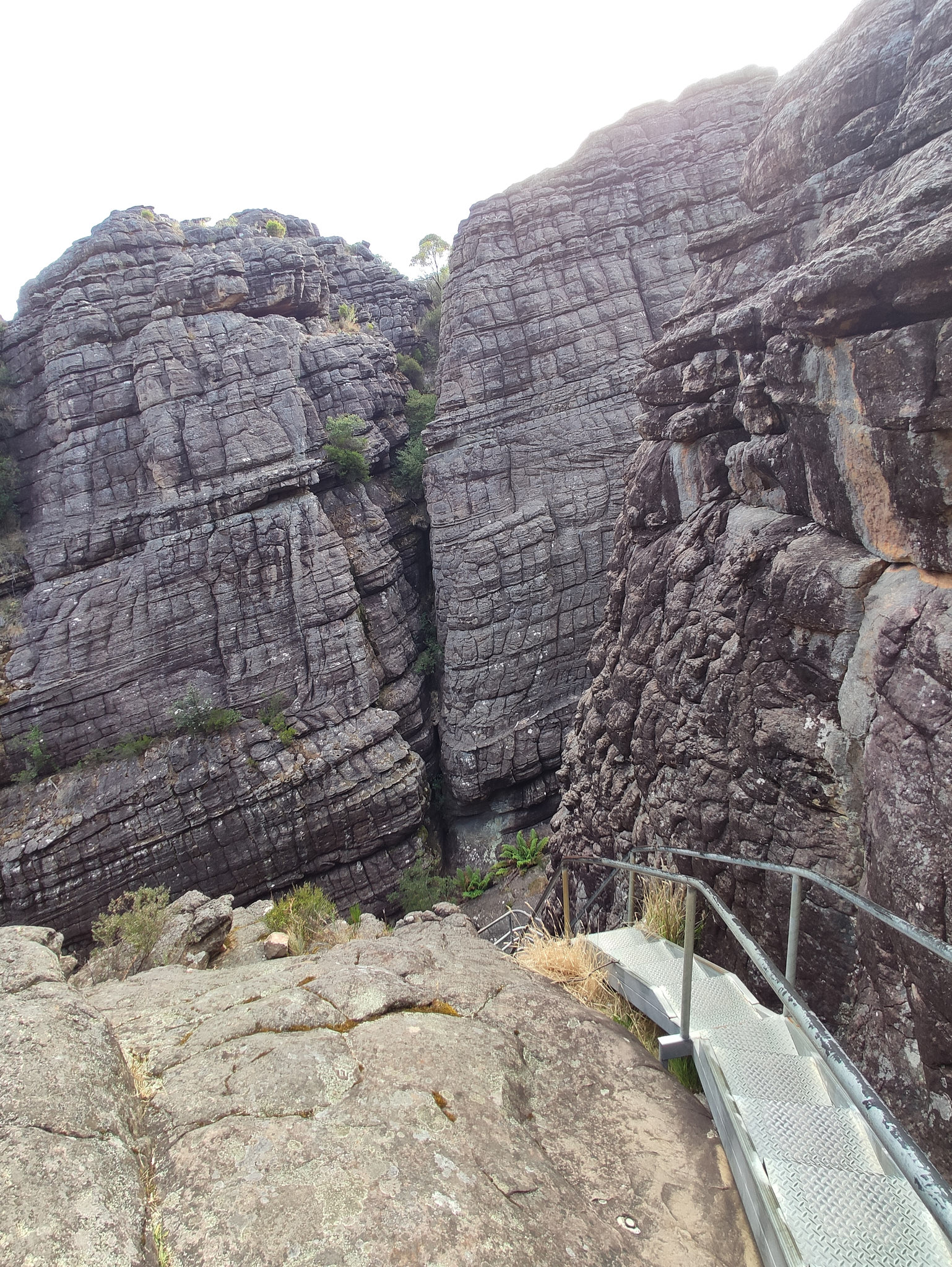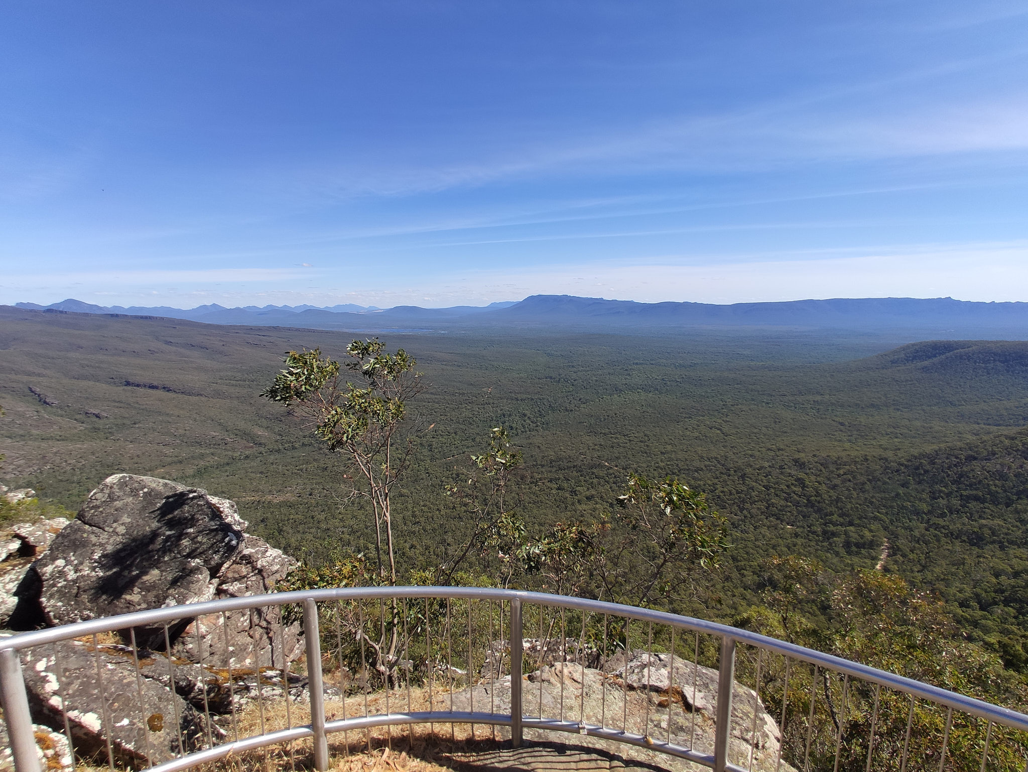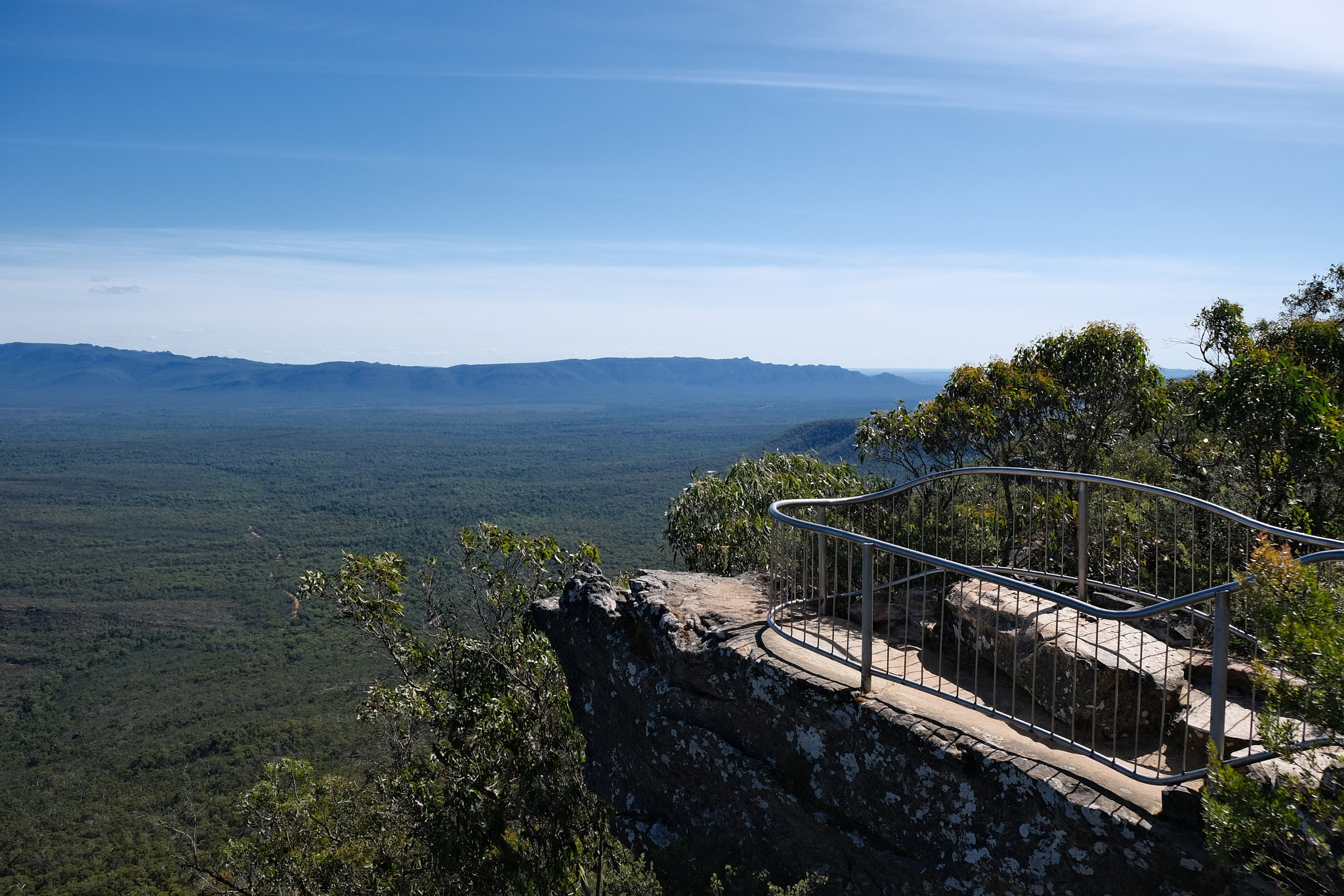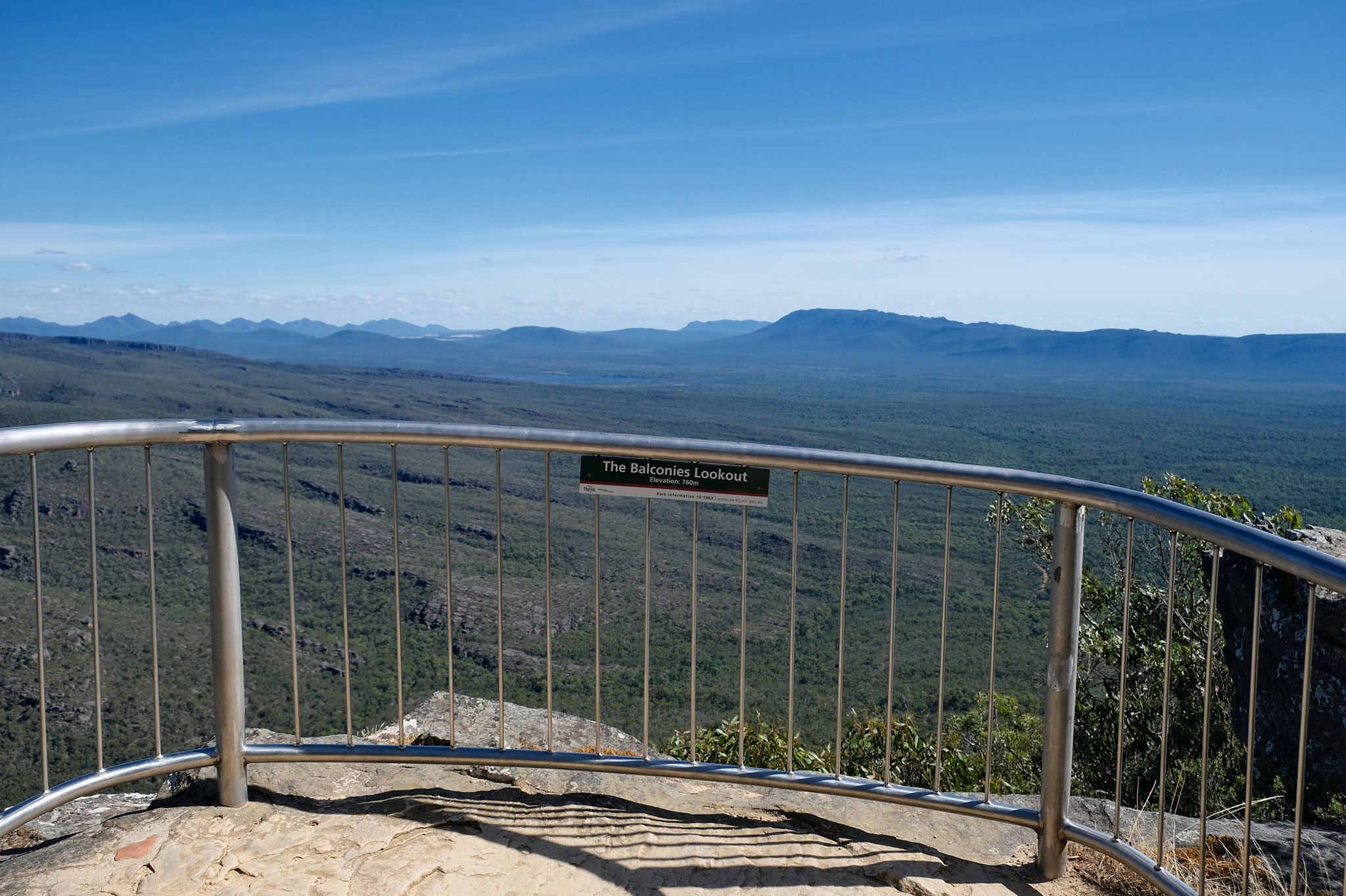Wieder oben angekommen (weitere 240 Treppenstufen!) entschied ich mich, zum Abschluss des Tages noch vom Reed Lookout zu den Balconies (1.2km), auf fast ebener Strecke durch den Wald zu gehen. Auch das ein toller Ausblick! Und so spät am Nachmittag wieder fast menschenleer.