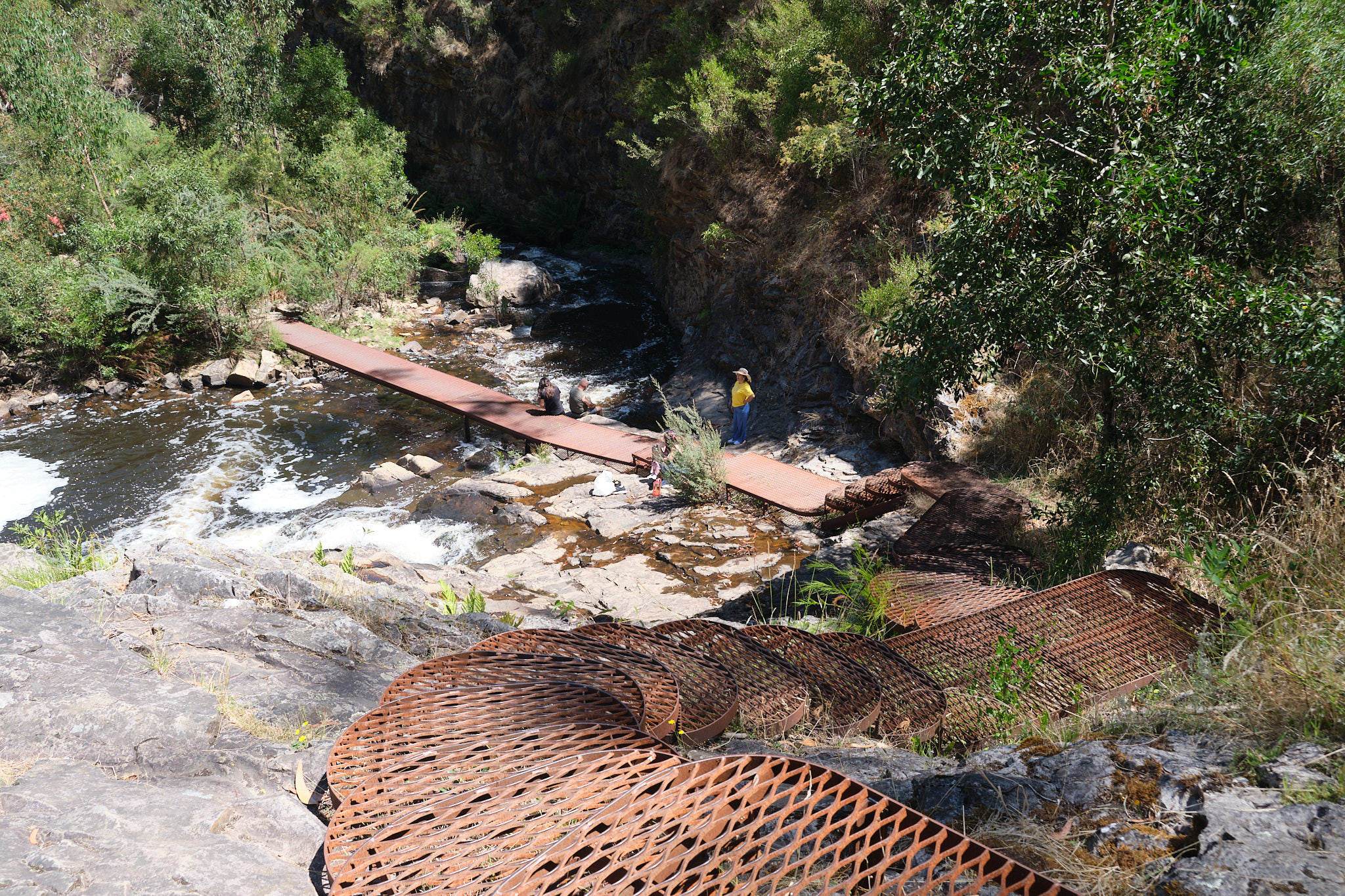 Da ich ja noch nicht genügend Treppenstufen absolviert hatte, ging ich nun weitere 1.4km den Fluss entlang zu den Fish Falls. Natürlich mit weiteren Treppenstufen! Das Becken der Fish Falls nutzten einige zum Baden. Leider war die Sicht auf die drei oder vier beeindruckenden Stufen des Wasserfalls durch Bäume bedeckt und es gab keinen Übergang an das andere Ufer für einen besseren Blickwinkel.
