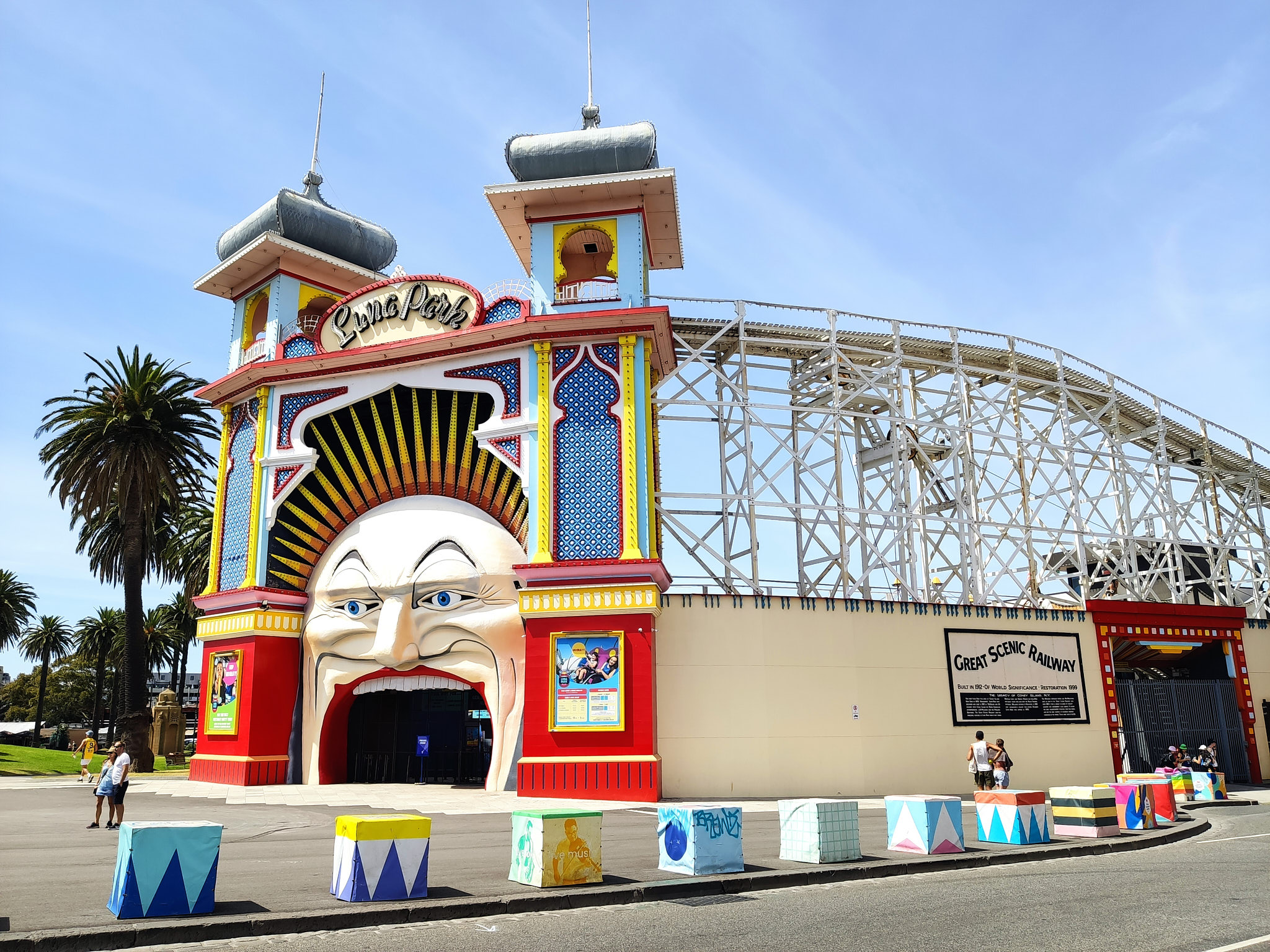 In St Kilda Beach habe ich mir einen Lunch (und ein Brot für die weitere Reise) gekauft, habe mir den berühmten Luna Park von aussen angeschaut und an der Beach der Esplanade meinen kleinen Lunch genossen.