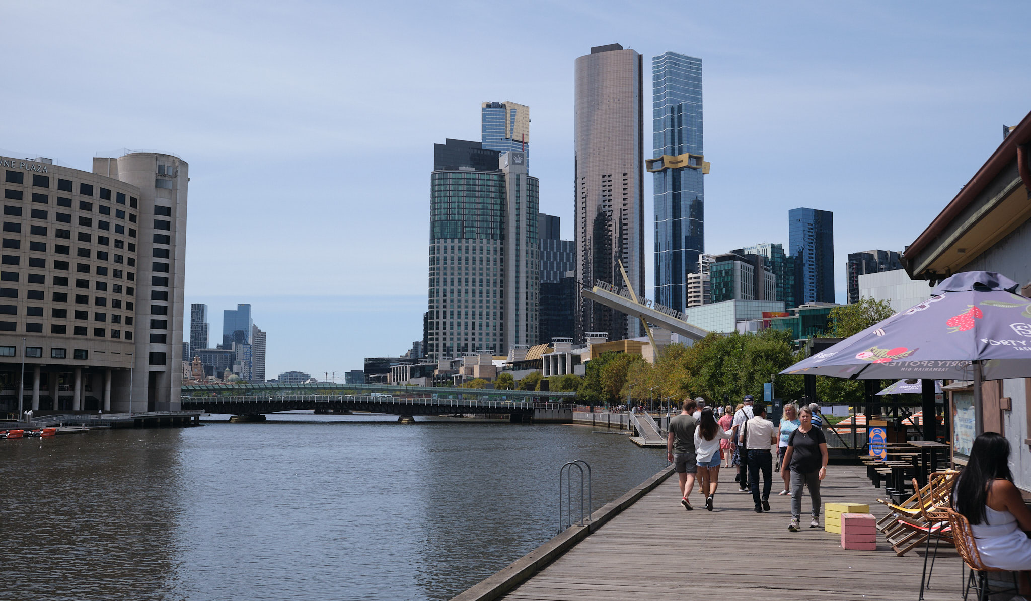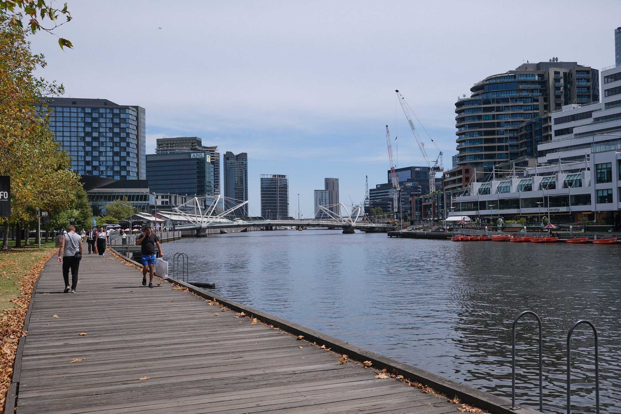Mit dem Tram ging es dann zurück zum Melbourne Convention and Exhibition Centre (MCEC) am Yarra River. Von der South Wharf Promenade über die Webb Bridge konnte ich ausführlich die vielfältigen, zumeist neueren Hochhäuser der City und der South Wharf bestaunen. Als Schlusspunkt habe ich die ziemlich menschenleeren Docklands besucht, wo auch schon an der Endstation mein 11er Tram nach West Preston/Gilbert Rd wartete.