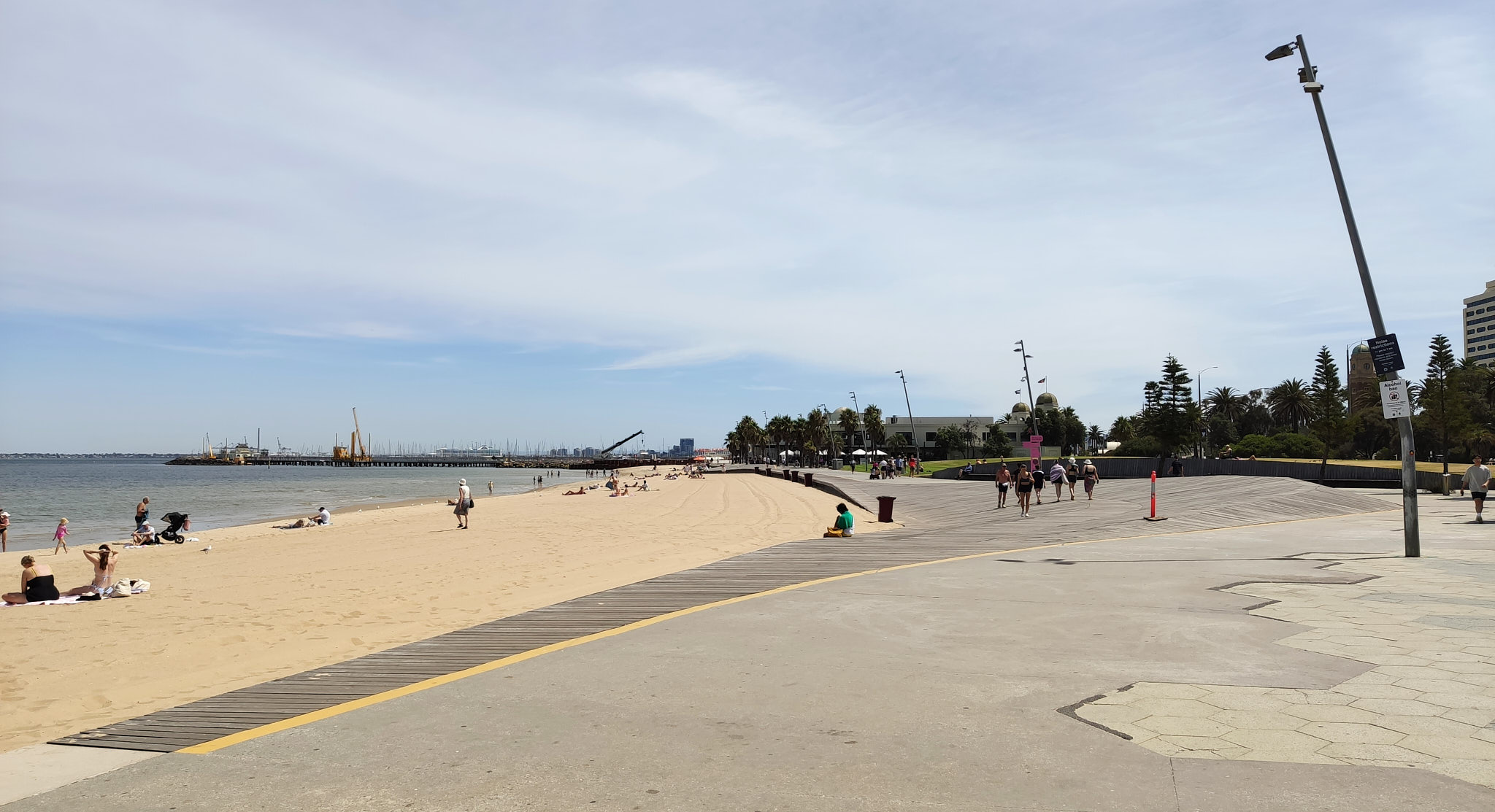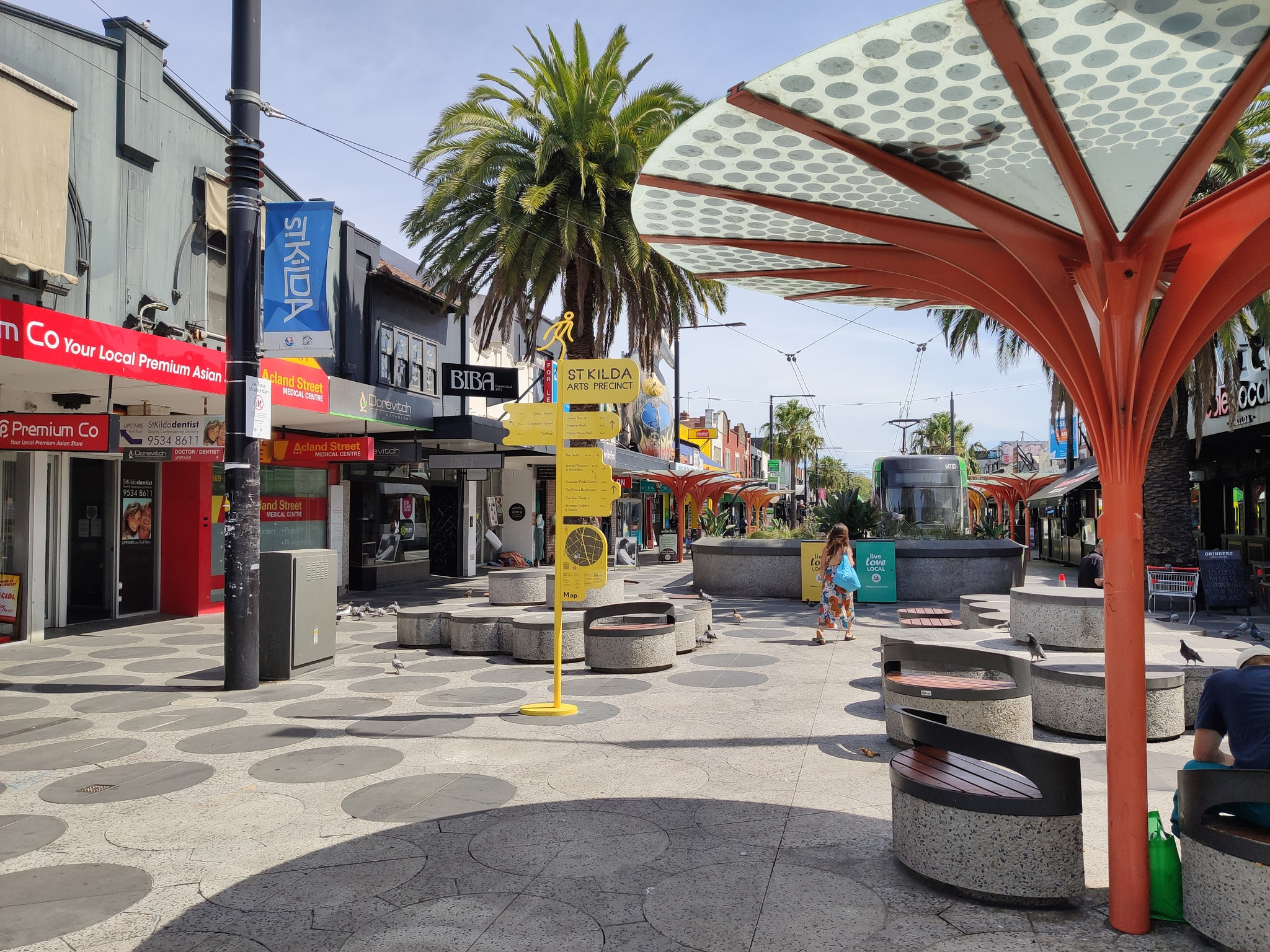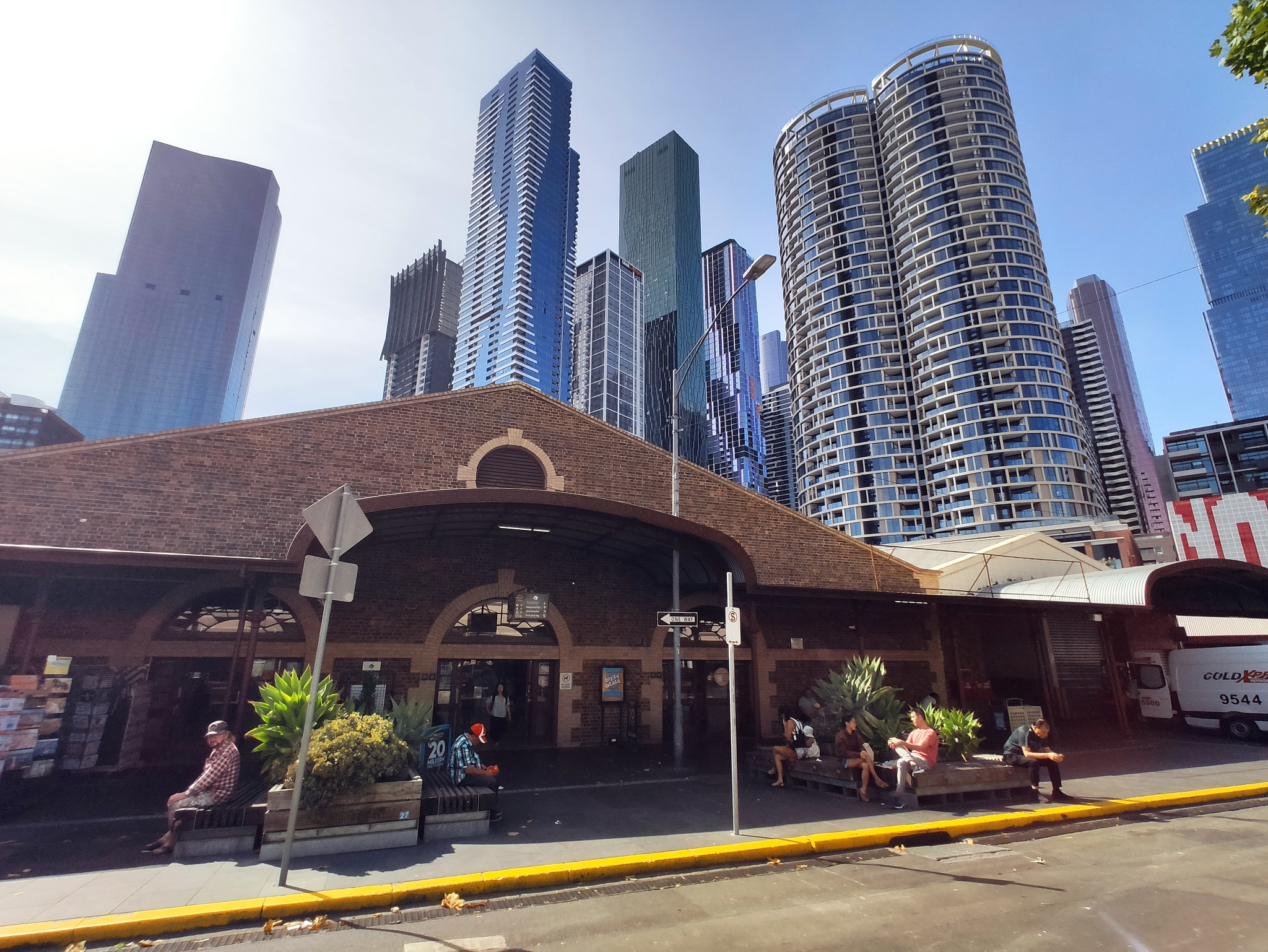 Dann bin ich mit dem Tram zu riesigen Queen Victoria Market gefahren, der sich über zwei Blöcke erstreckt. Ein Drittel ist aber aktuell eine riesige Baustelle. Einen so grossen Markt mit einem so riesigen und vielfältigen, multikulturellen Angebot habe ich noch nie gesehen. Da merkt man, dass man in einer Metropole mit 4 Millionen Einwohnern unterwegs ist. Ich bin nach dem Besuch etwa 2km entlang der Elizabeth St bis zu den Carlton Gardens und dem Royal Exhibition Building gegangen. Eigentlich wollte ich danach noch den Street Art Walk machen, da dieser aber wieder durch das CBD führte und es langsam Mittag wurde, habe ich mich entschlossen, das Tram bis nach St Kilda Beach (45′ Fahrt) zu nehmen und die Street Art wegzulassen.