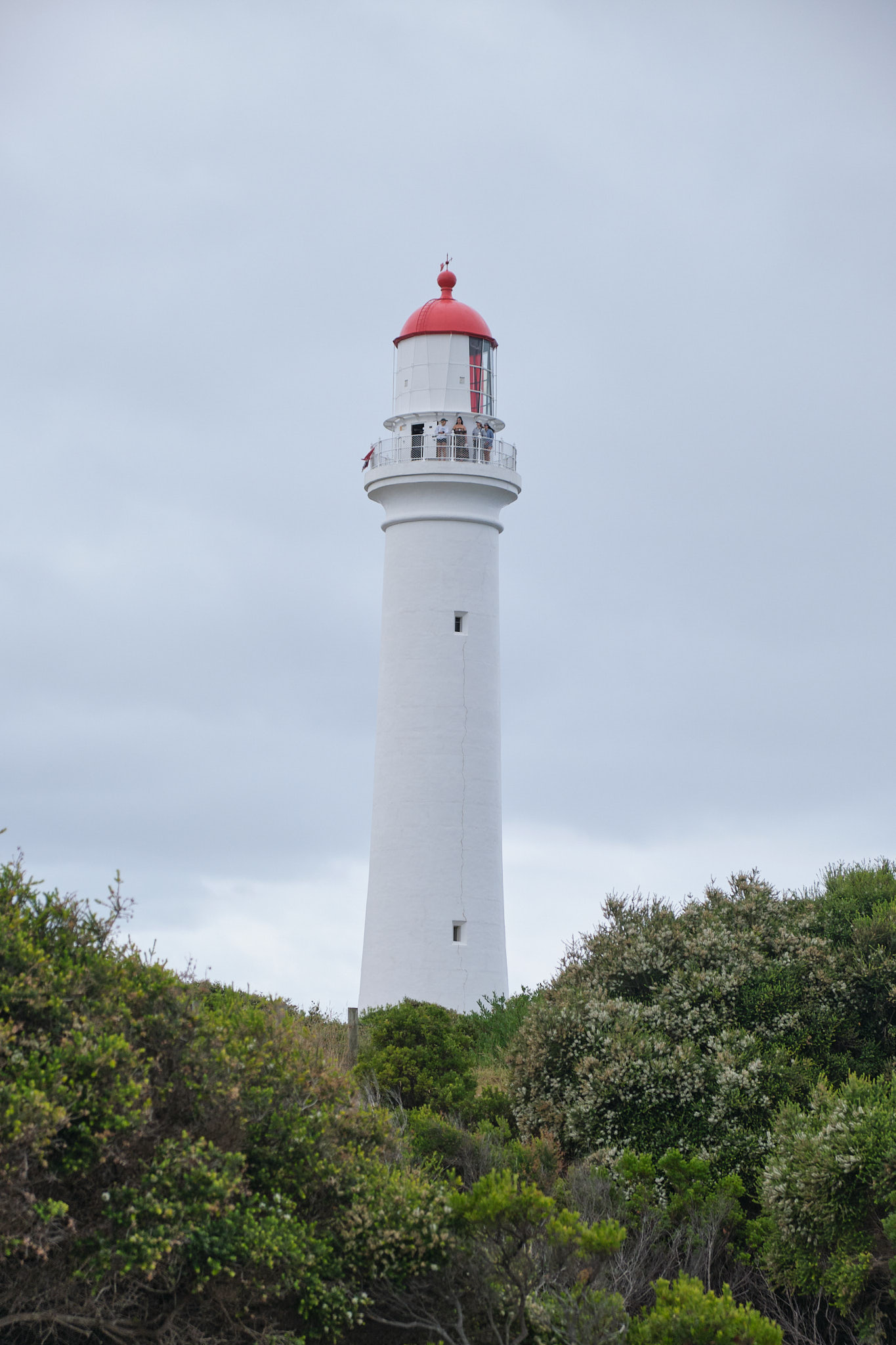 Als erstes wollte ich mir das Split Point Lighthouse ansehen. Da merkte ich aber, dass Sonntag war und der Leuchtturm ein sehr beliebtes Ausflugsziel ist. Alle Parkplätze beim Leuchtturm waren voll. Danach habe ich gesehen, dass es an der Hauptstrasse bei einem Picknick- und Spiel-/Skateplatz, nur wenige hundert Meter vom Leuchtturm entfernt, mehr als genug freie Parkplätze gab. So einen habe ich mir geschnappt und bin den kurzen Weg zum Leuchtturm raufgegangen. Zusätzlich gab es noch einen wunderbaren Blick auf den Paincalac Creek.