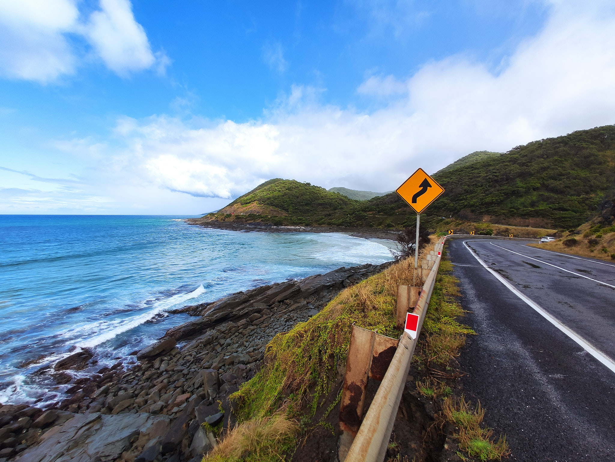 Die Great Ocean Road befahre ich nun schon zum dritten Mal (für das zweite Mal gibt es die Blogposts „Limestone Coast Teil 1“ und „Limestone Coast Teil 2“ und „On The Rocks“). In der Planung hatte ich mich entschieden, die Strasse dieses Jahr mal von Torquay nach Warrnambool und nicht von Warrnambool nach Torquay zu bereisen. Das hat auf dem „felsigen“ Teil der Strecke den grossen Vorteil, dass man ganz einfach links alle Haltemöglichkeiten nutzen kann. In der anderen Fahrtrichtung hält einem die meist doppelte Sicherheitslinie und die Unübersichtlichkeit der kurvigen Strecke davon ab.