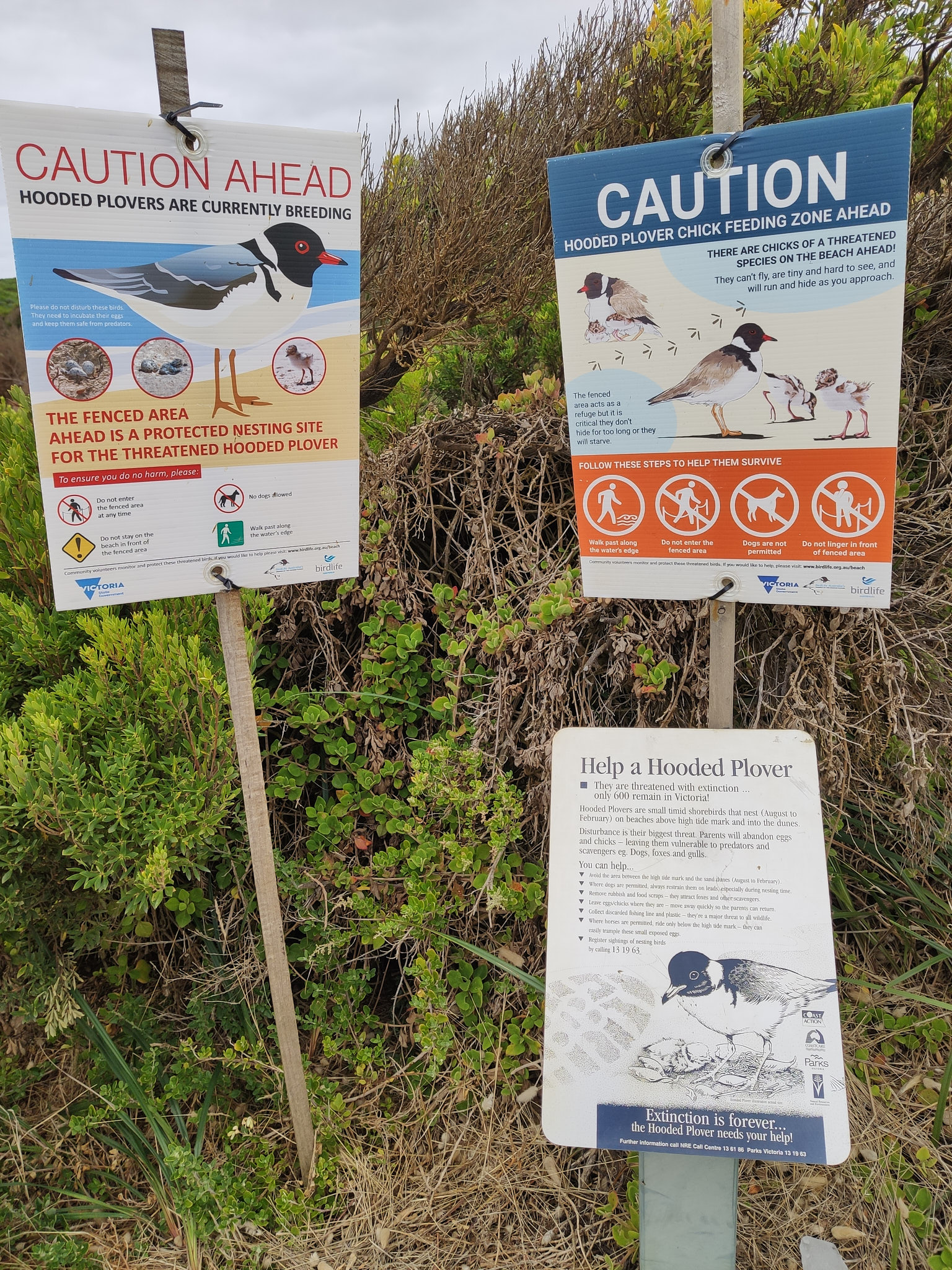 Am nächste Morgen bin ich dann bei grauem und kühlem Wetter – wenigstens ohne Regen – die restlichen Sehenswürdigkeiten der Shipwreck Coast abgefahren. Die Haltepunkte waren: London Bridge, The Grotto, Bay of Martyrs und Bay of Islands. Beim Strand neben der London Bridge konnte ich auch dieses Mal wieder die Spuren der Little Penguins im Sand entdecken! Ob sich die Küste hier in den letzten 10 Jahren verändert hat, habe ich kurz „Limestone Coast (Teil 1)“ nachgeschaut: Ausser dass der Aussichtspunkt „The Arch“ jetzt gesperrt ist und es vor 10 Jahren sonnig war, habe ich keine offensichtlichen Veränderungen entdeckt. Ok, der Schilderwald in der „Bay of Martyrs“ ist etwas grösser geworden. Das ist ja sowieso eine Besonderheit in Australien: Überall unendlich viele Schilder! Man muss fast nicht mehr selber denken.