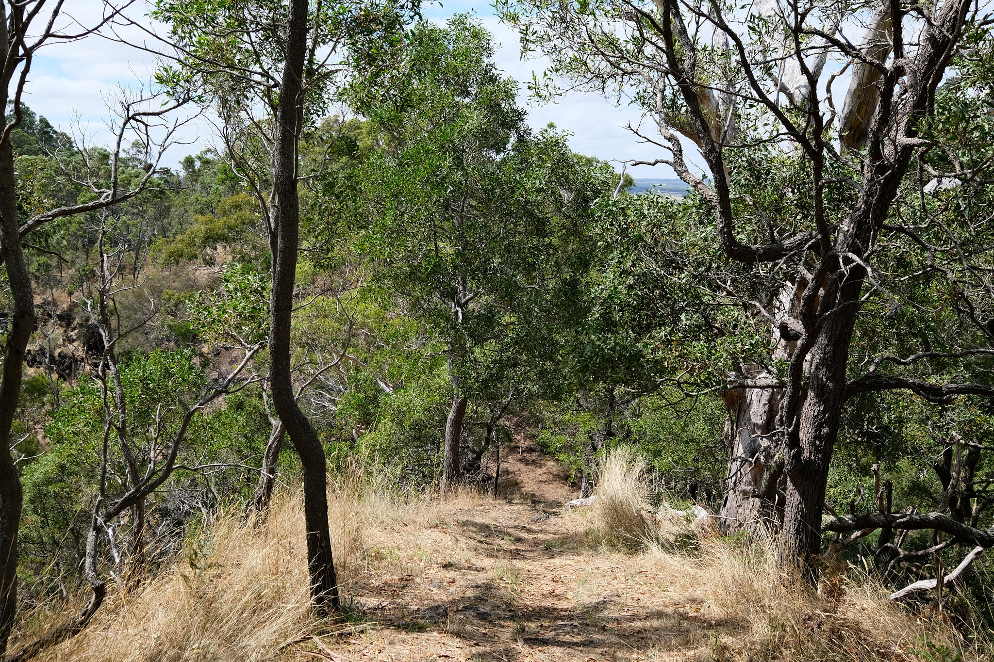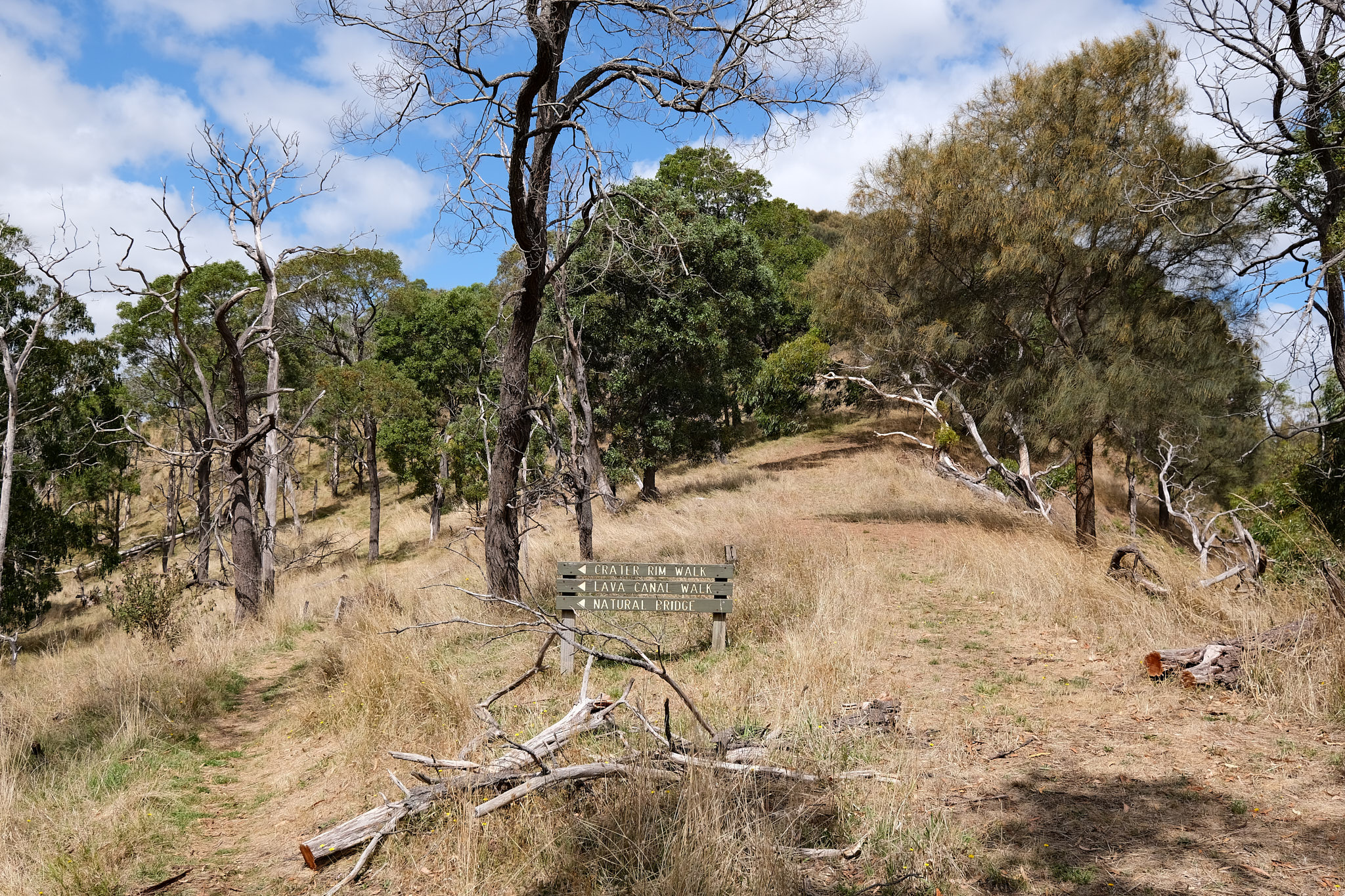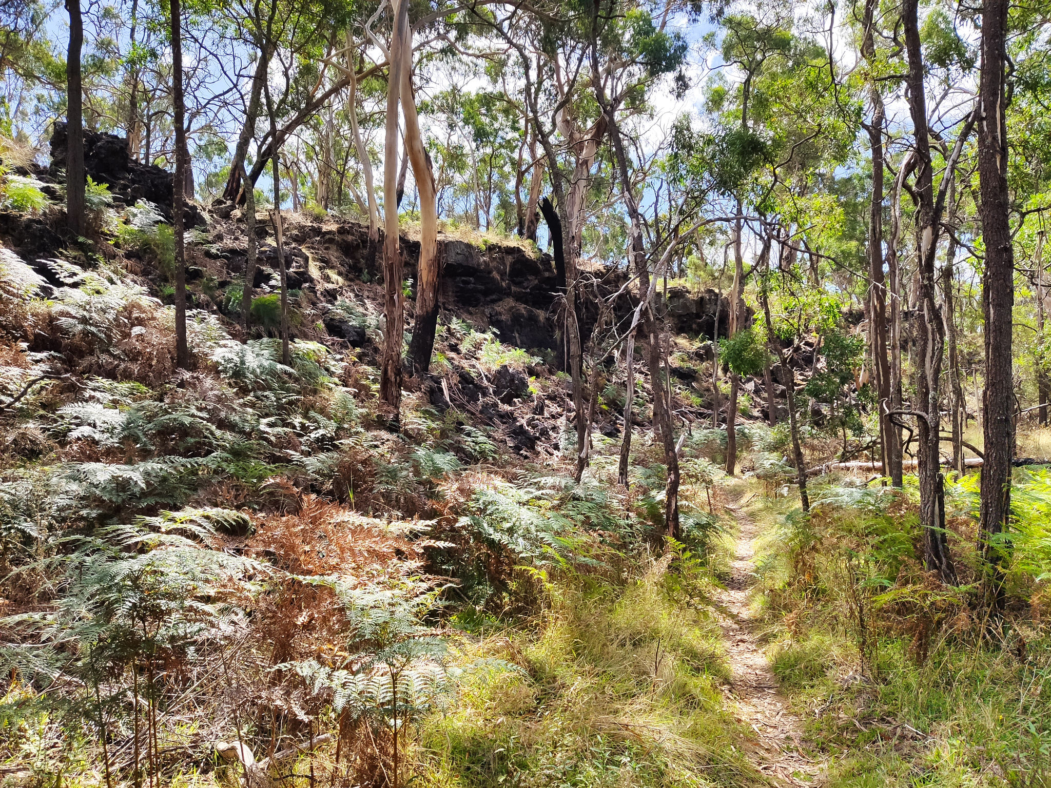 Ich habe den Weg über den Kraterrand gewählt. Schon nach kurzer Wegstrecke musste ich jedoch umkehren, da ich im Camper mein Headlight vergessen hatte, um die Lava-Höhle erkunden zu können! Der Weg über den Kraterrand ist sehr abwechslungsreich und geht ganz schön rauf und runter. Man darf sich nur nicht zu viele Gedanken machen, dass man auf der zweiten Hälfte über den Kopf von Budj Bim läuft, welcher diese Landschaft geschaffen hat. Wie man sich denken kann, sind die Blicke auf den Kratersee, die Kraterwände sowie die umgebende Landschaft einfach wundervoll.