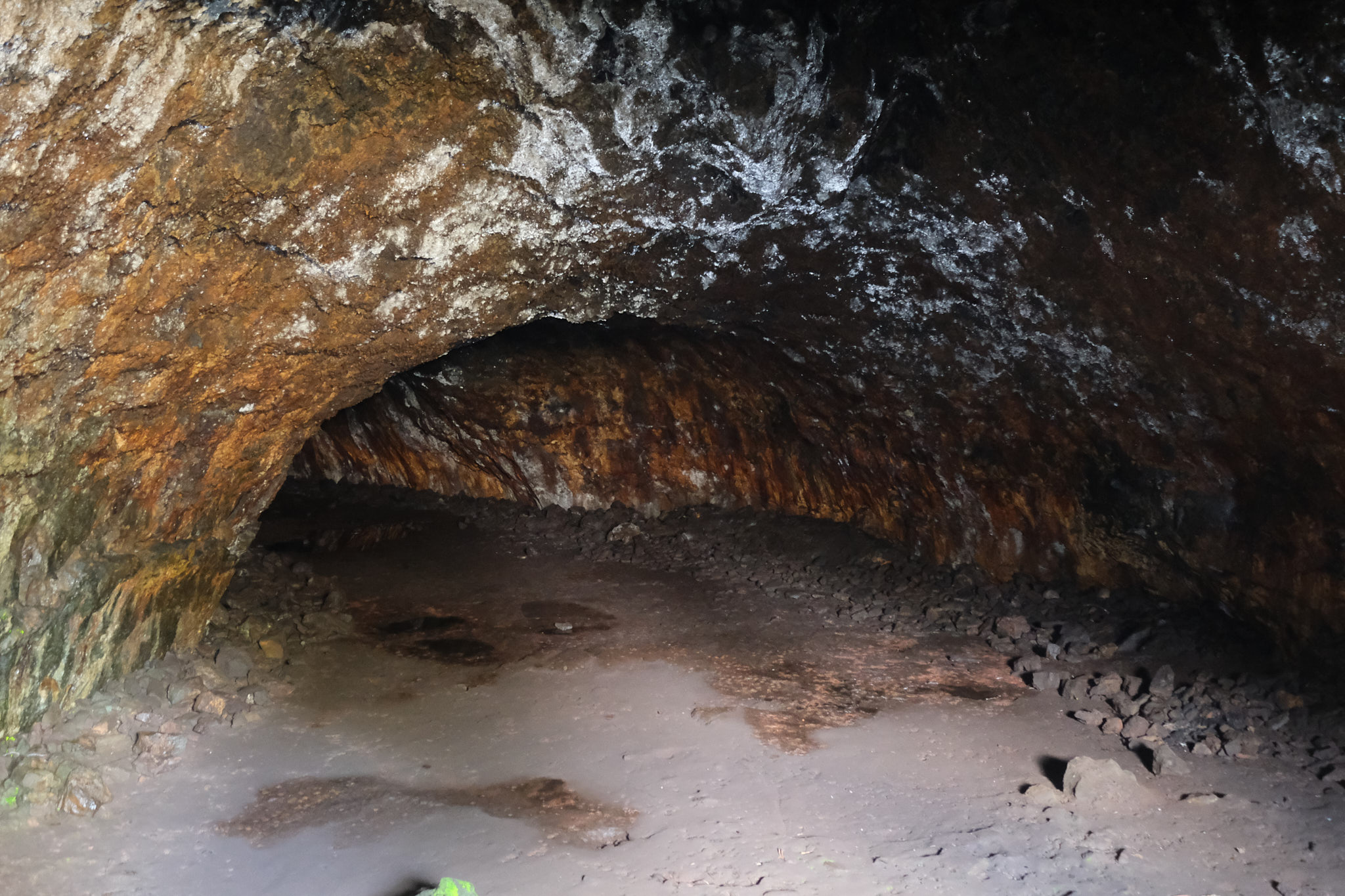 Ich bin am Mittag auf dem Campground angekommen. Wie bestellt wurde das Wetter wärmer und deutlich sonniger. Der Campground mitten in den Bäumen ist sehr weitläufig und wunderbar. Er befindet sich am äusseren Fusse des Vulkankraters beim Austritt des oben beschriebenen Lava-Kanal, welcher ja 50km in die Landschaft verfolgbar ist. Das kleine Informationszentrum ist leider momentan im Umbau. Bis Ende März dieses Jahres soll wohl ein allgemeines Upgrade der Infrastruktur stattfinden. Die Toiletten und Duschen waren jedoch auf einem modernen und total überraschenden Comfort-Level.