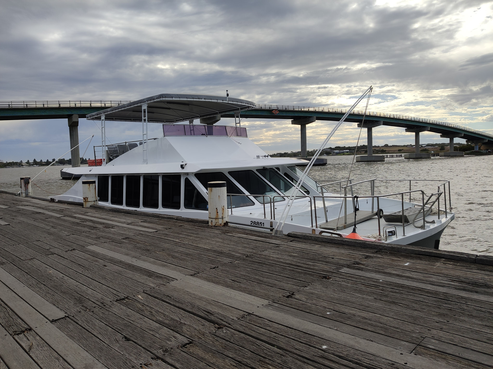 Doch der Nacht auf Sonntag auf Meningie’s Lake Albert Caravan Park bin ich mehrmals aufgewacht und habe mich wegen den Leuten geärgert, die bis 4 Uhr (da habe ich doch mal auf die Uhr geschaut) munter den Campingplatz mit ihrem Gerede unterhalten haben. Um 06:45 war ich dann ganz wach und habe doch noch kurzentschlossen den allerletzten Platz auf der Coorong Adventure Cruise (mit der Spirit of the Coorong) gebucht. Dann habe ich rasch die Zähne geputzt, alles zusammengepackt und bin um 07:15 abgefahren. Zwei Stunden später (inklusive einer Umleitung) war ich dann an der Goolwa Wharf!