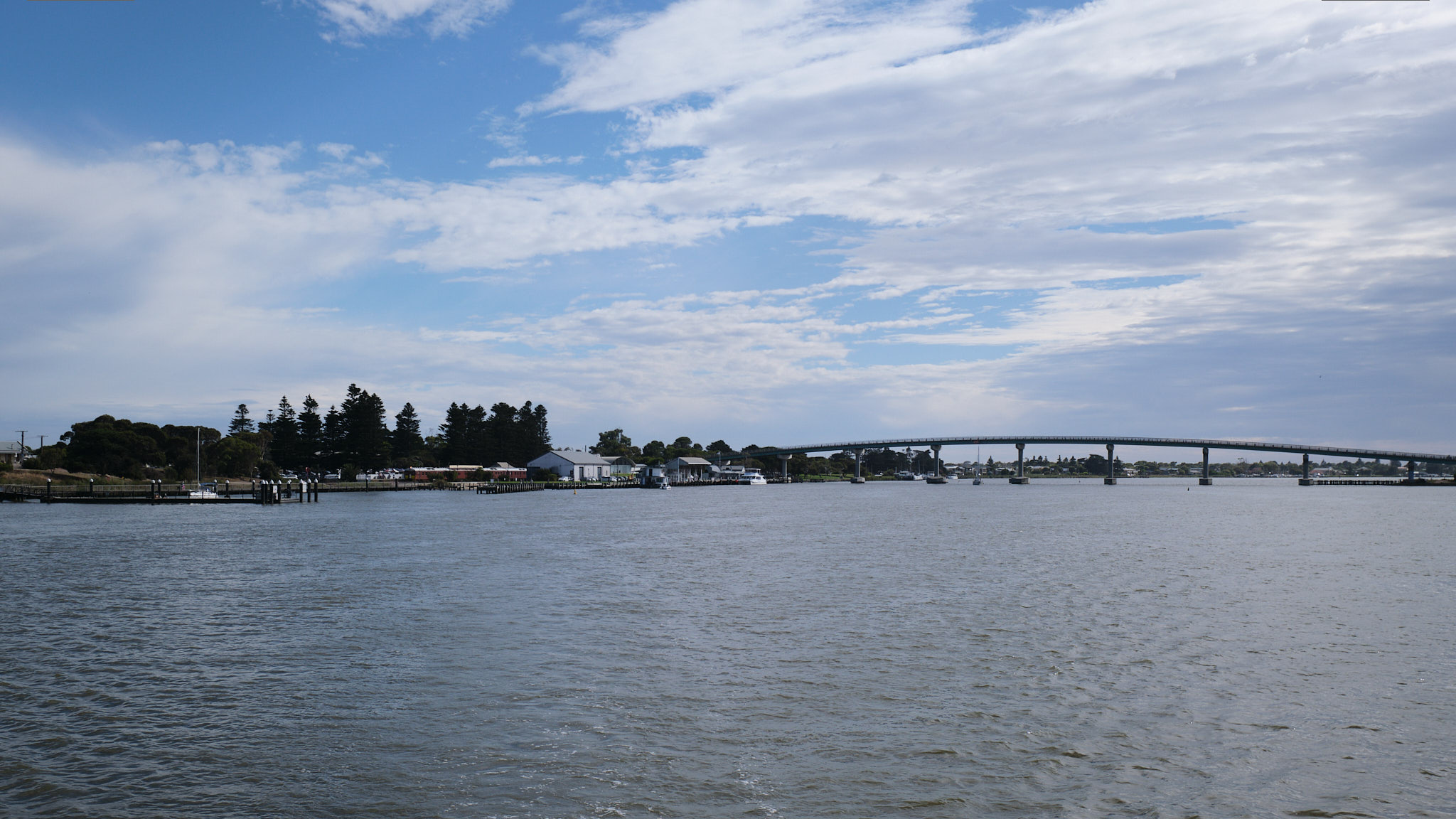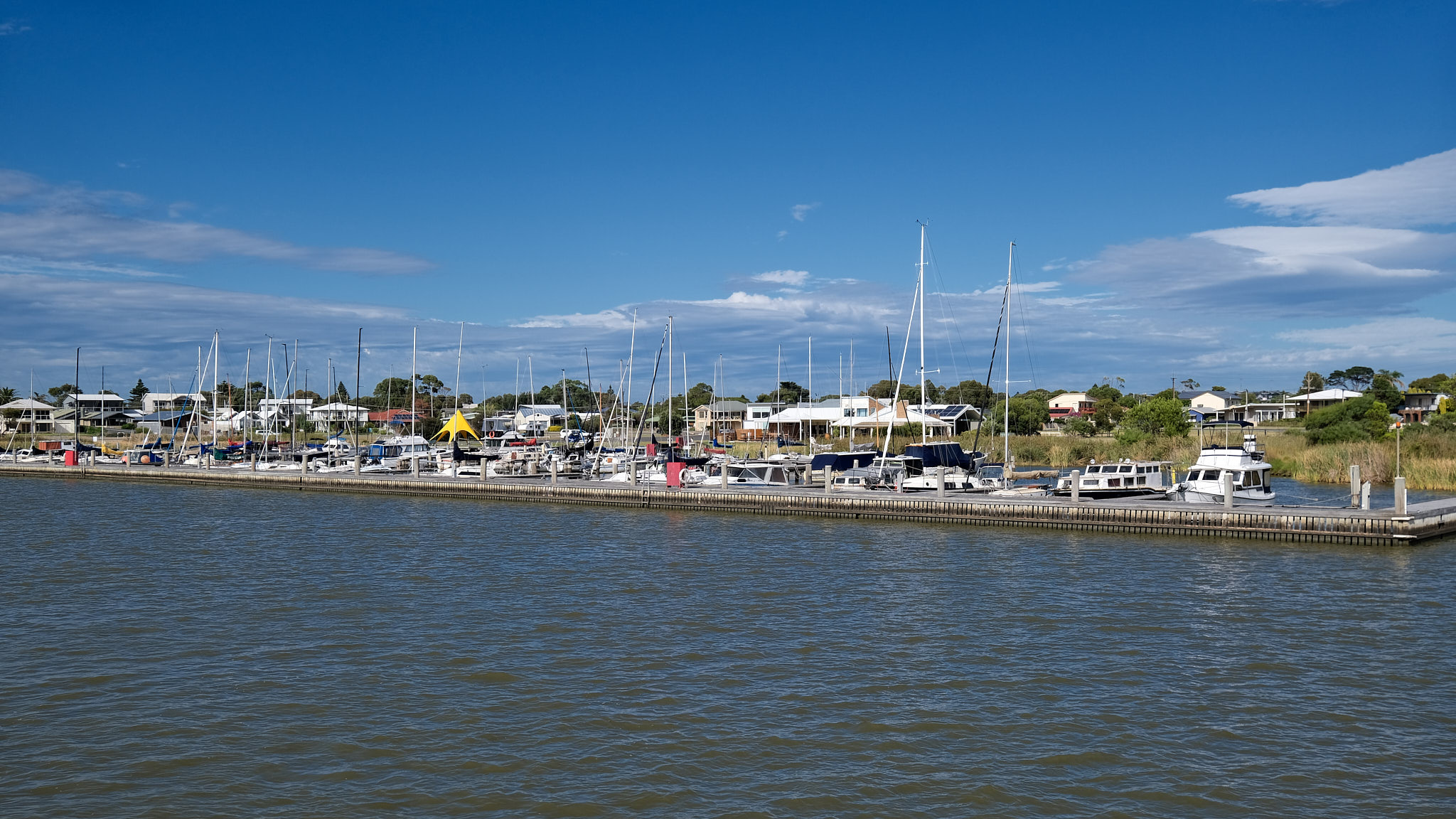 Zuerst zeigt sich, dass das Hochwasser des Murray River hat auf den Wasserstand in Goolwa fast keinen Einfluss hat. Veränderungen der Windrichtung haben hier grösseren Einfluss auf den Wasserstand. Wir fuhren vom Hafen von Goolwa flussabwärts entlang des historischen Kais und in Richtung der Goolwa Barrage.