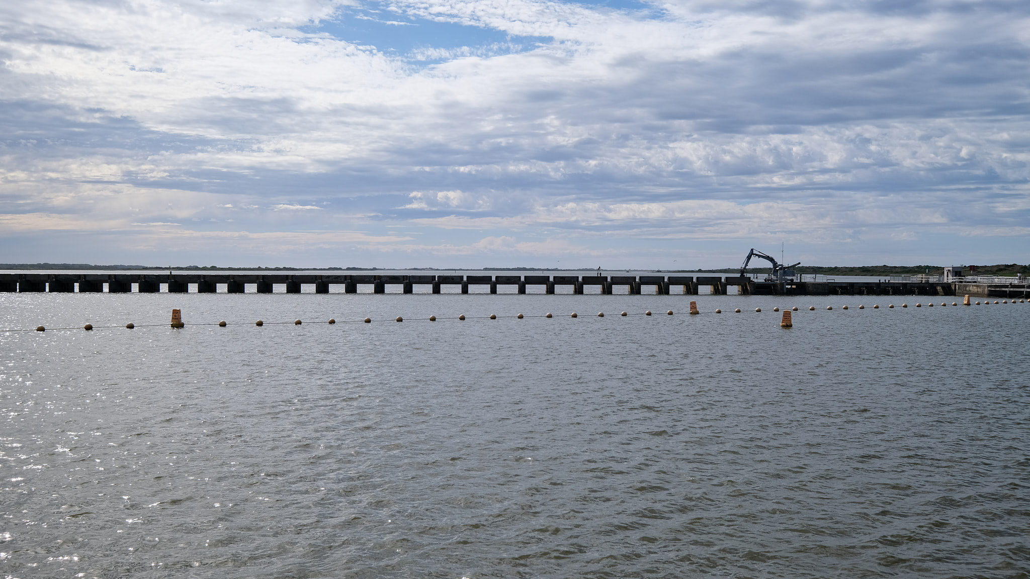 Da das Hochwasser langsam zurückgeht, wurden schon einige Tore der Goolwa Barrage geschlossen. Die fünf Barrages wurden zwischen 1935 und 1940 gebaut und sollen ja verhindern, dass das salzige, brackige Meerwasser zu stark in das Süsswasser des Flusses und die beiden Seen vordringt, was bei Trockenheit verstärkt vorkommen könnte.