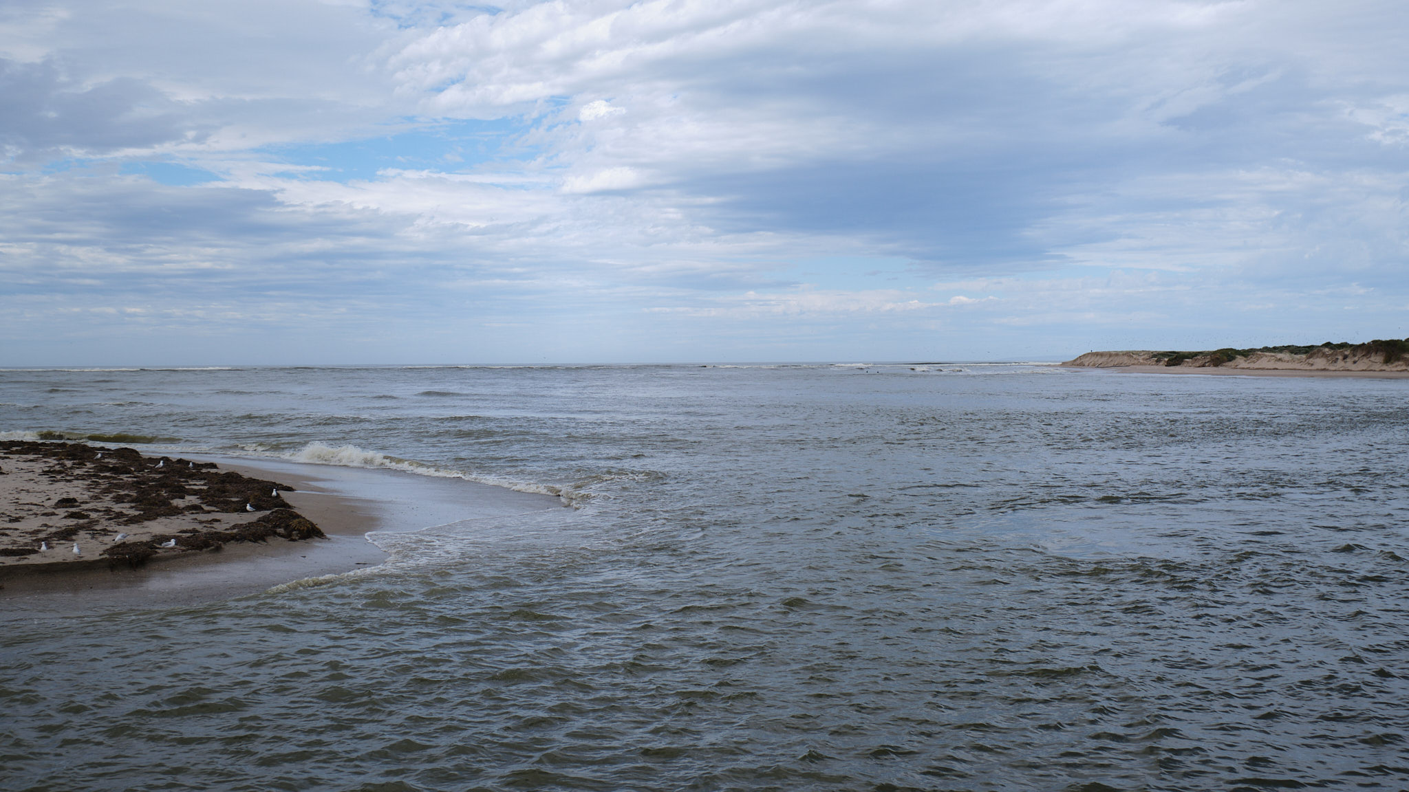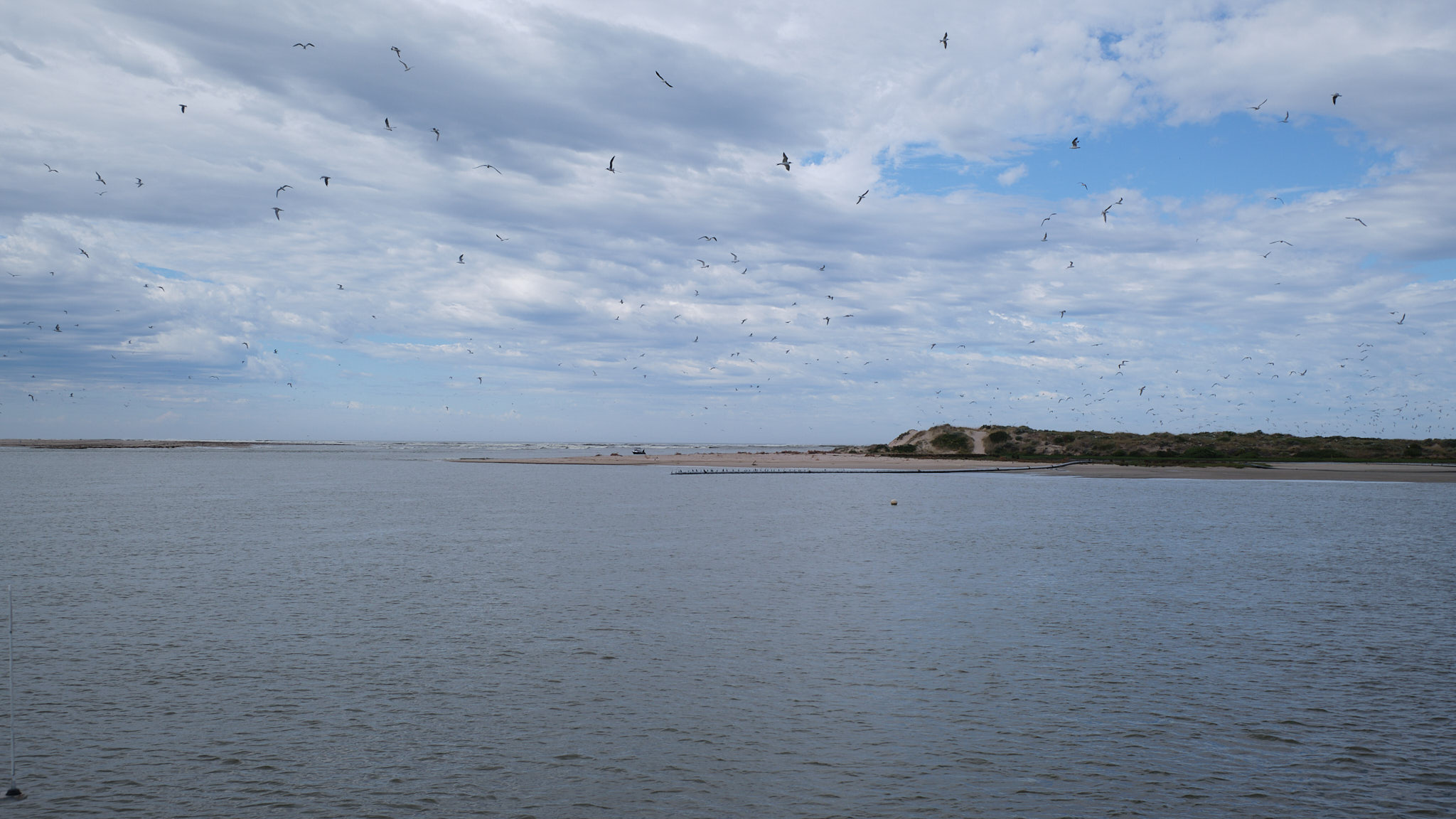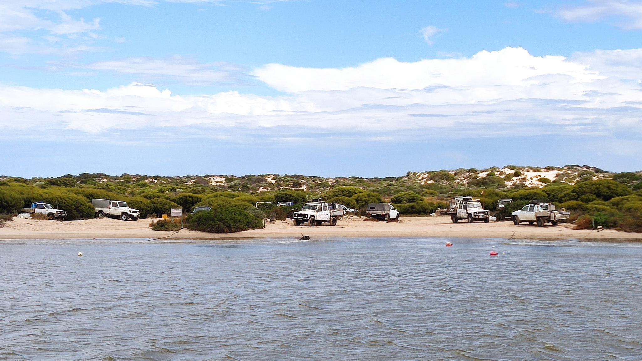 In Zeiten ohne Fluten baggern hier zwei Saugbagger dauernd Sand ab und befördern diesen über ein Rohrsystem an den Ozean-Strand, denn das Ökosystem des Murray braucht unbedingt einen offenen Zugang zum Meer. Heute fliesst das Wasser hier rund 12-16m tief ungehindert und mächtig.